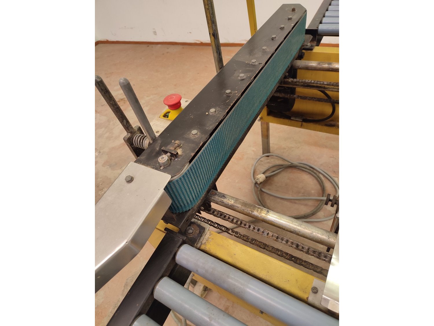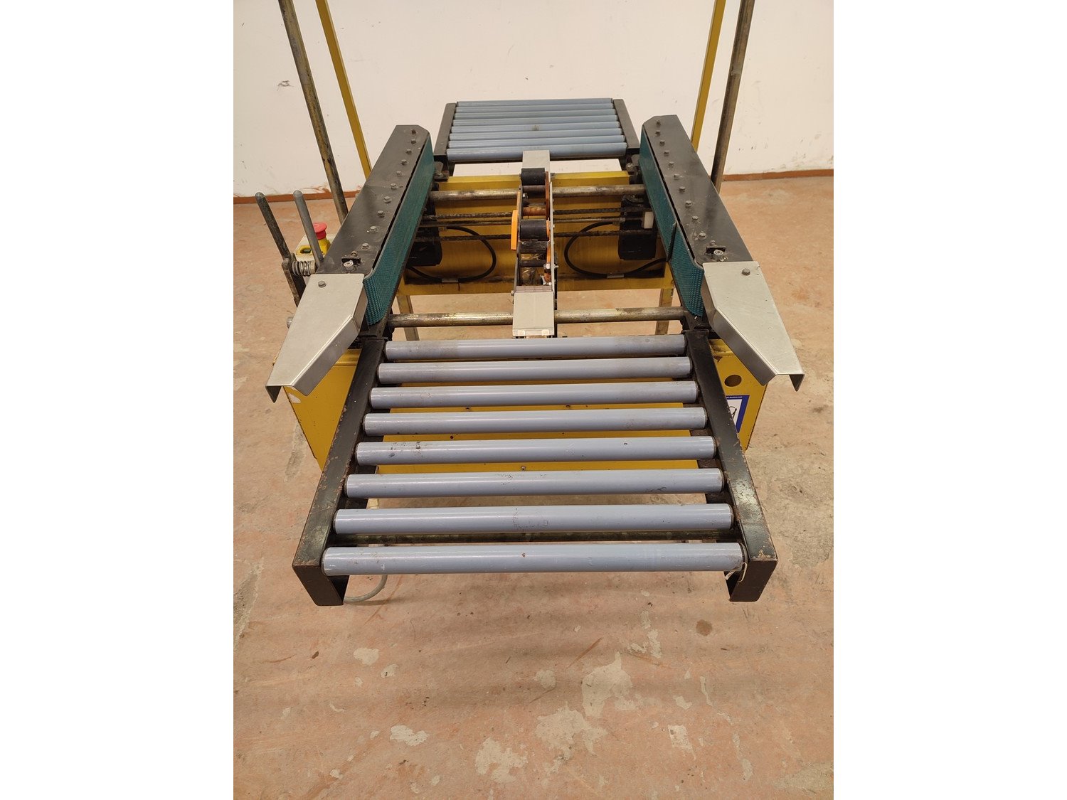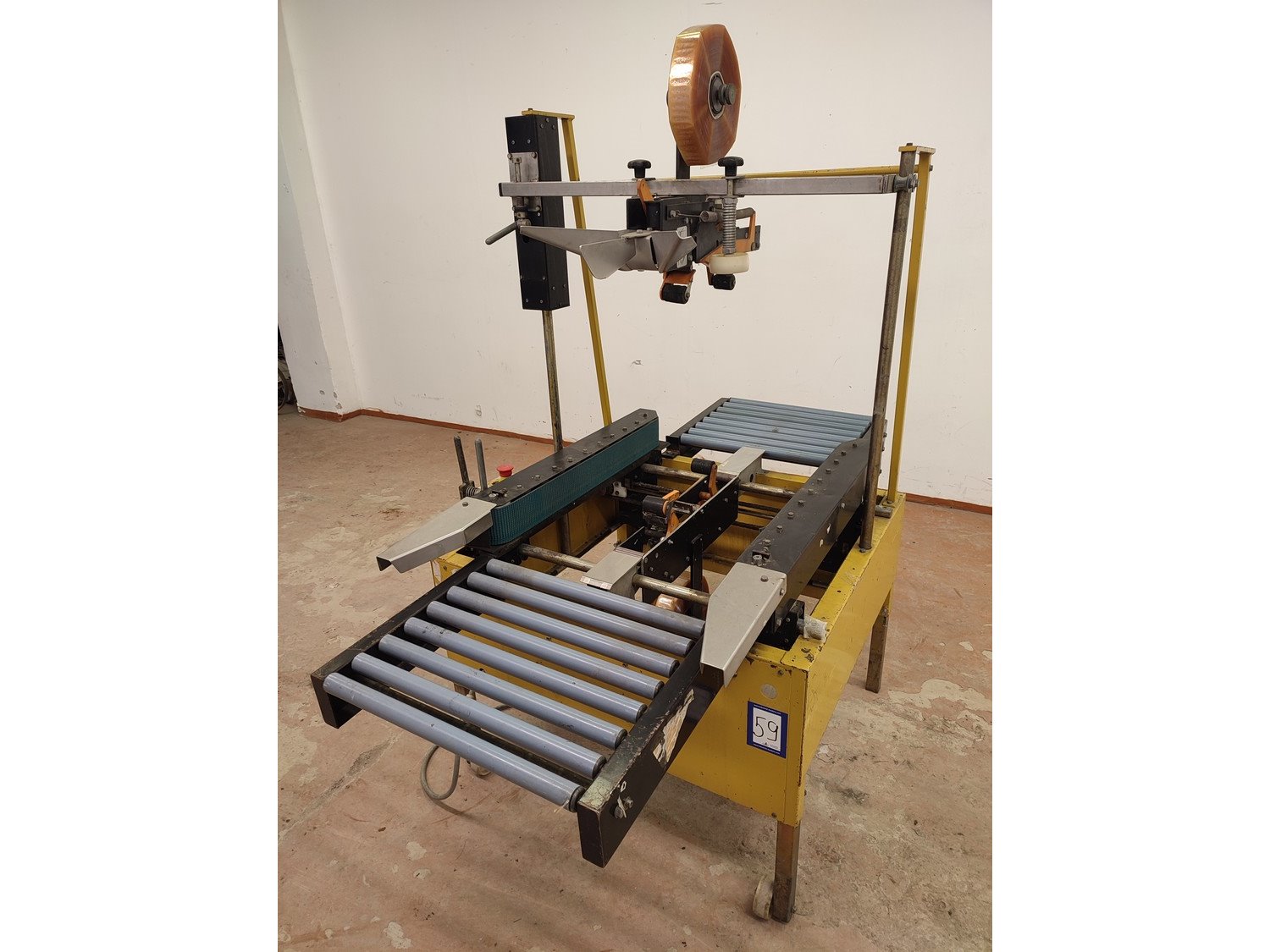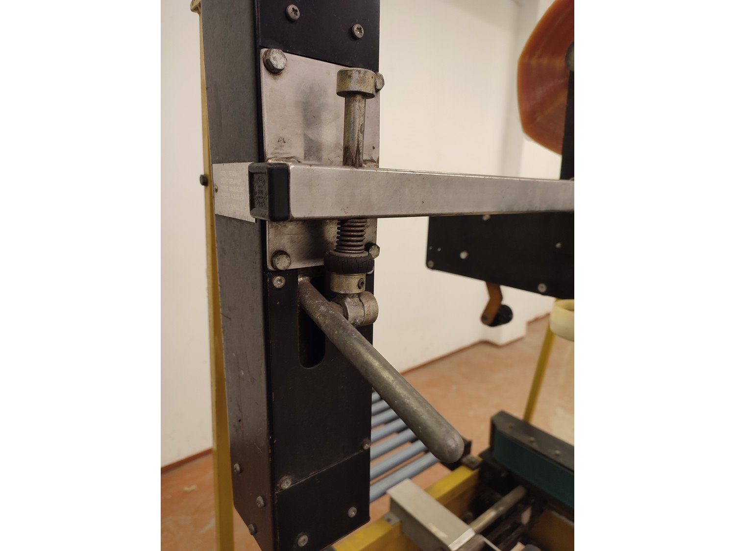 Supertape box closing machine, type: SO-7000, number: 81-7677, 220 V, 50 Hz, 2 A, roller width: 495 mm, total dimensions: 880 mm x 1670 mm x 1660 mm.