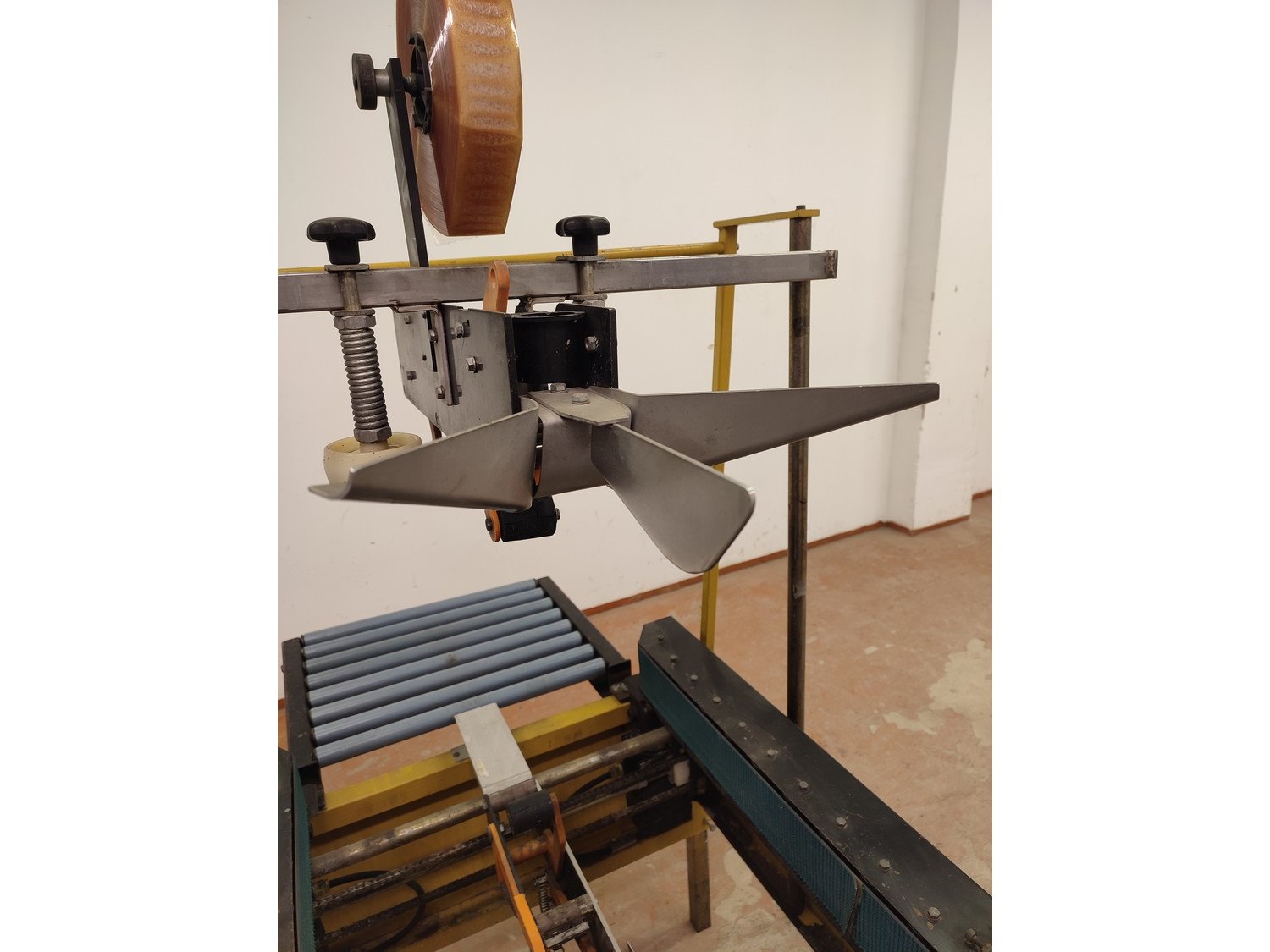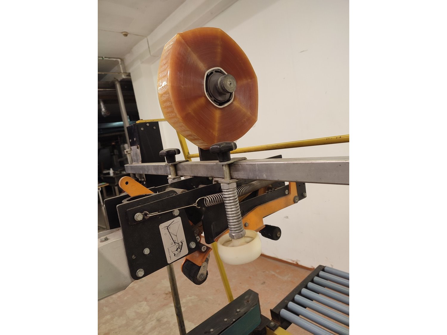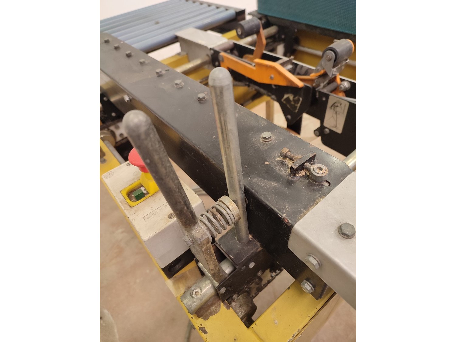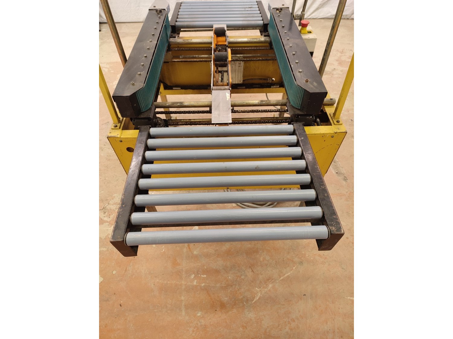 Supertape box closing machine, type: SO-7000, number: 81-7677, 220 V, 50 Hz, 2 A, roller width: 495 mm, total dimensions: 880 mm x 1670 mm x 1660 mm.