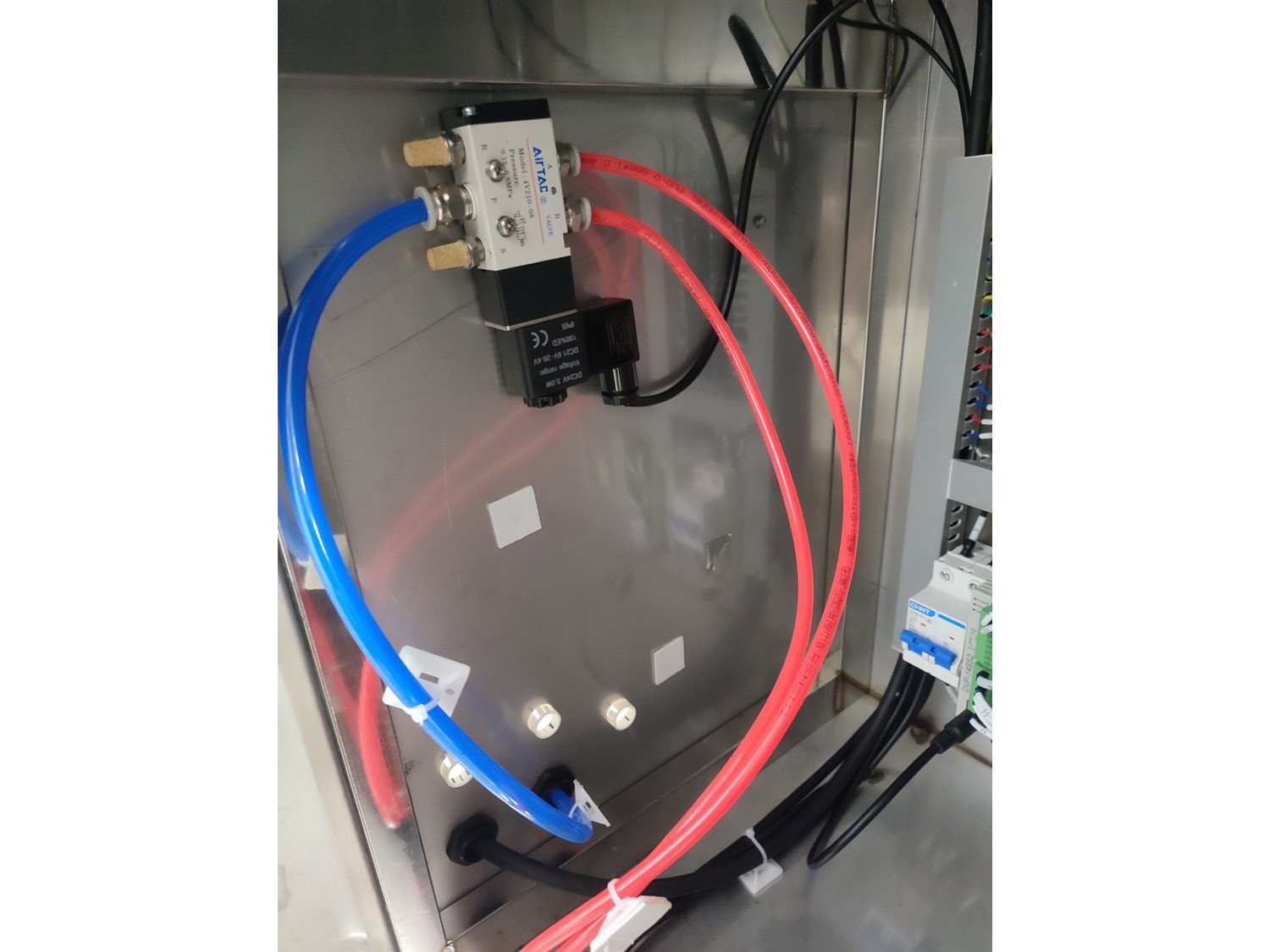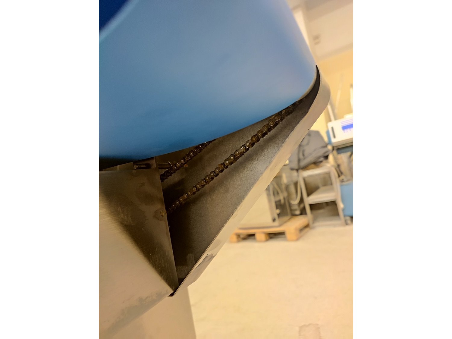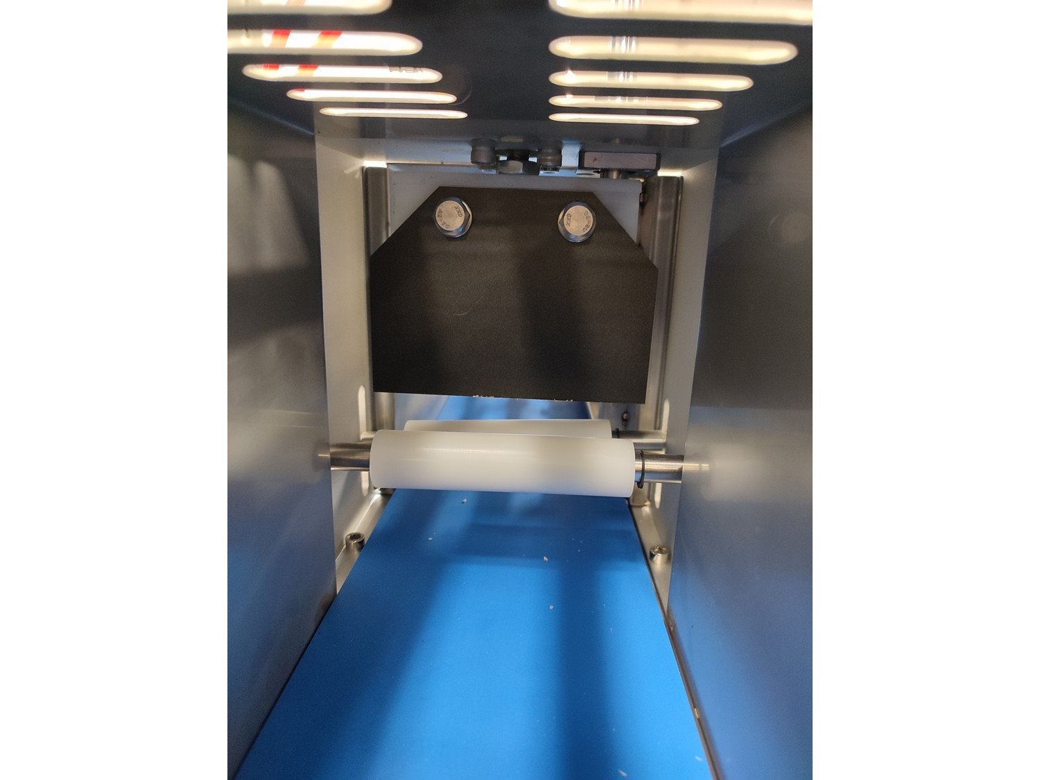 Mobile portioning machine, working width: 130 mm, plastic belt, belt width: 130 mm, total dimensions: 1200 mm x 405 mm x 1130 mm. Screen is broken.