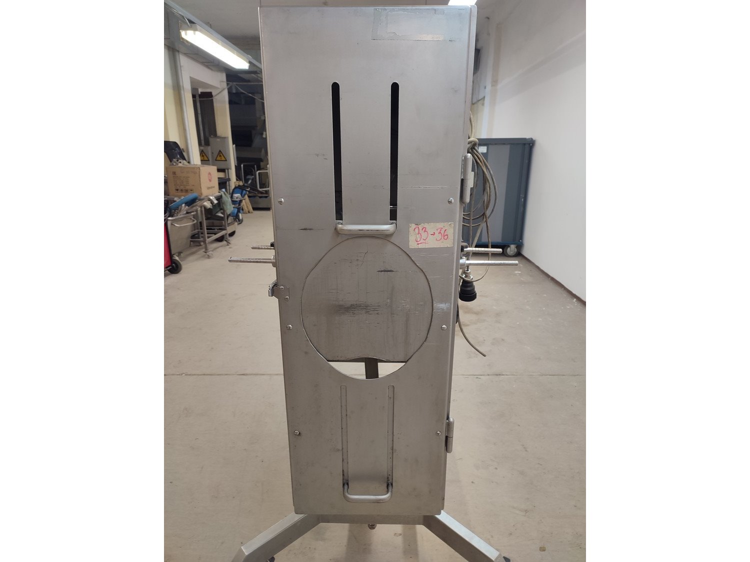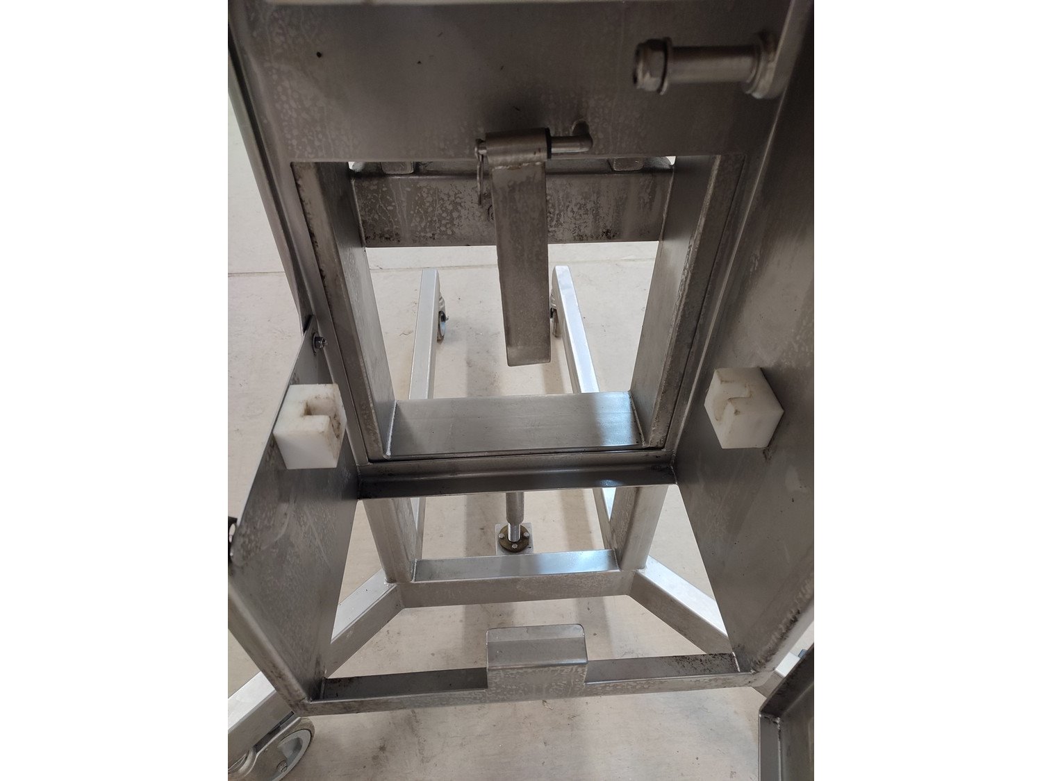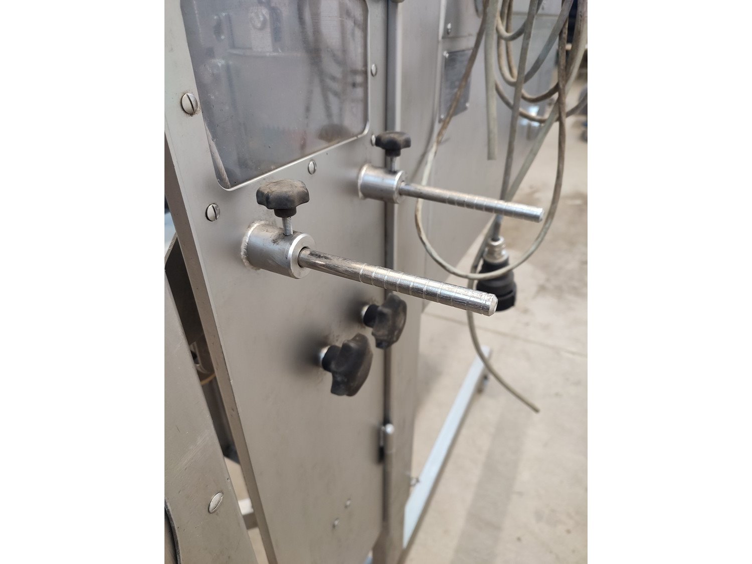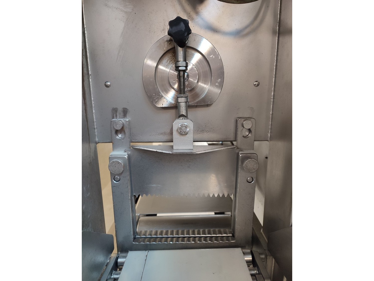 Vemag mobile portioning machine, type: 701, number: 7010038, year of construction: 2003, 400-460 V, 3 Ph, 50/60 Hz, 2 A, plastic belt, belt width: 190 mm, total dimensions: 1500 mm x 860 mm x 1660 mm. Missing belt.