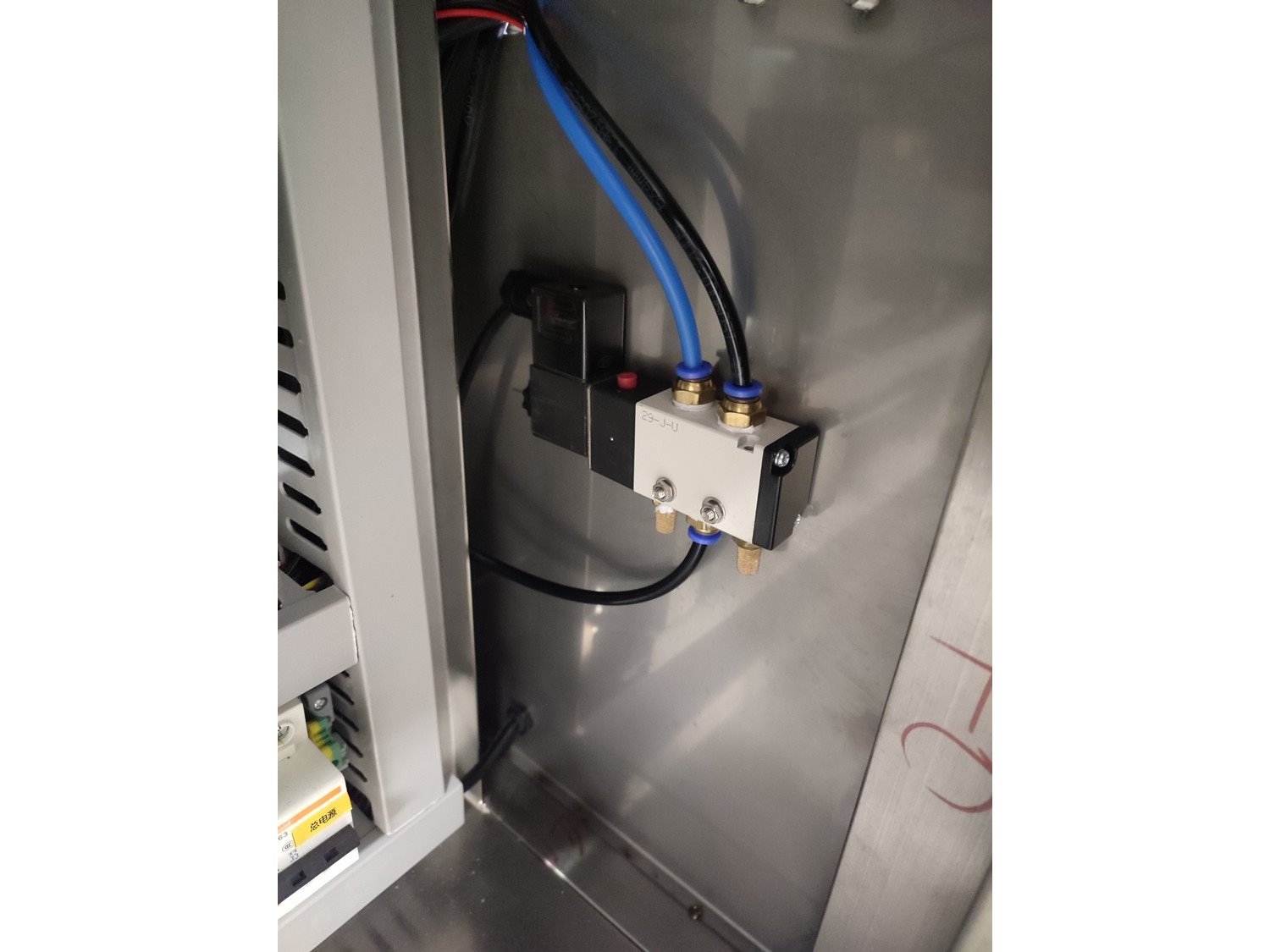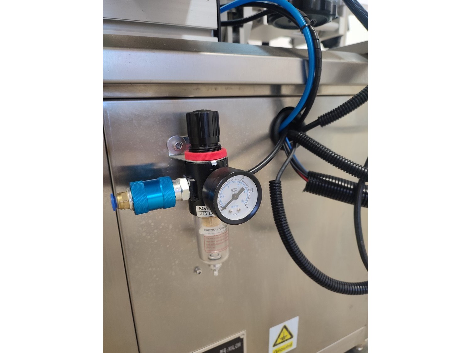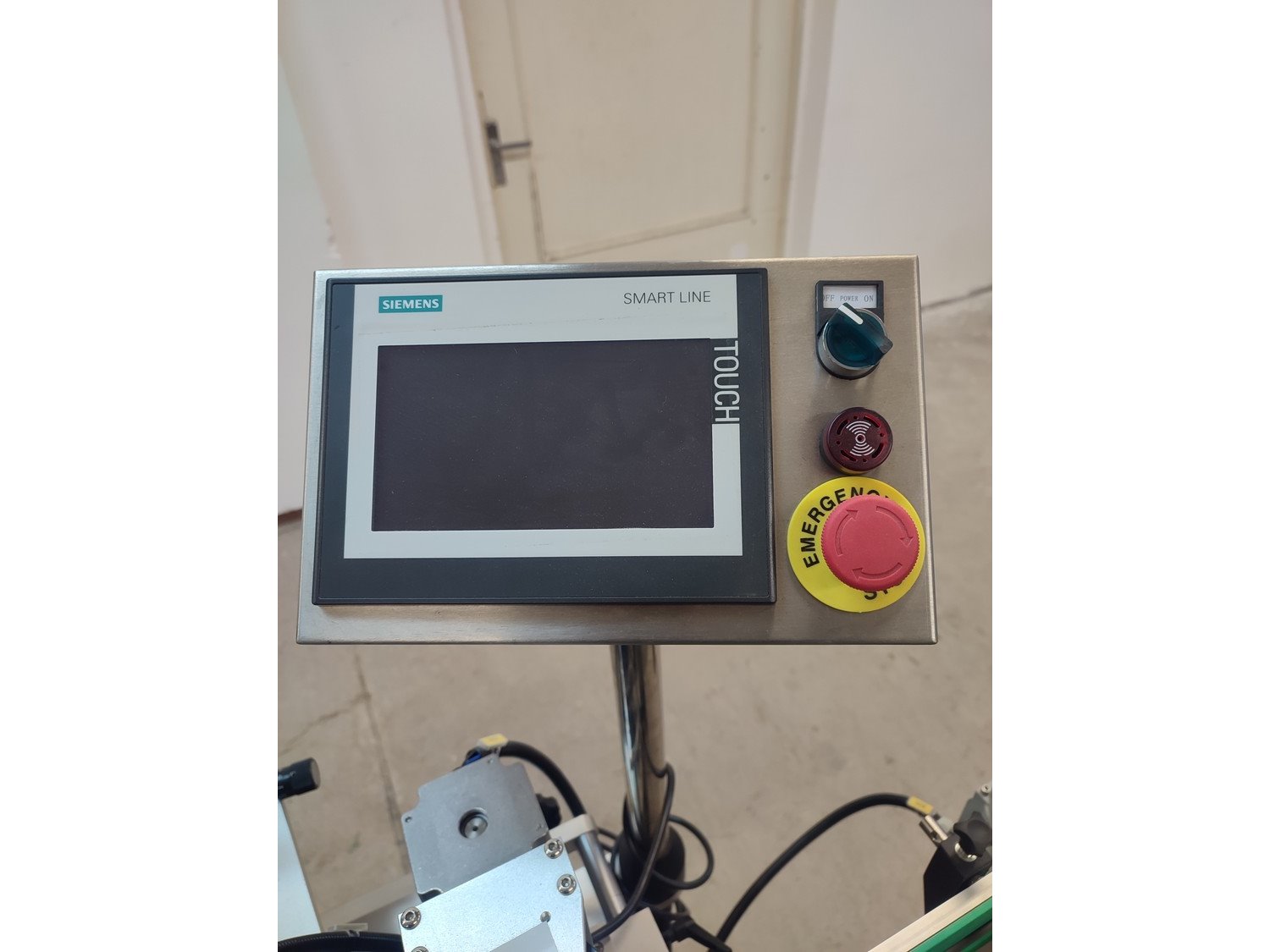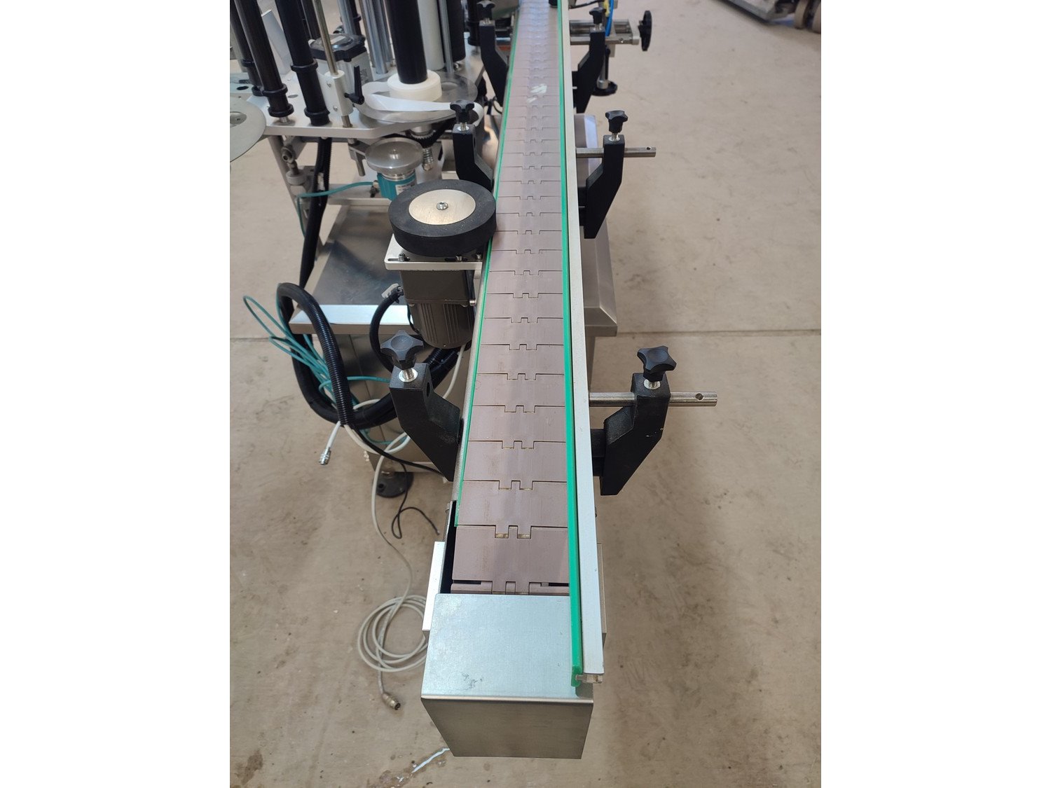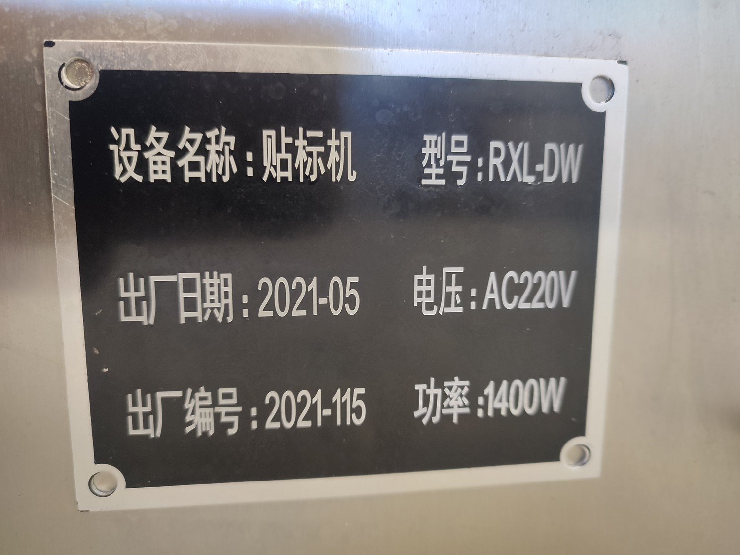 Mobile labelling machine, model: RXL-DW, serial number: 2021-115, year of construction: 2021-05, 220 V, 1400 W, plastic belt width: 80 mm, dimensions: 2000 mm x 950 mm x 1275 mm.