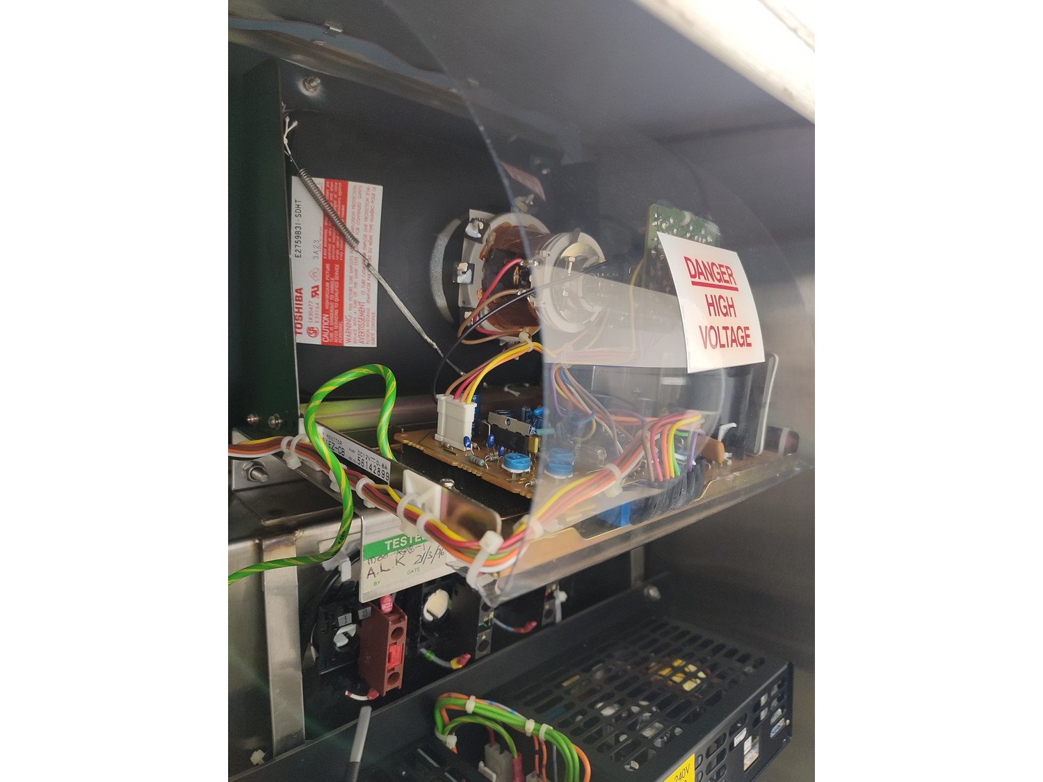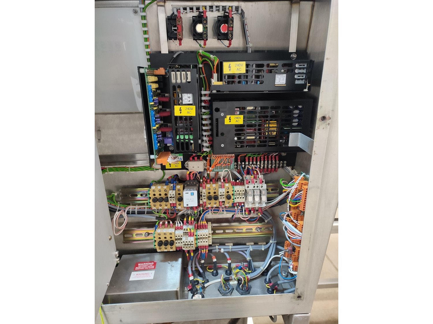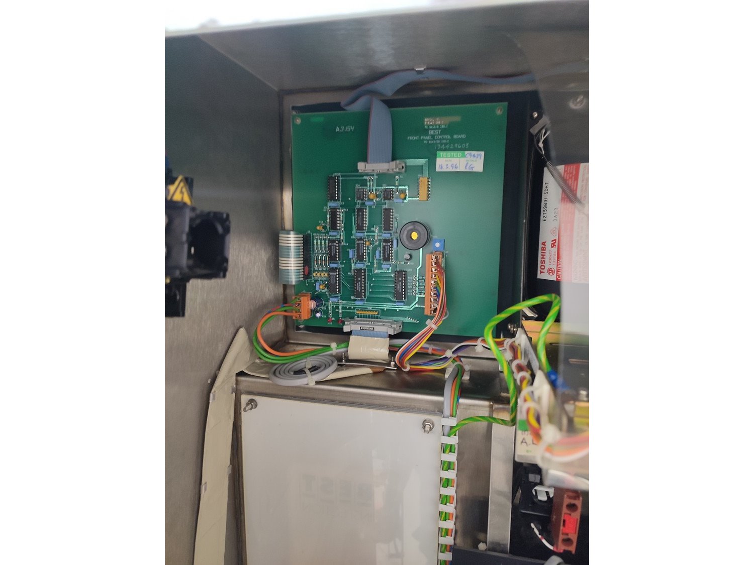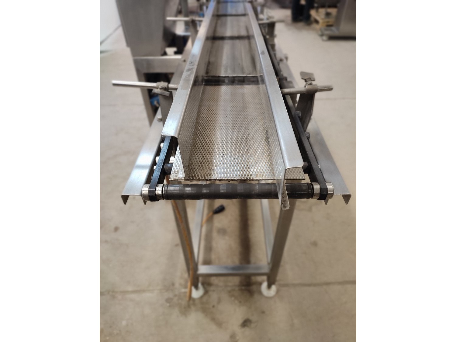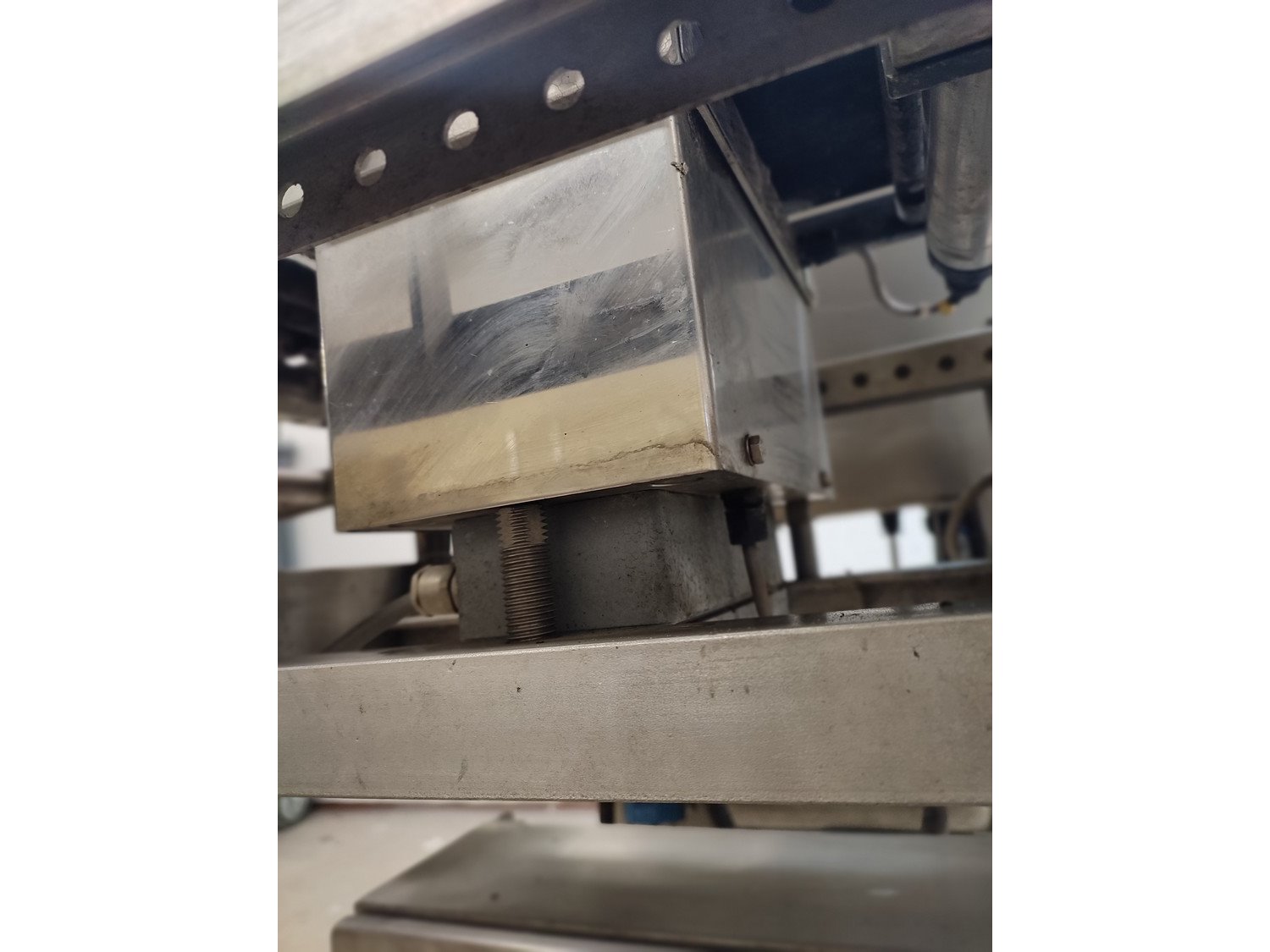 Graseby checkweigher, type: E30, serial number: B52883, year of construction: 03.1996, 240 V, 1 Ph, 50 Hz, 5 A, pressure: 5 bar, belt width: 200 mm, total dimensions: 2140 mm x 800 mm x 1770 mm. Missing belts.