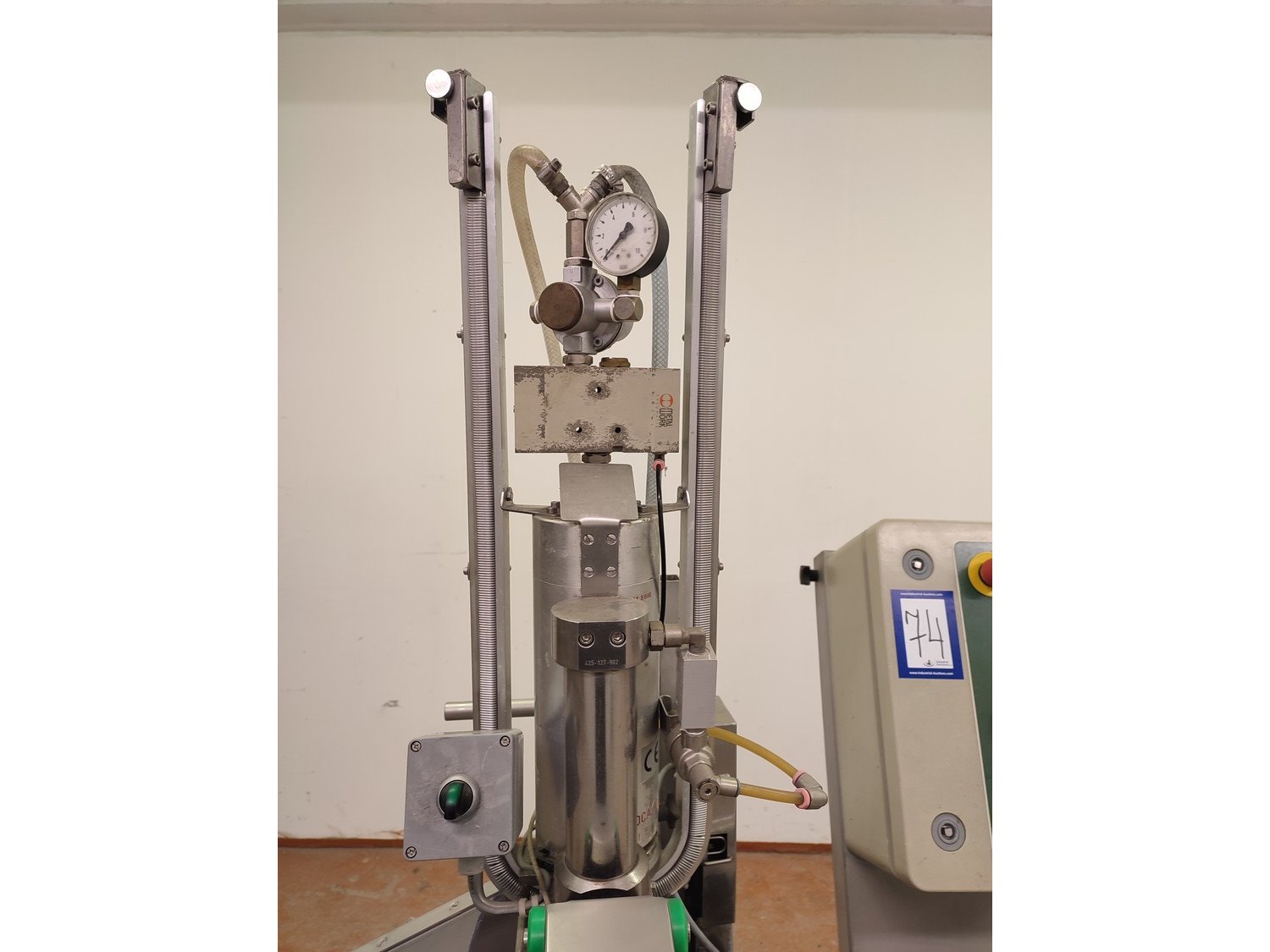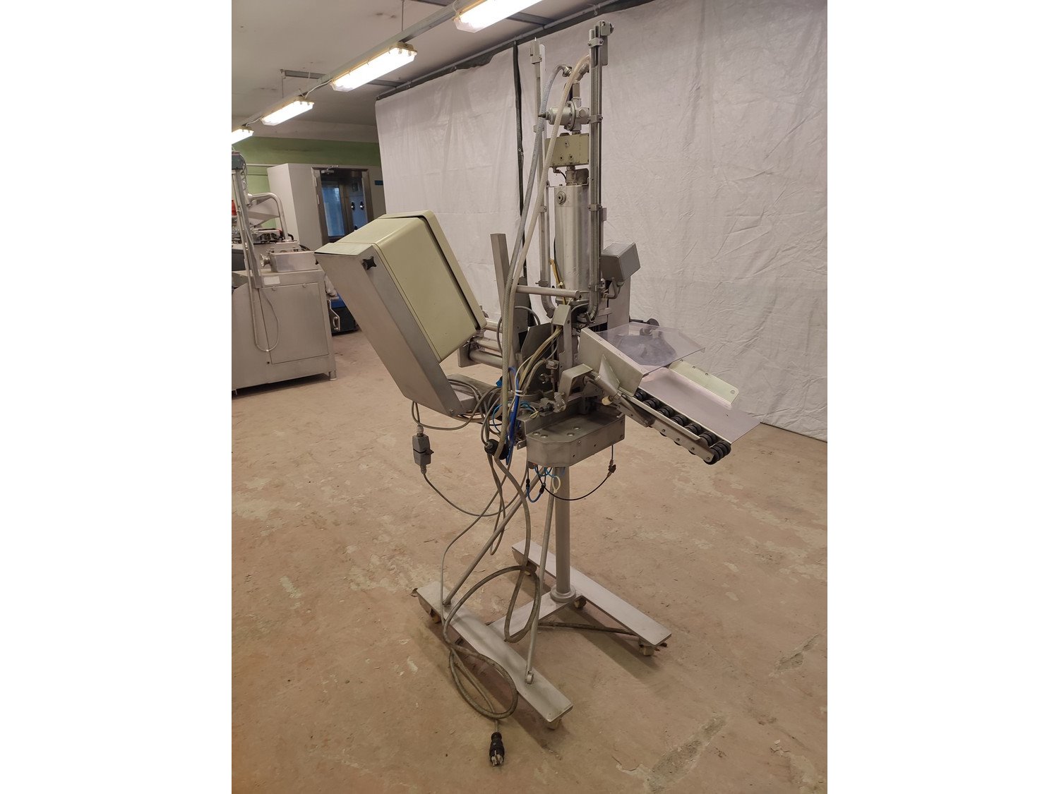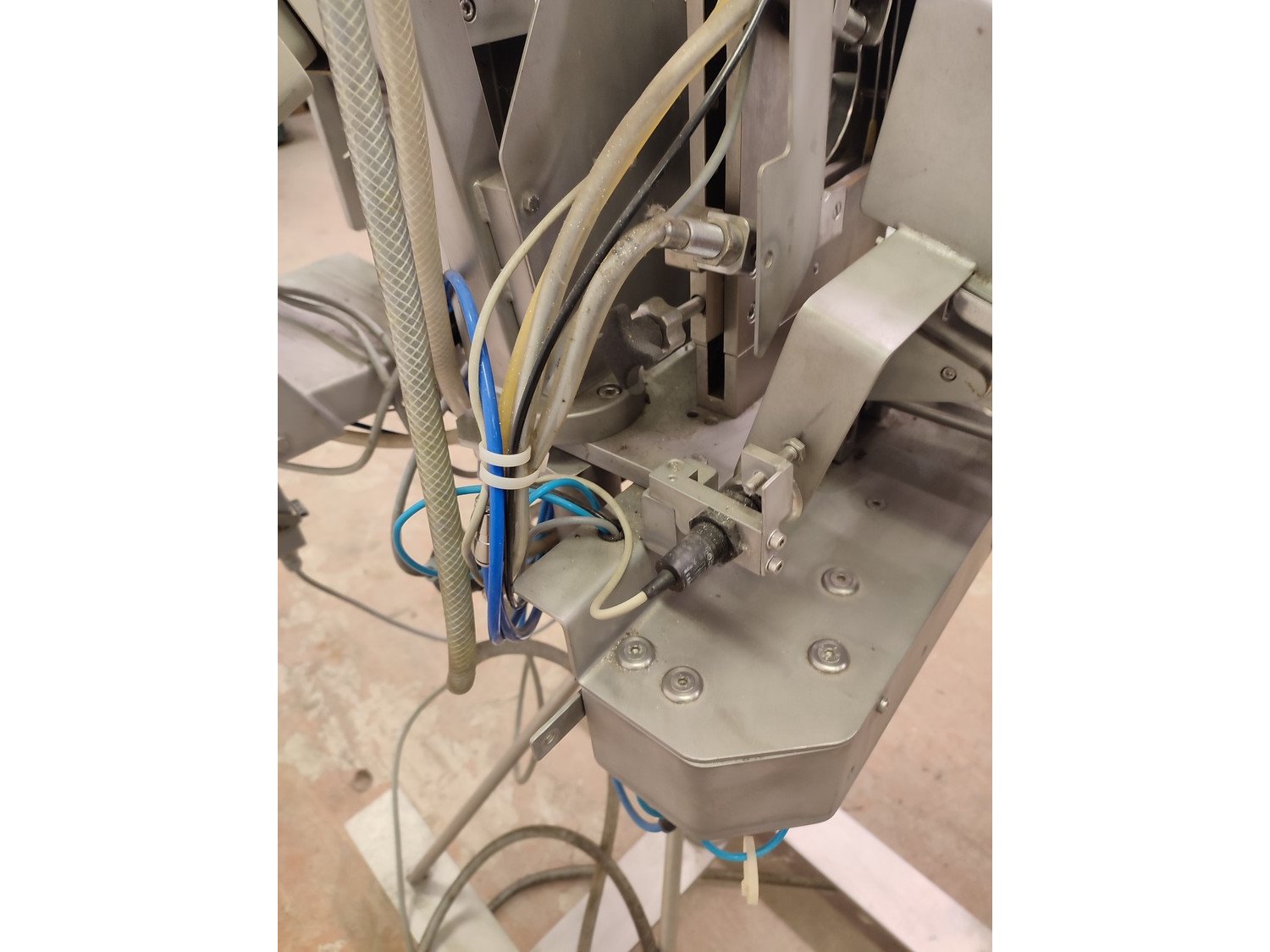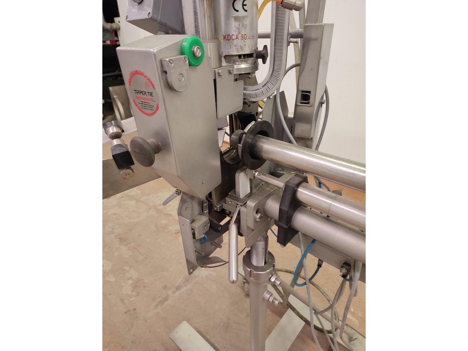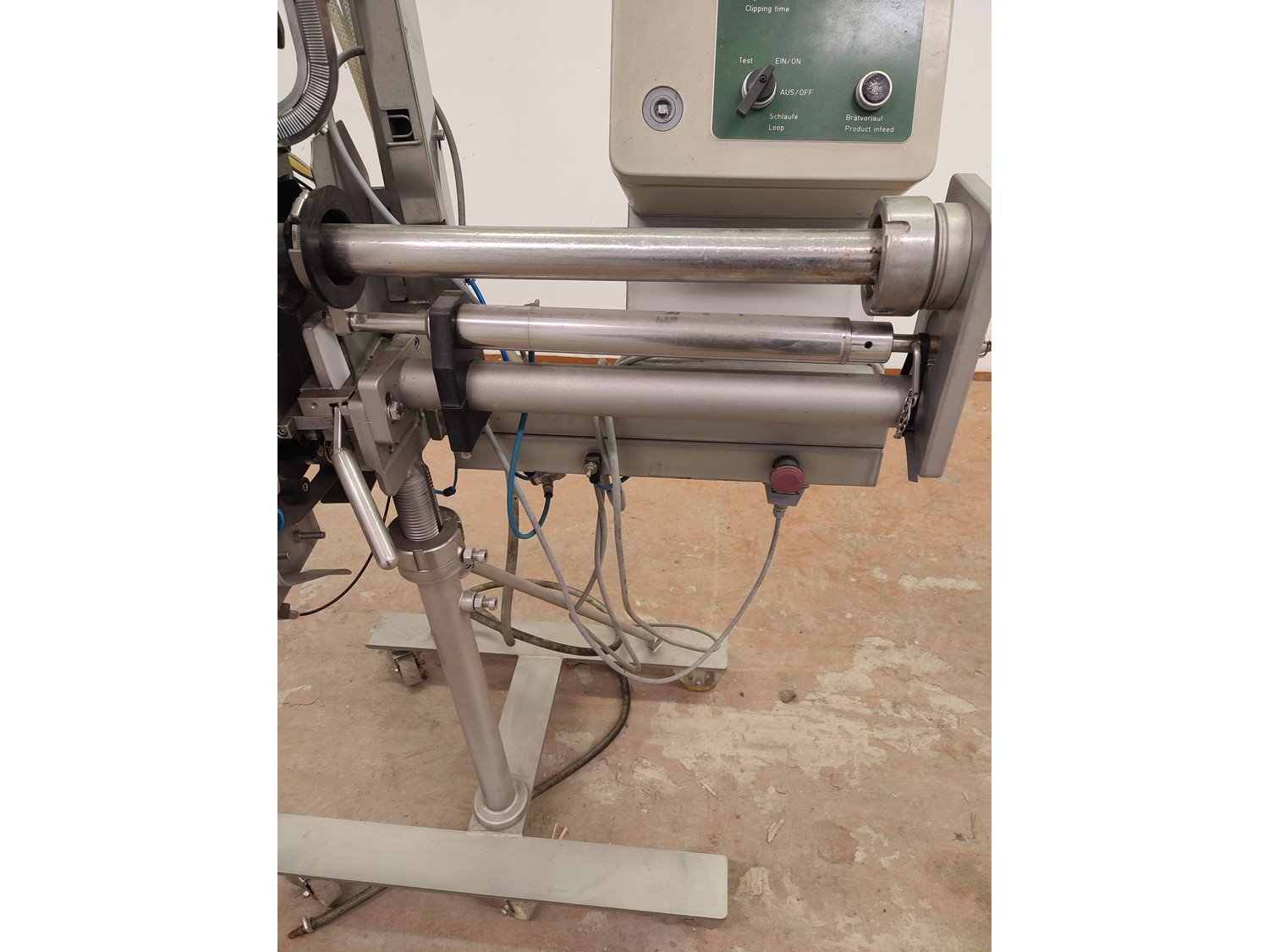 Tipper Tie technopack GmbH mobile automatic double clipper, model: KDC-A 90, number: 4251.143.221, year of construction: 2001, minimum 5 bar, maximum 6 bar, dimensions: 1300 mm x 900 mm x 1860 mm.