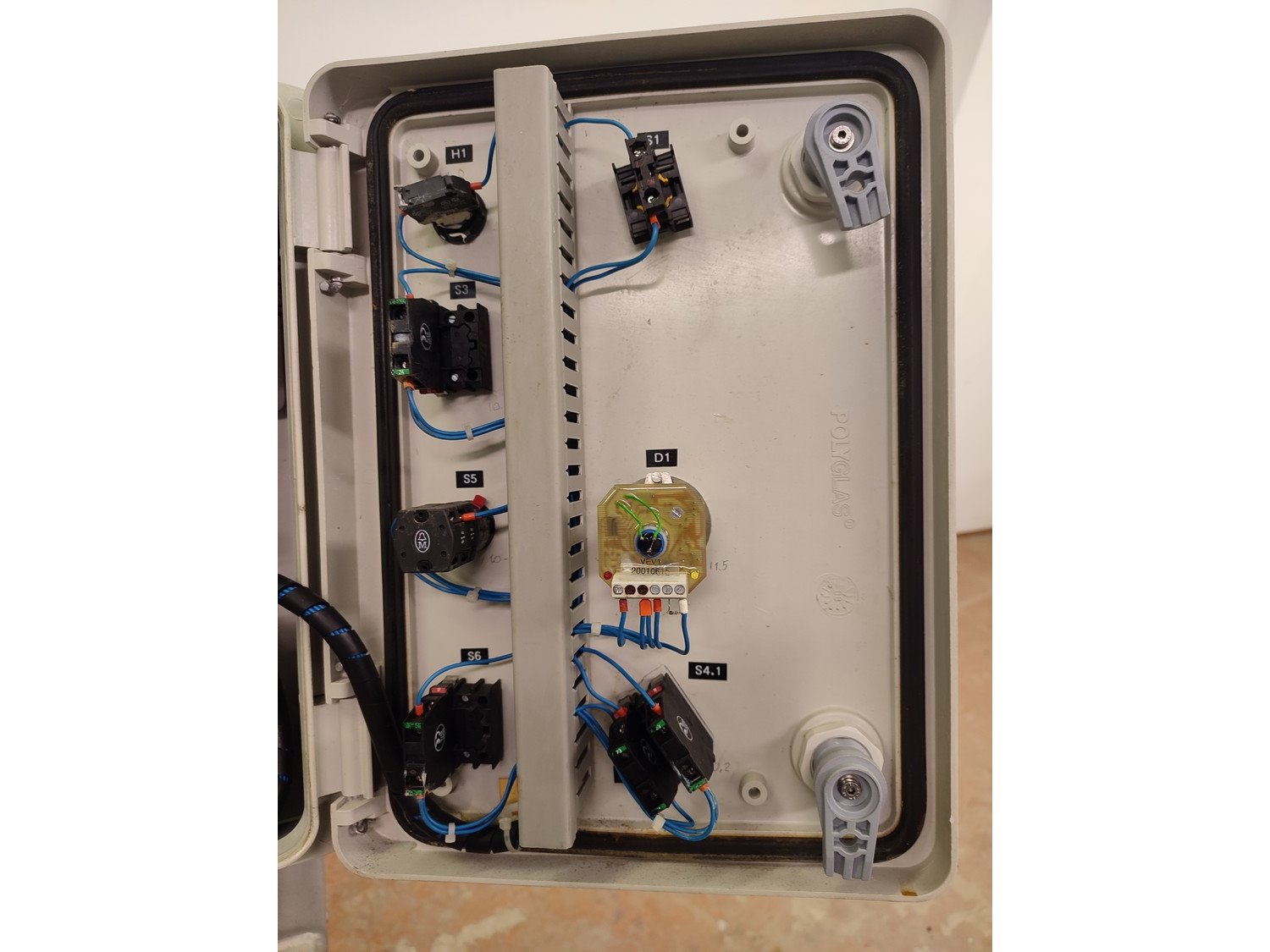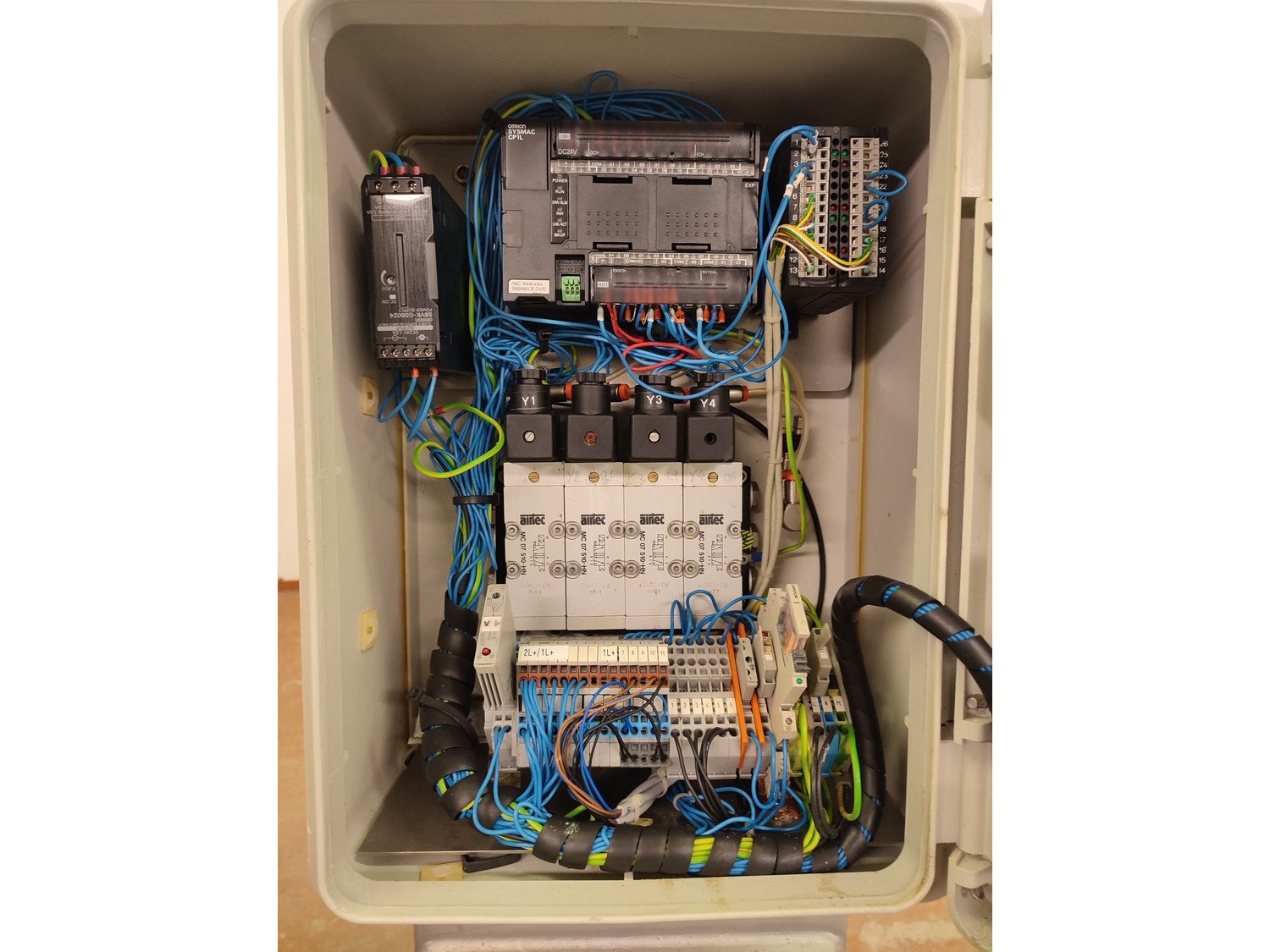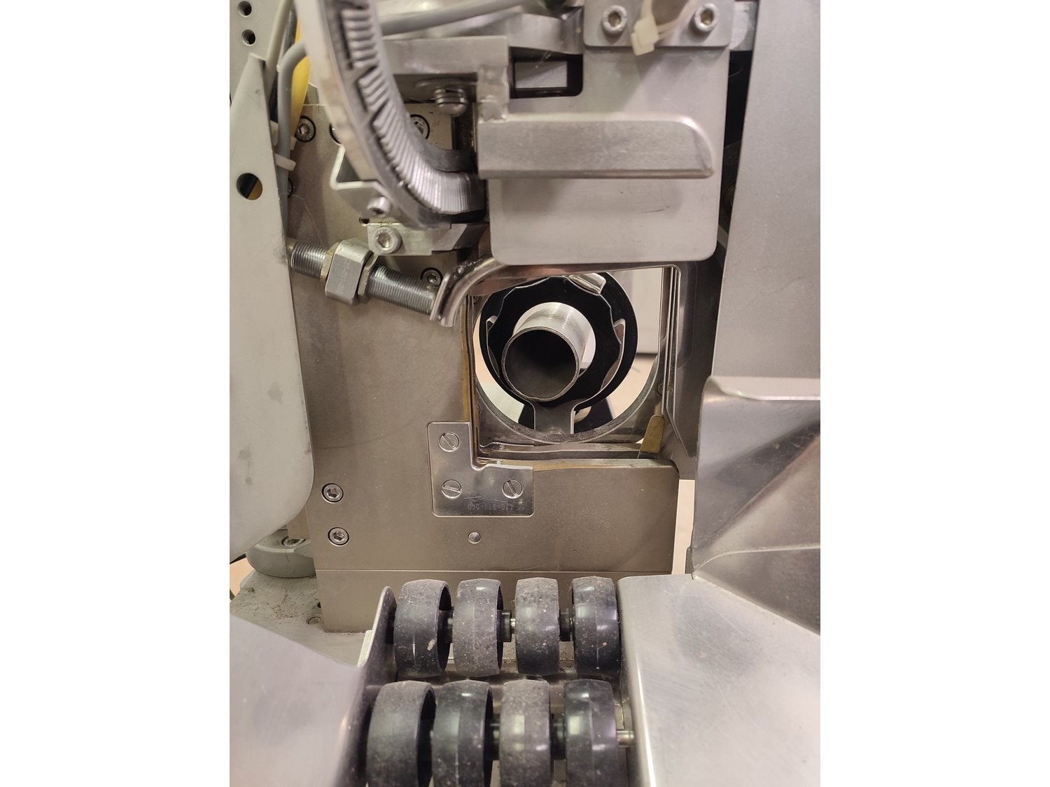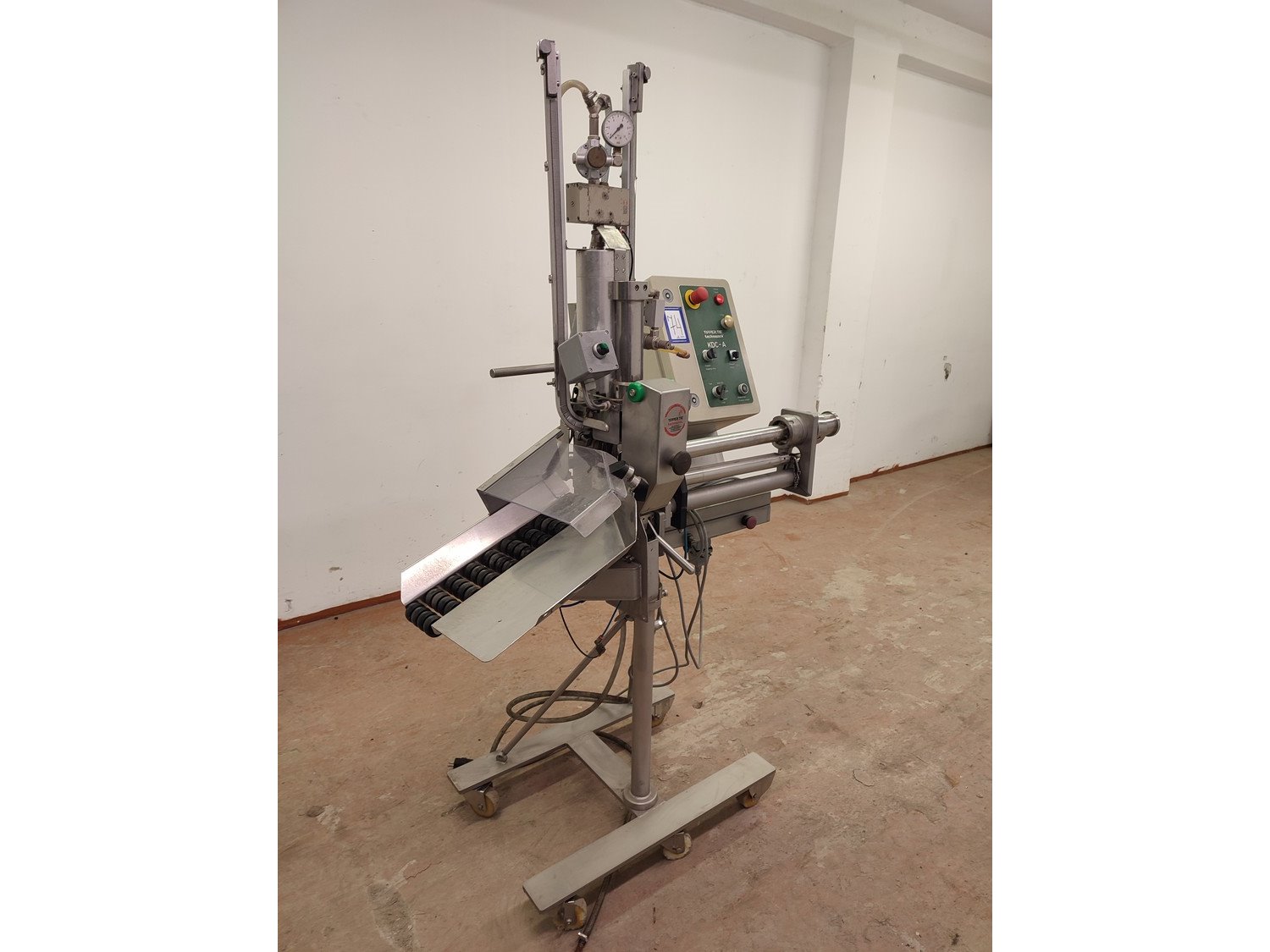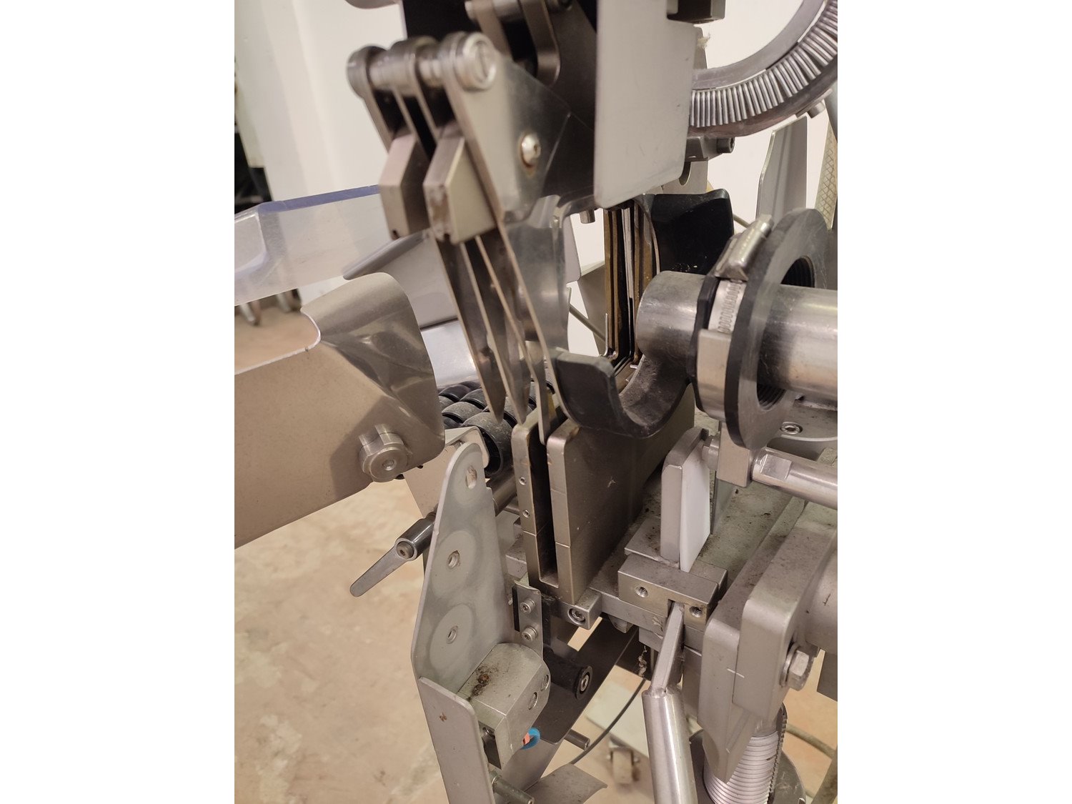Tipper Tie technopack GmbH mobile automatic double clipper, model: KDC-A 90, number: 4251.143.221, year of construction: 2001, minimum 5 bar, maximum 6 bar, dimensions: 1300 mm x 900 mm x 1860 mm.