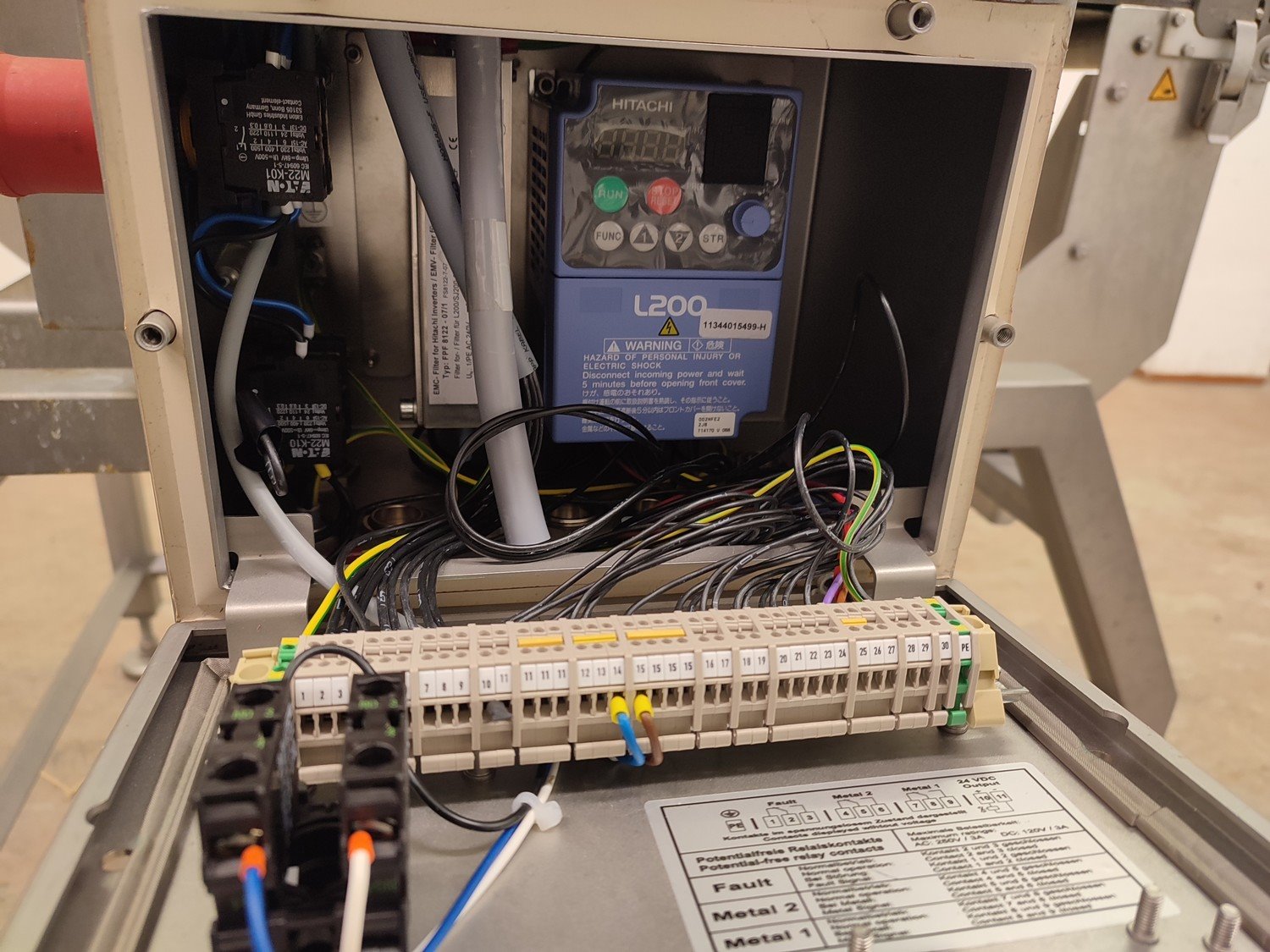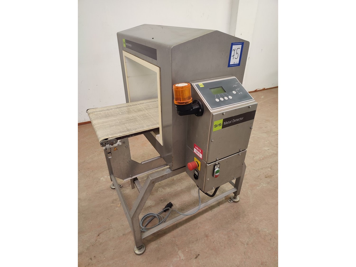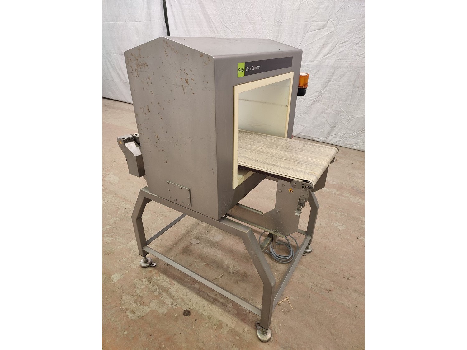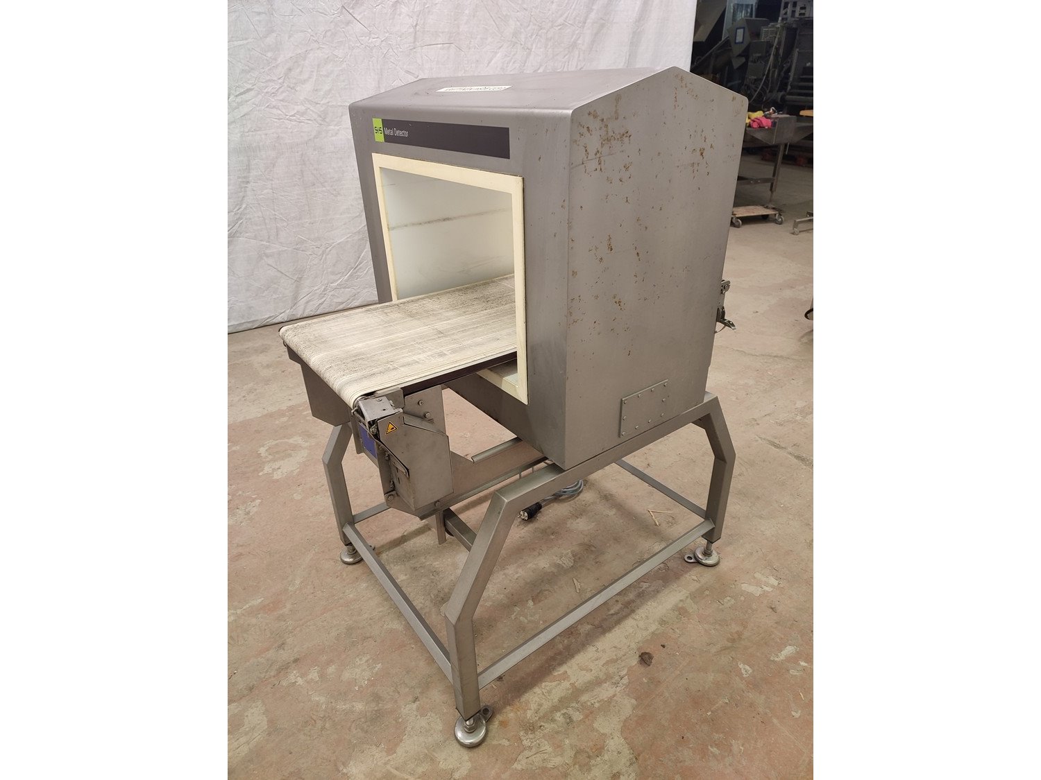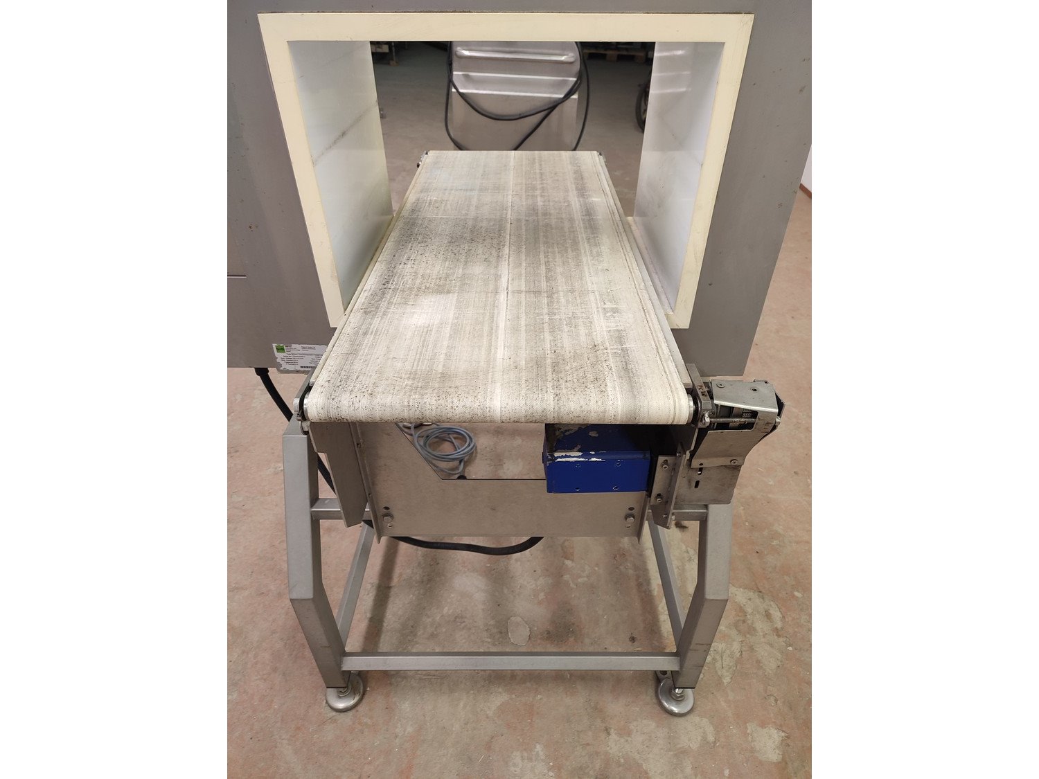 Separation and Sorting Technology GmbH metal detector, type: Ecoline 1000/400/500/350/175/289/143, serial number: 11344015499-H, 230 V, 1 Ph, 50 Hz, 0,75 A, plastic belt, belt width: 400 mm, clearance: 500 mm x 300 mm, total dimensions: 1000 mm x 1000 mm x 1290 mm.