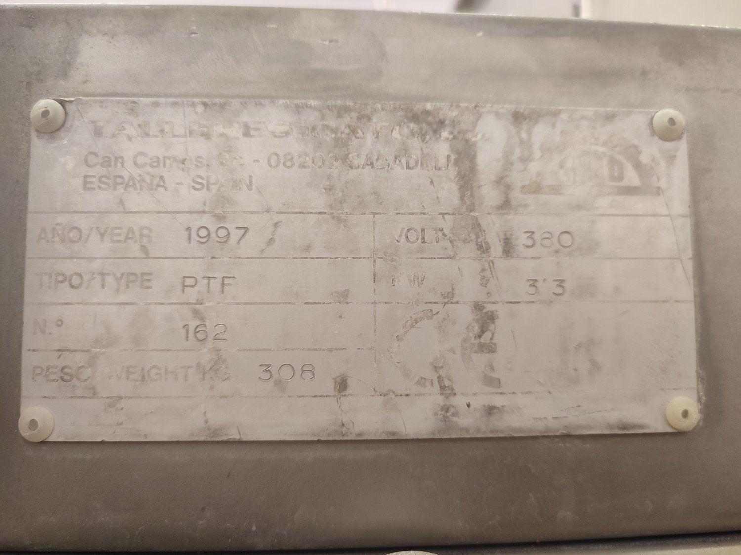 Talleres Cato,s.a. sausage peeler, type: PTF, number: 162, year of construction: 1997, 380 V, 3.3 kW, weight: 308 kg, dimensions: 1500 mm x 800 mm x 2000 mm.