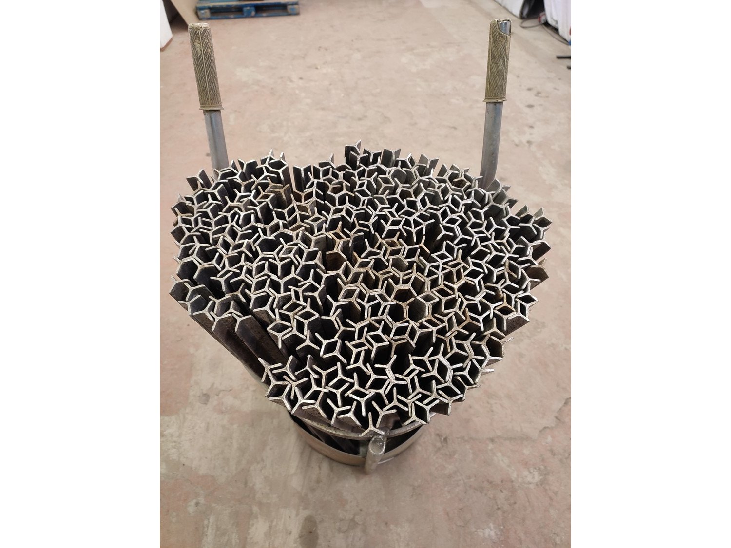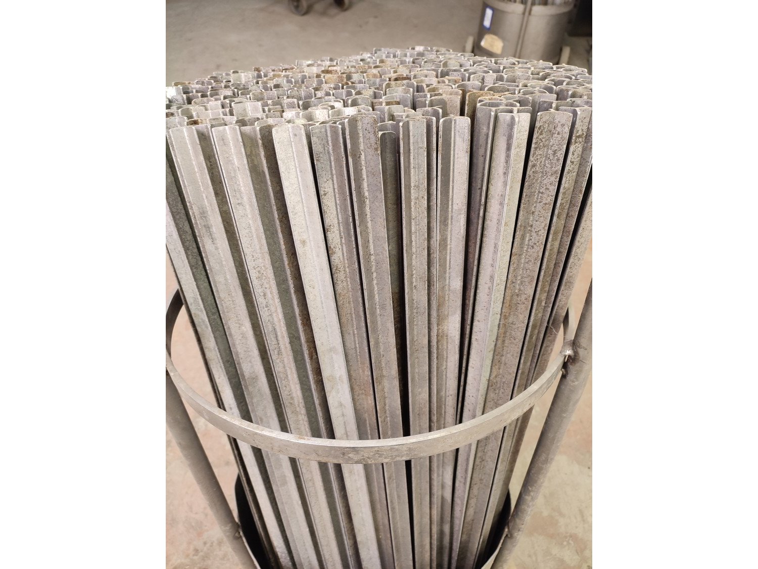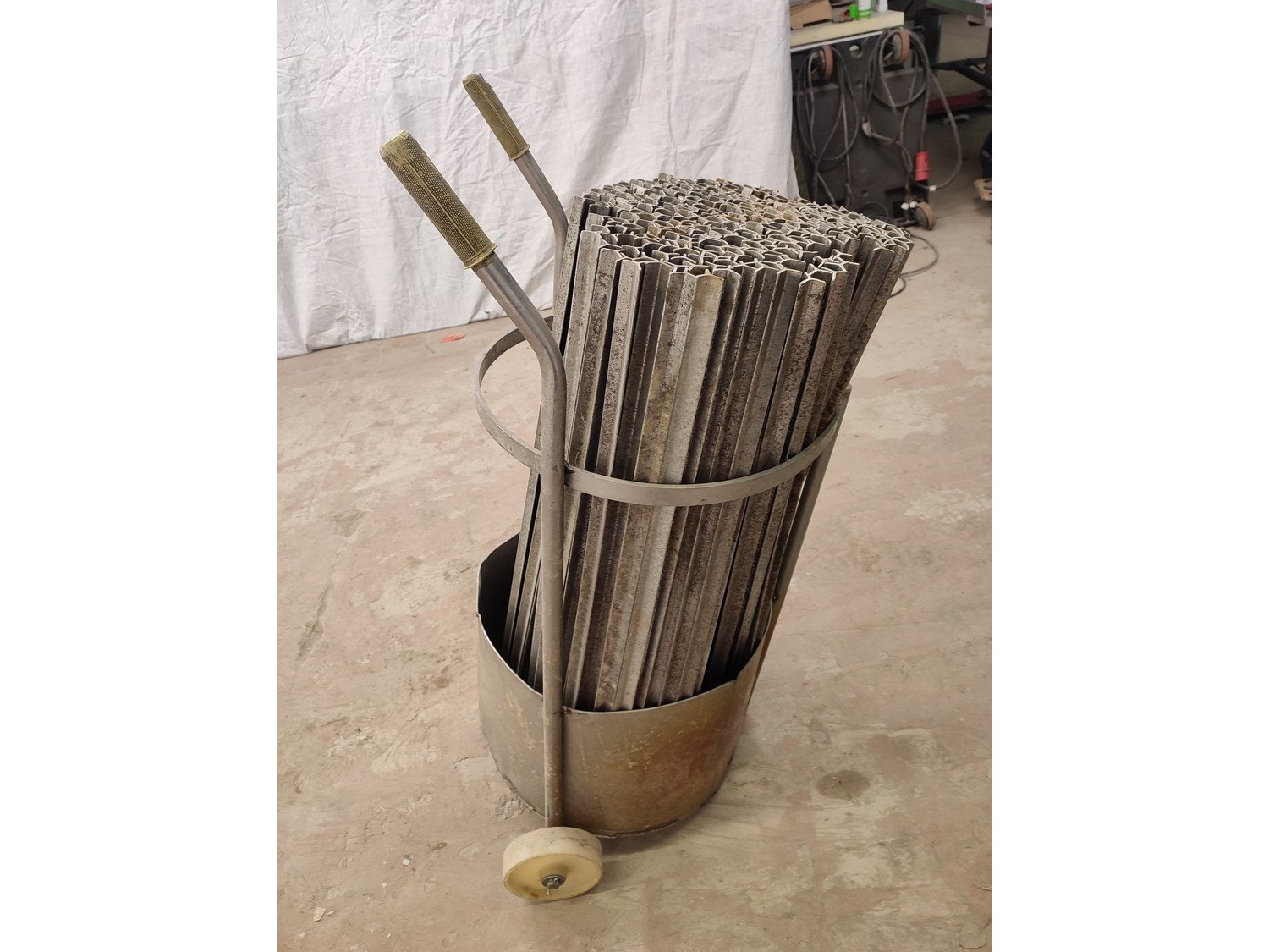 S/s trolley with large amount of aluminium smoke sticks, Y-shaped, length: 1000 mm, dimensions trolley: 530 mm x 620 mm x 1110 mm.