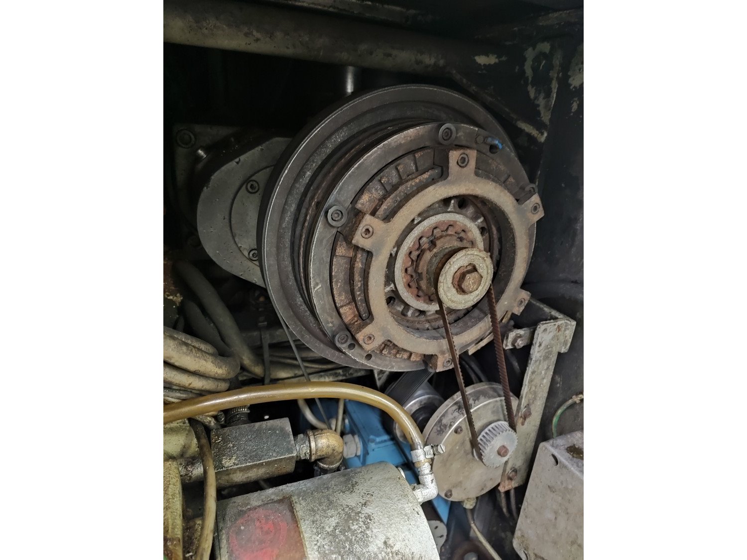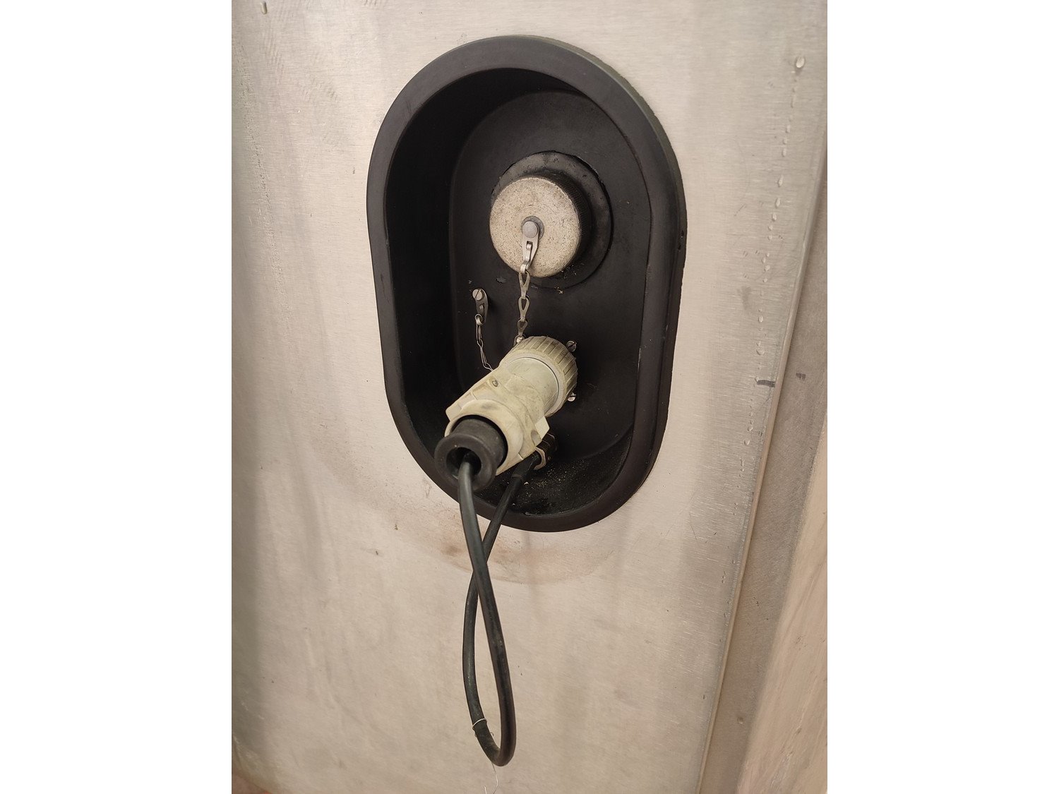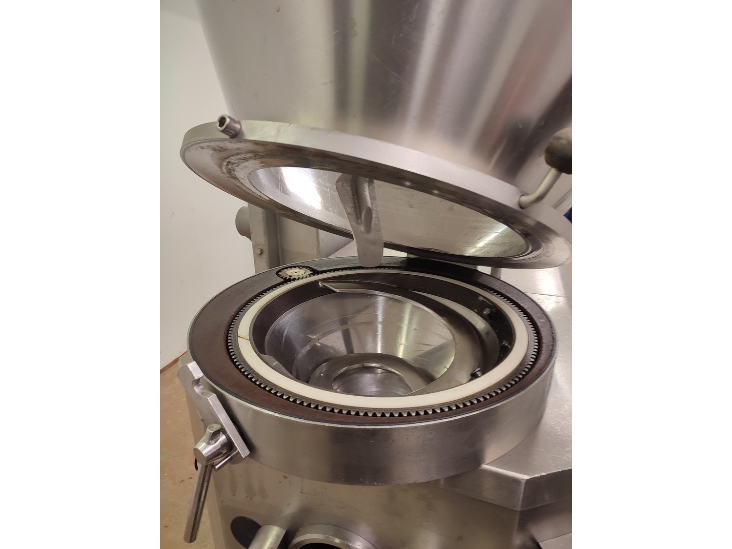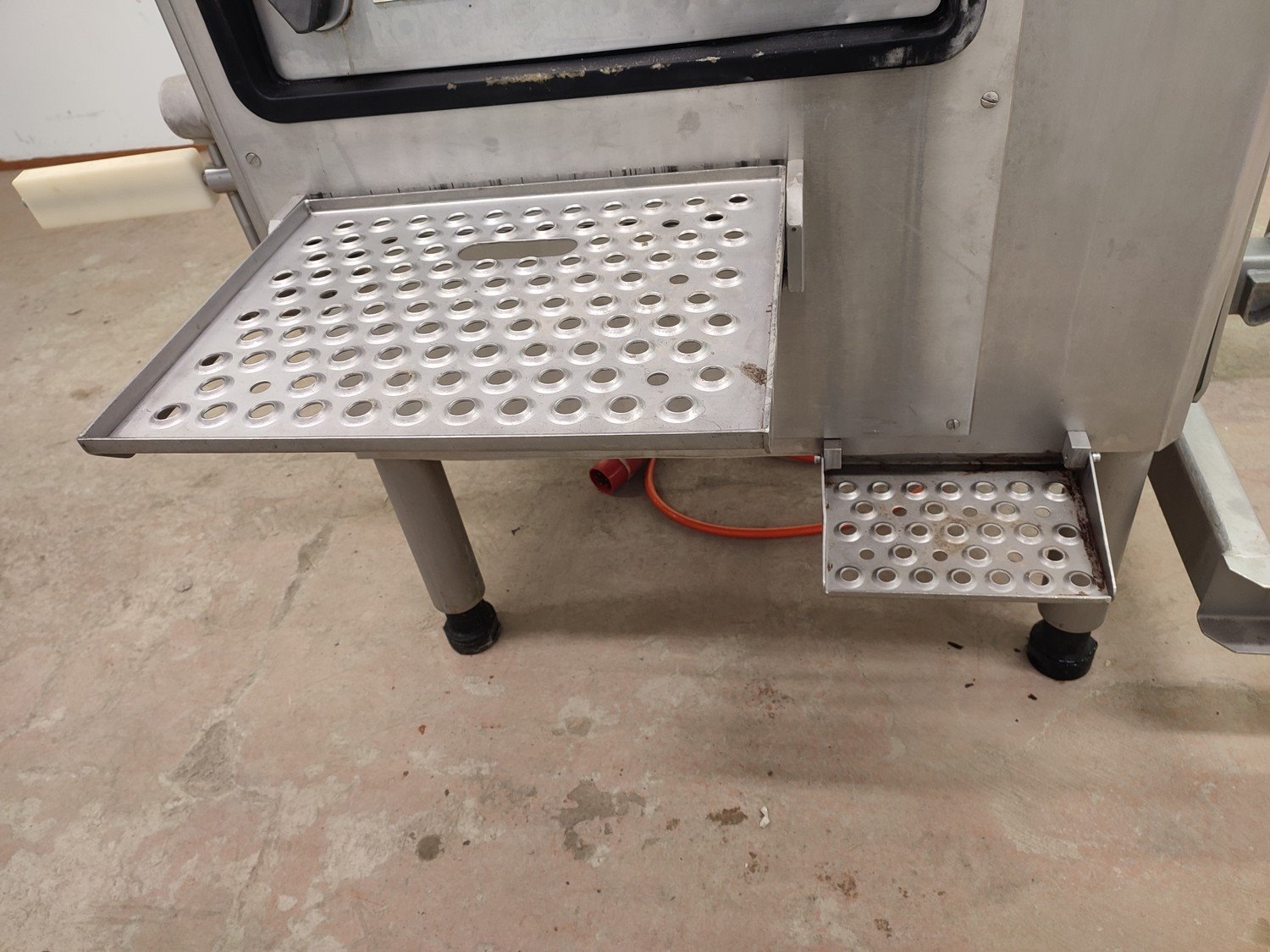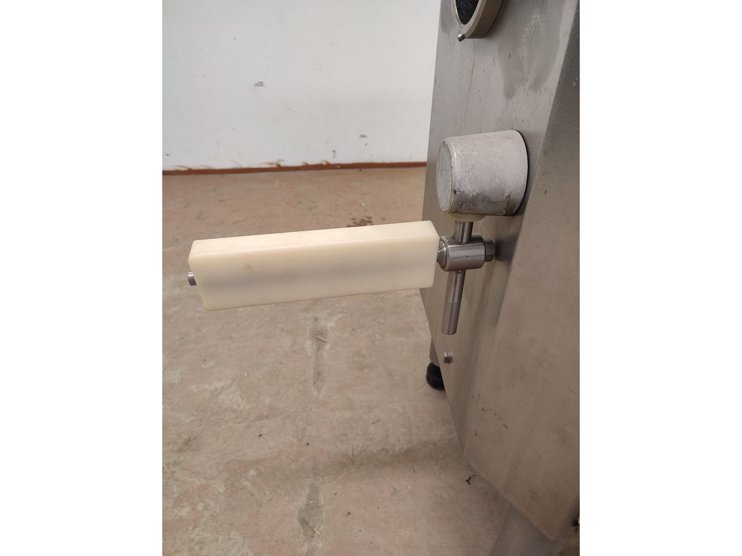 Vemag vacuum filling machine with lifter for 200 liter meat bins, model: 3000 DC, type: 124, number: 124 0160, 380 V, 3 Ph, 50 Hz, 30,5 A, dimensions: 2300 mm x 1300 mm x 2400 mm.