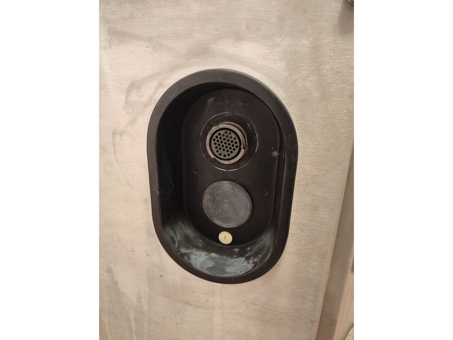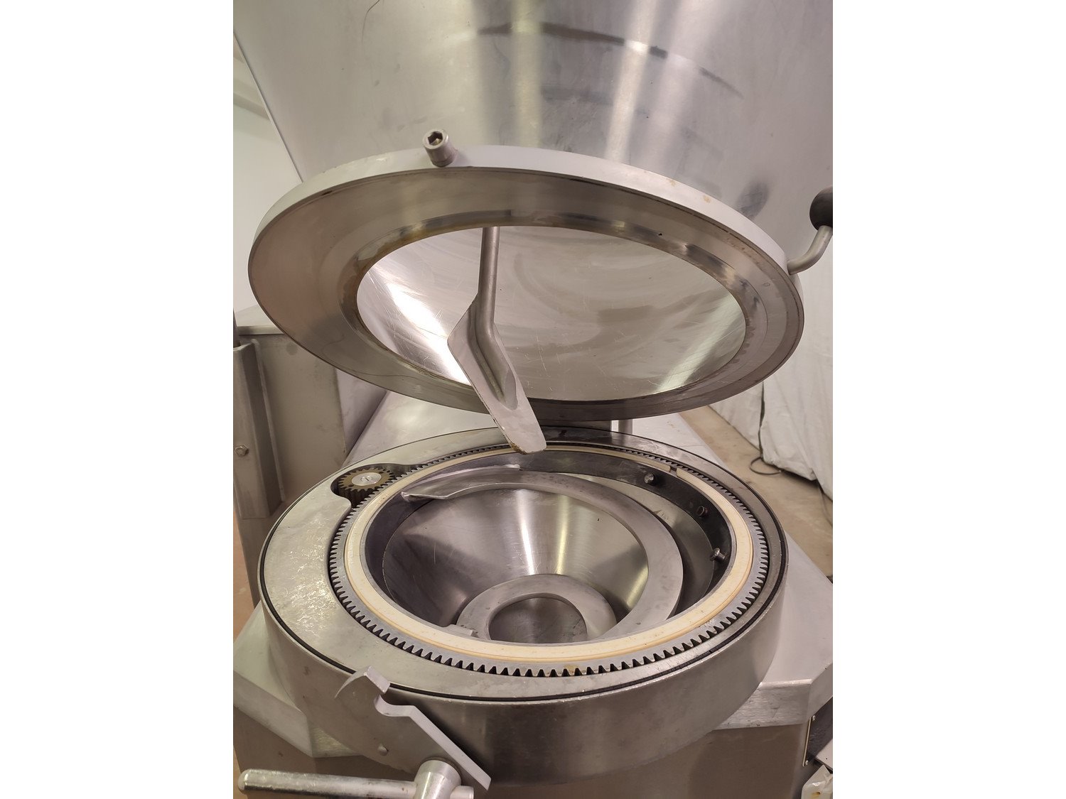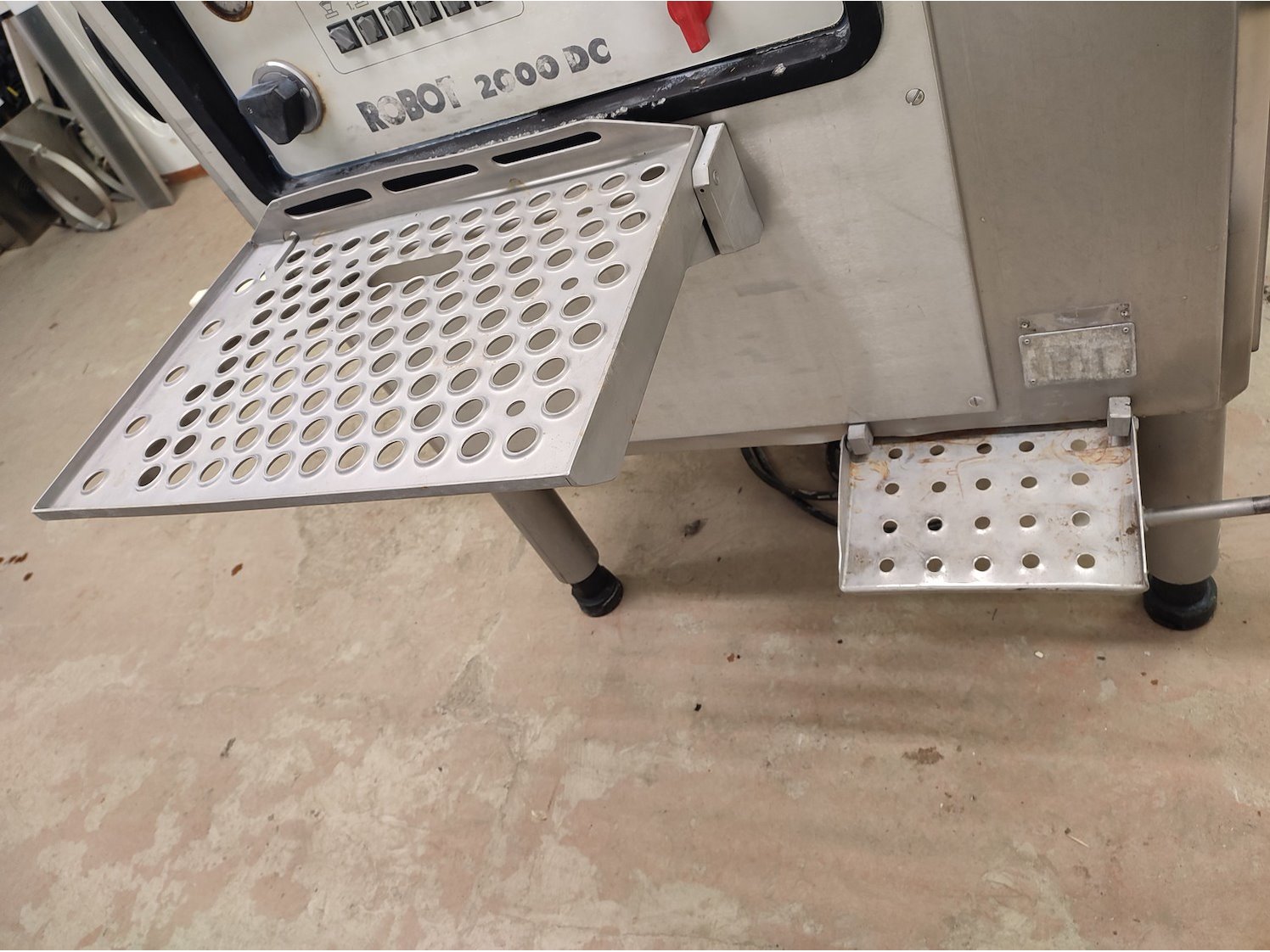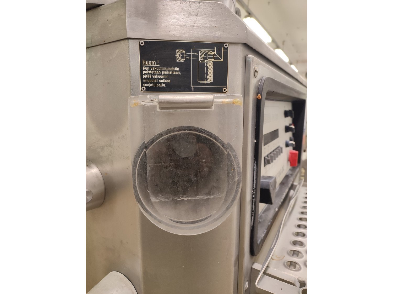 Vemag vacuum filling machine with lifter for 200 liter meat bins, model: 2000 DC, type: 132, number: 1320154-1, 380 V, 3 Ph, 50 Hz, 42 A, dimensions: 2200 mm x 1300 mm x 2400 mm.