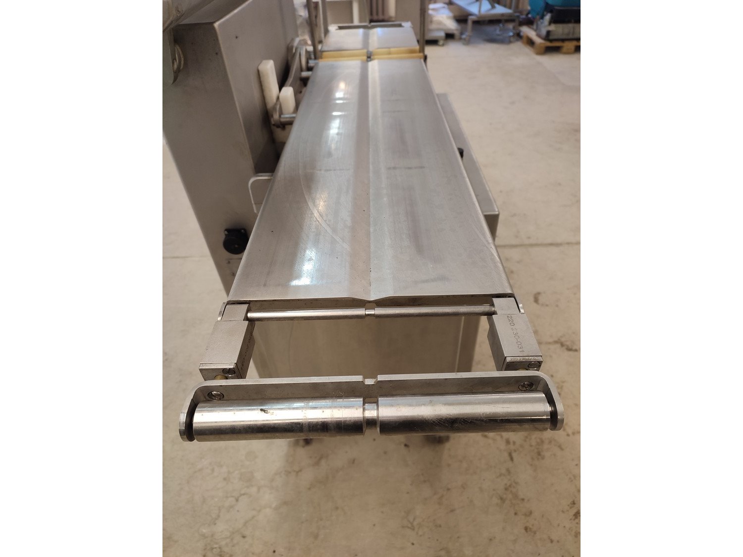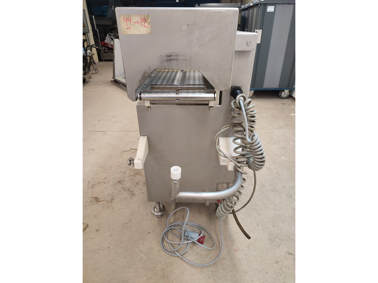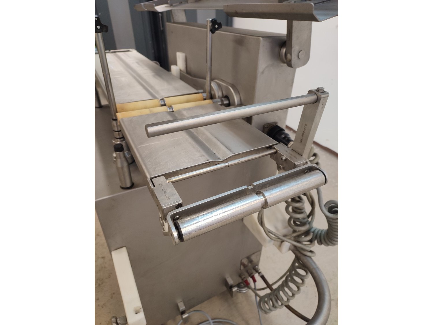 Vemag mobile portioning machine, model: MMP 220, number: 2200198, year of construction: 2008, 400-460 V, 3 Ph, 50/60 Hz, 3.5 A, 1.5 kW, pressure: 6 bar, belt width: 260 mm, total dimensions: 1630 mm x 600 mm x 1400 mm. Missing belts.
