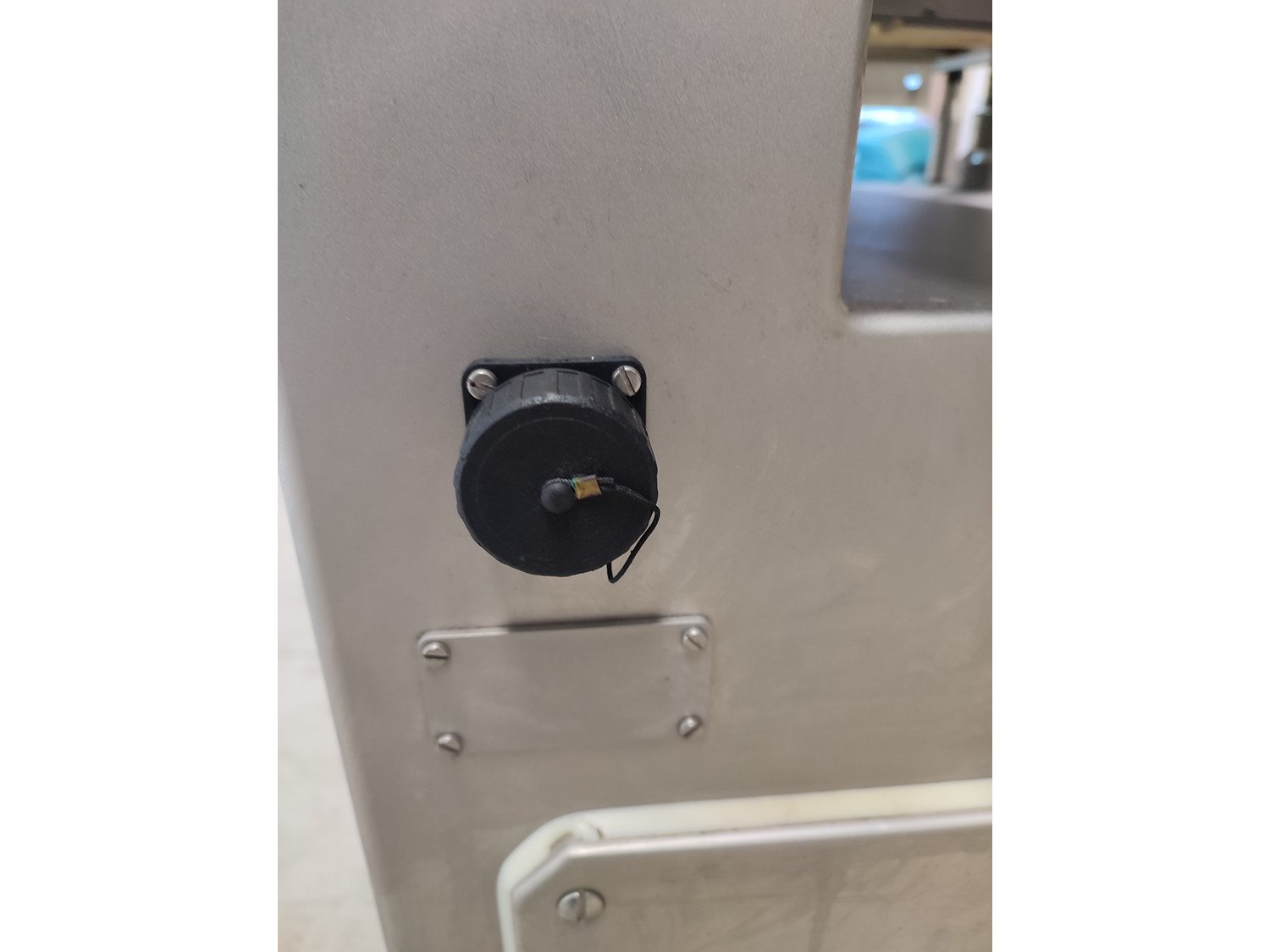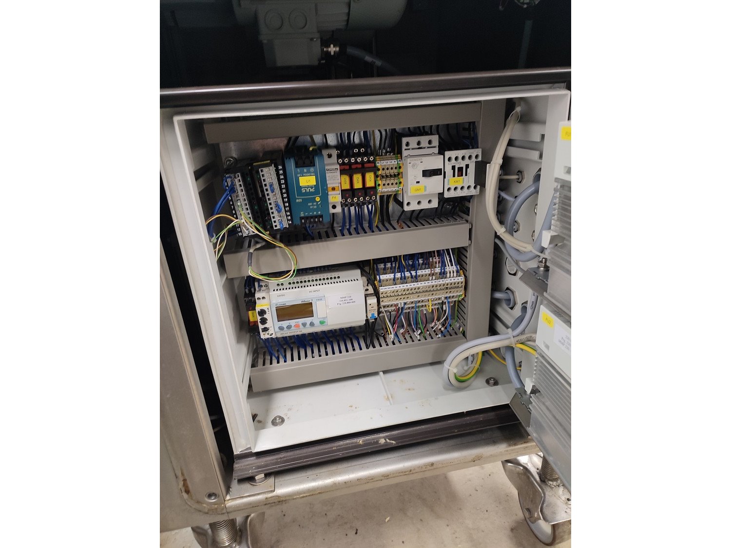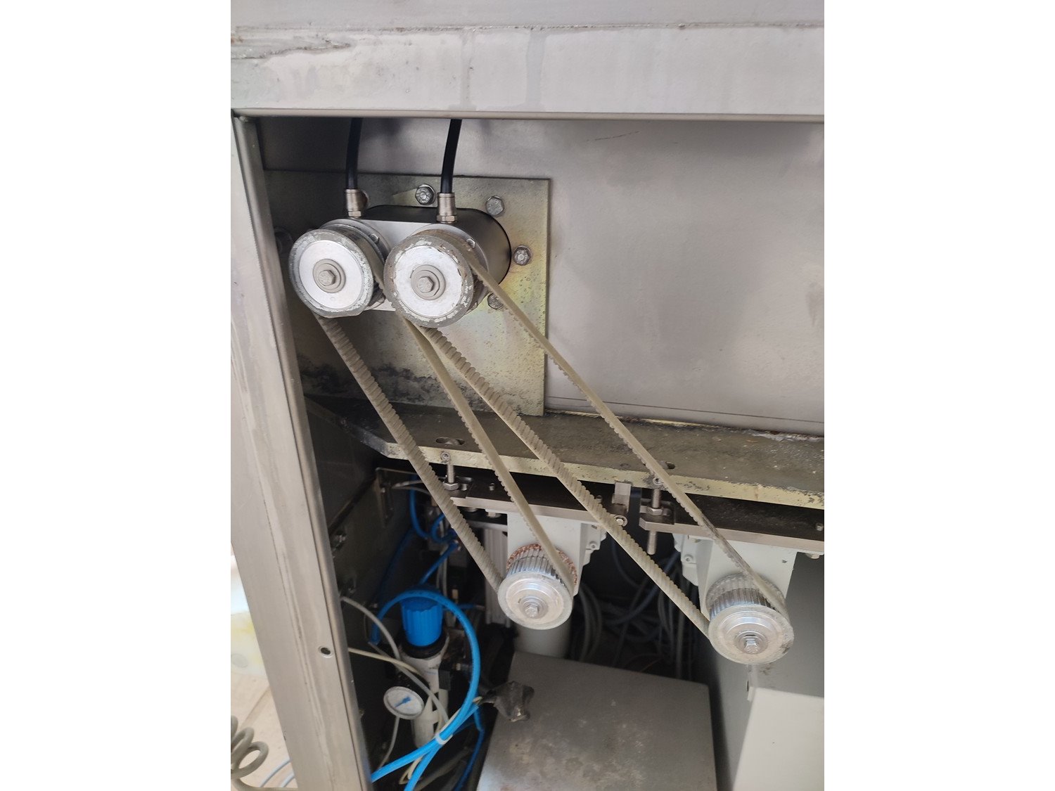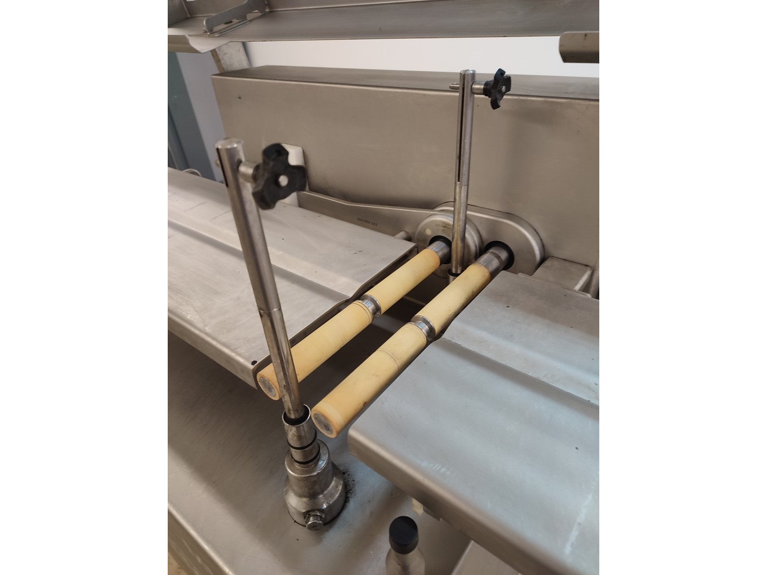 Vemag mobile portioning machine, model: MMP 220, number: 2200198, year of construction: 2008, 400-460 V, 3 Ph, 50/60 Hz, 3.5 A, 1.5 kW, pressure: 6 bar, belt width: 260 mm, total dimensions: 1630 mm x 600 mm x 1400 mm. Missing belts.