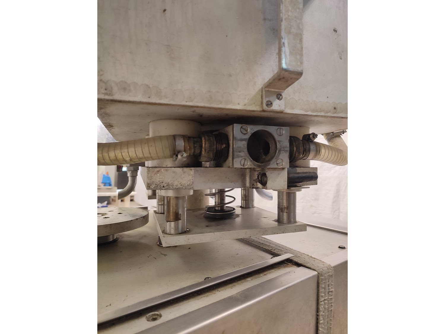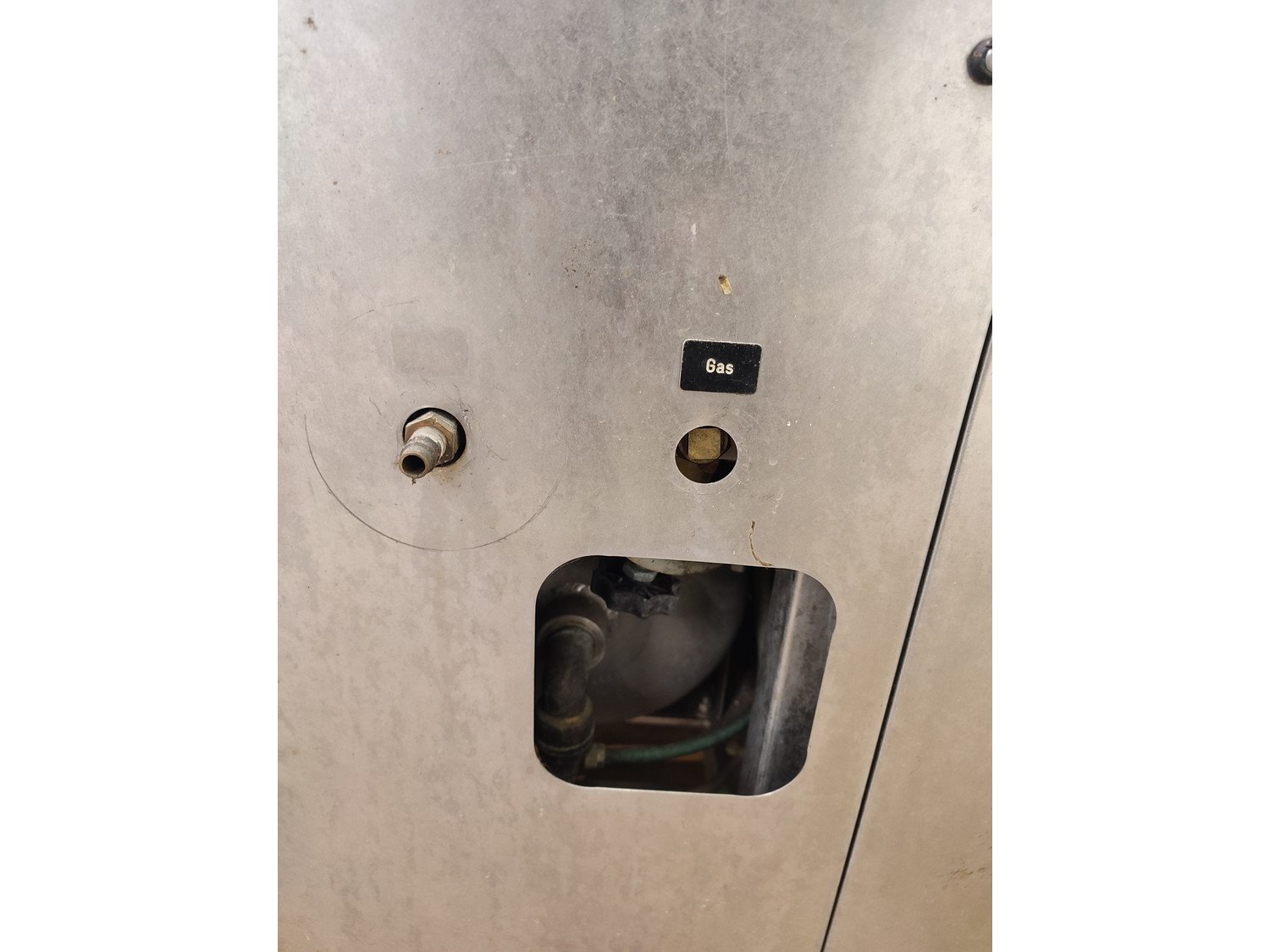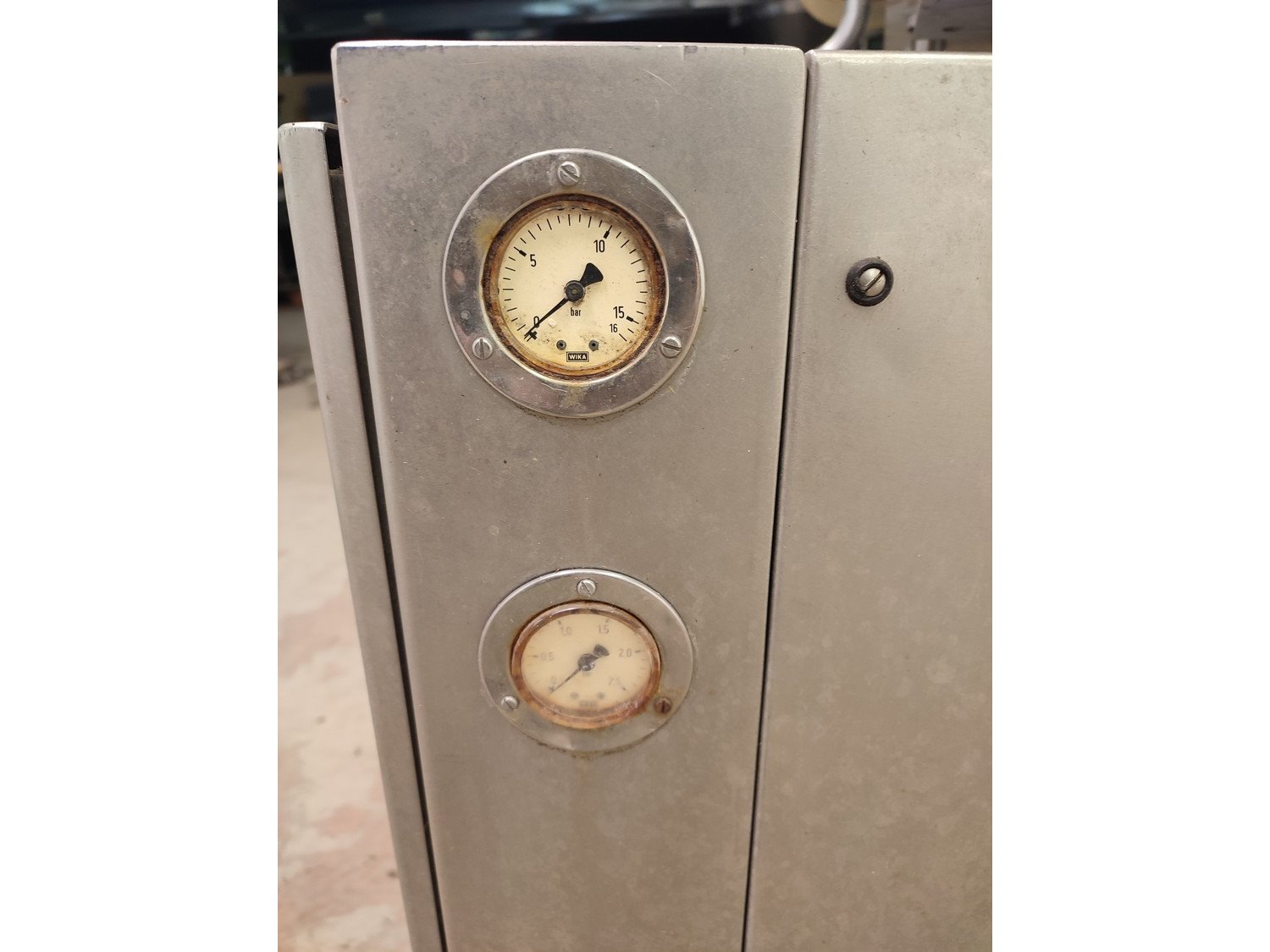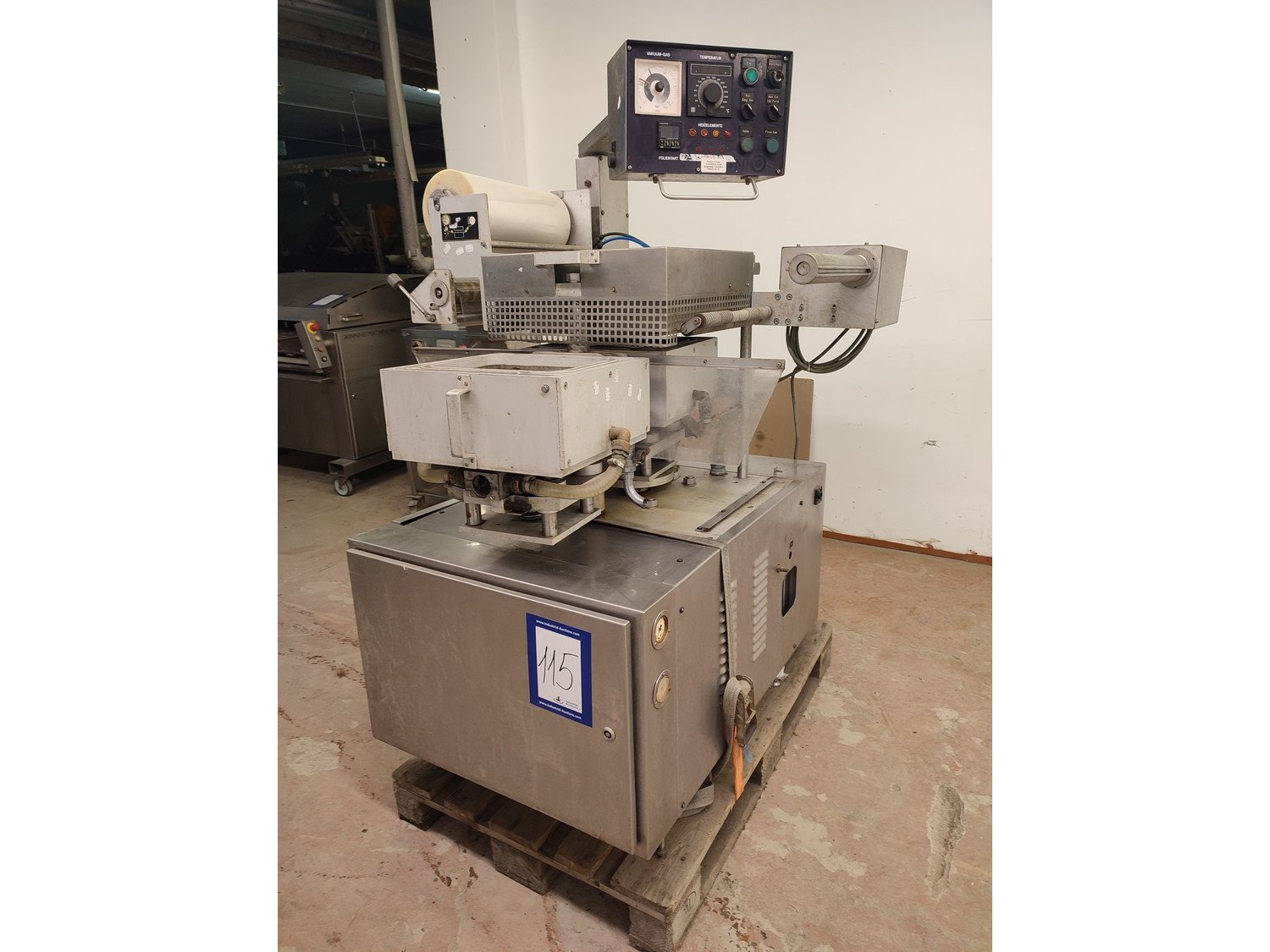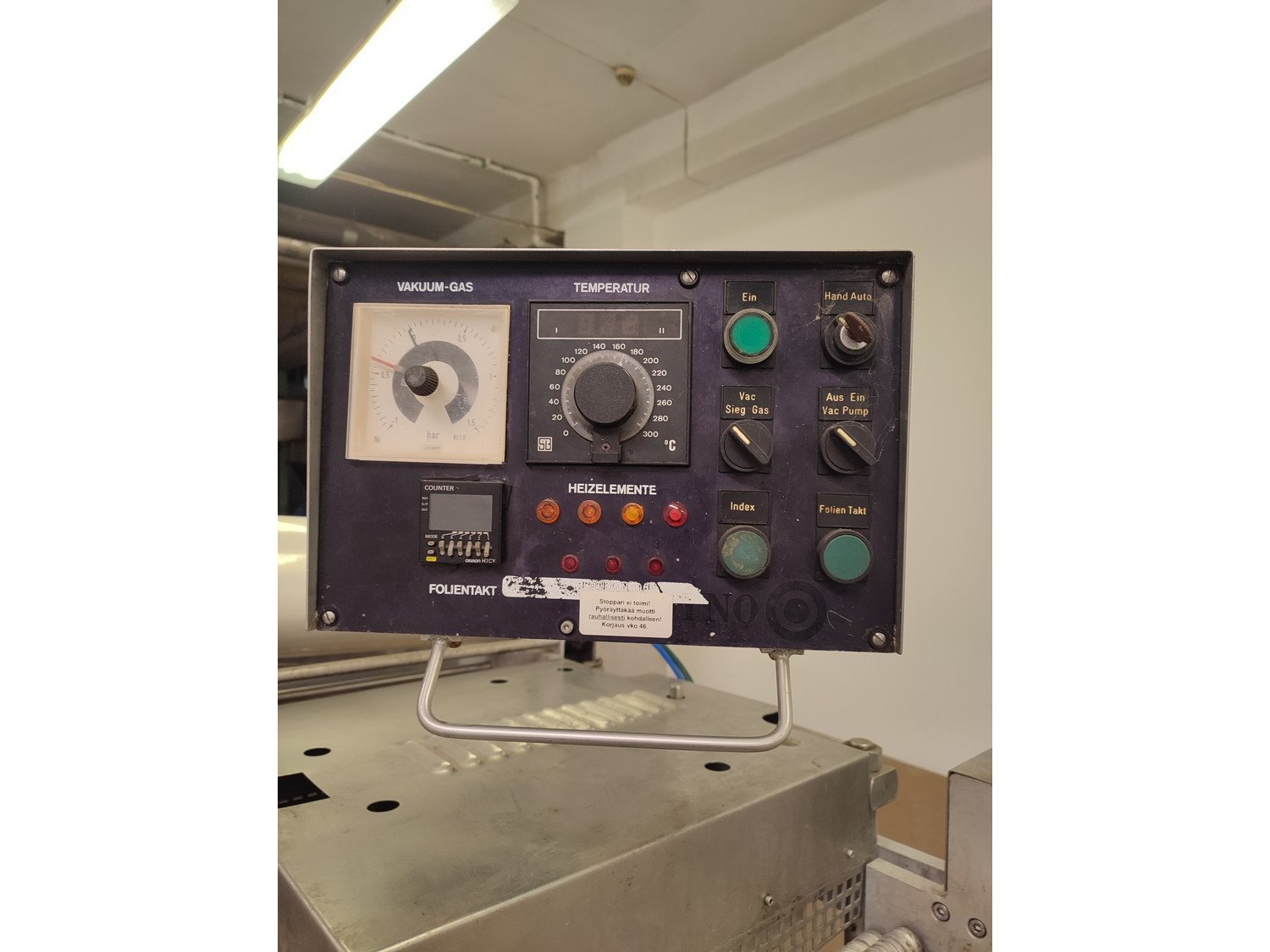 Schmid Maschinenbau GmbH traysealer, type: 320 VG, machine number: 003, year of construction: 10.1991, 380 V, 6 kW, 6 bar, dye: 290 mm x 230 mm, film width: 380 mm, Busch vacuum pump, type: 063-136, serial number: 330002, capacity: 63 m3/h, total dimensions: 1100 mm x 1200 mm x 1770 mm.