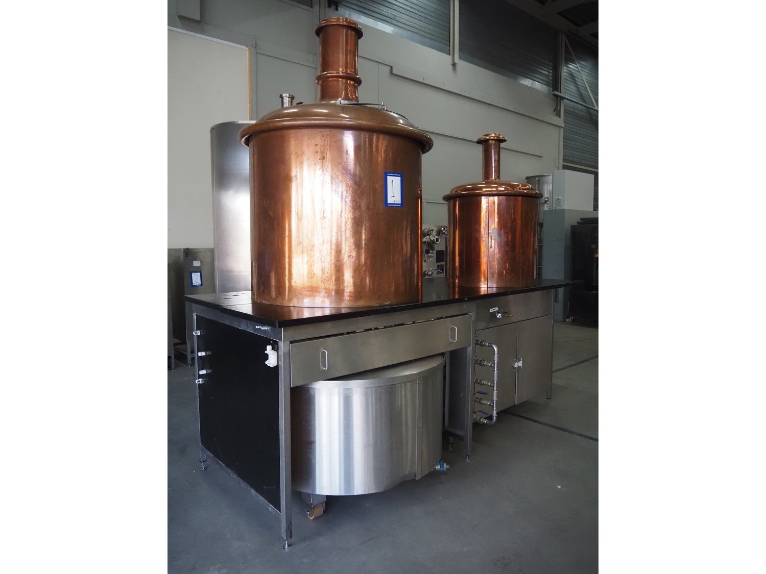 Dreher 2-vessel brew system, type: KBA500, year of construction: 2006, 42 kW, volume kettle: 550 liter, dimensions: 3200 mm x 1270 mm x 2750 mm.