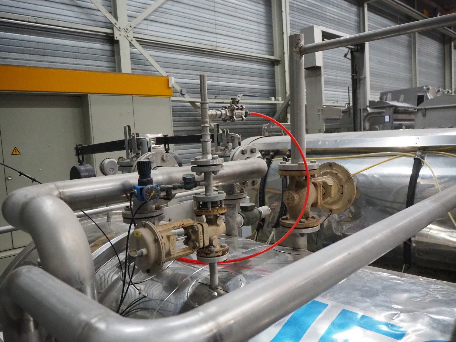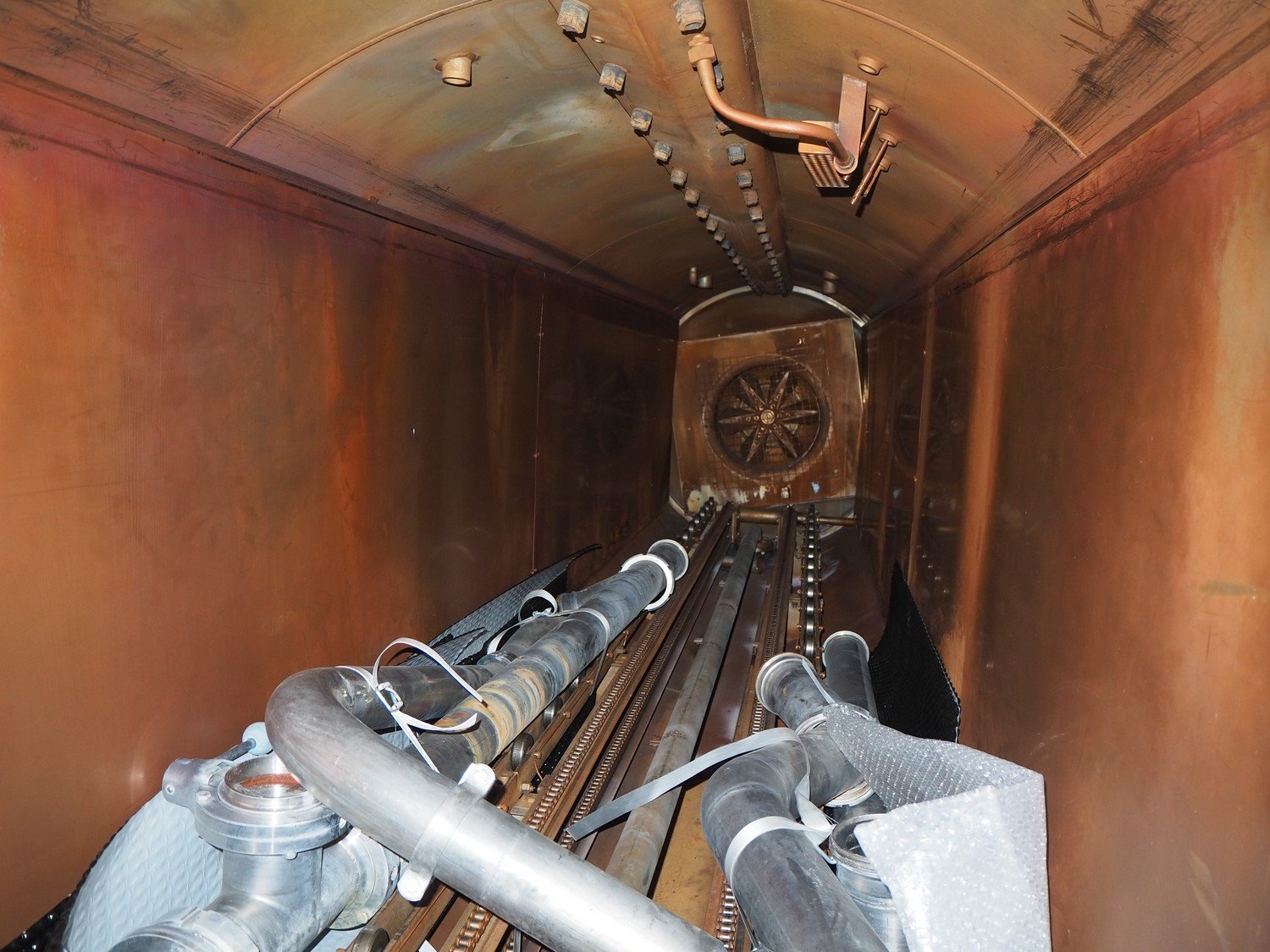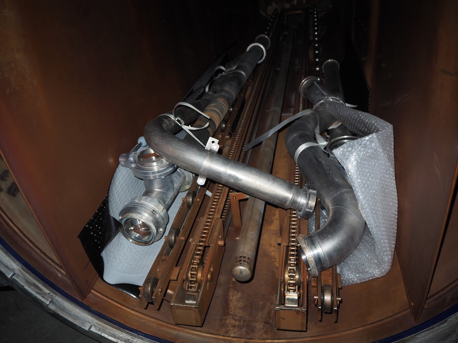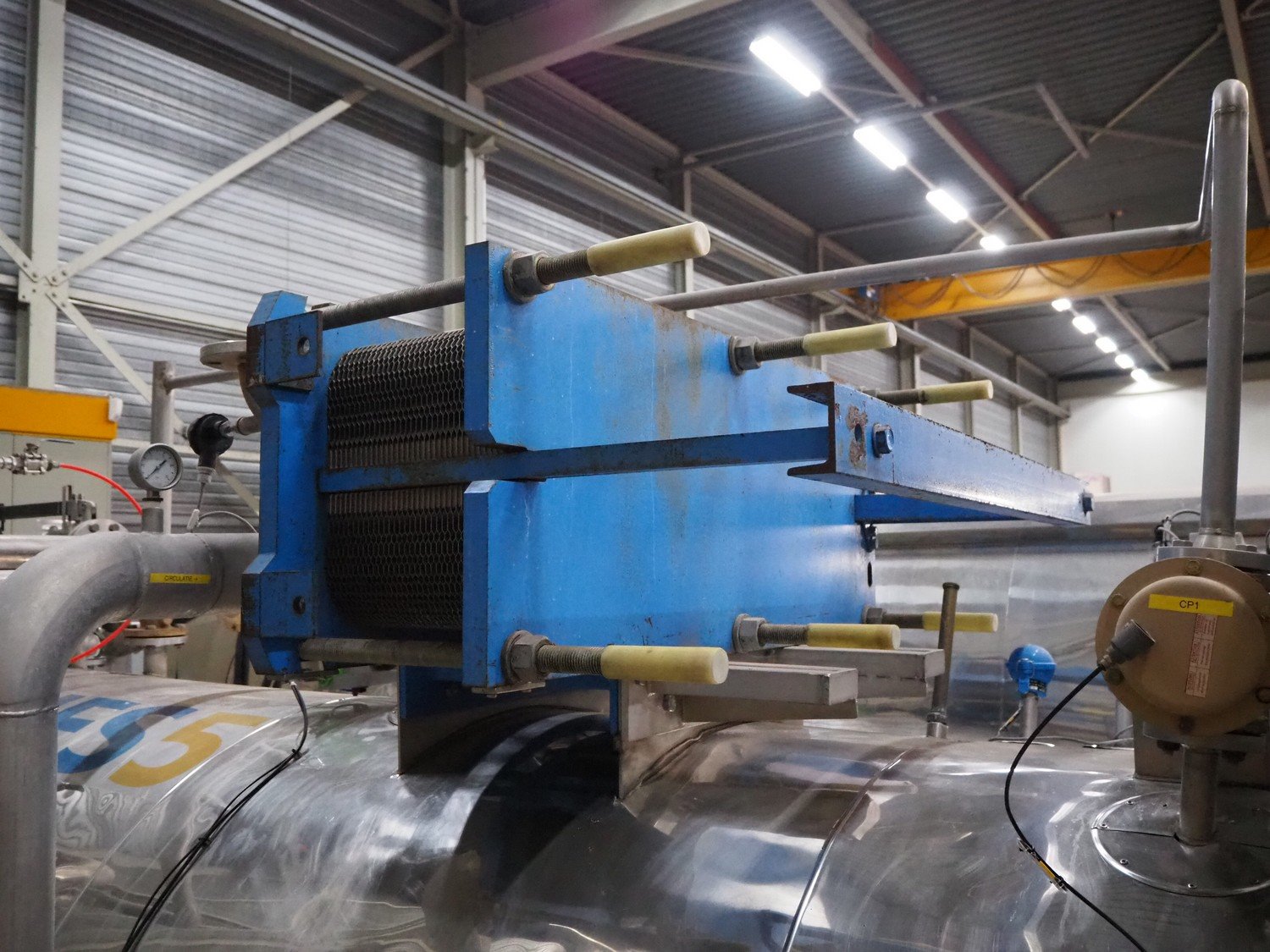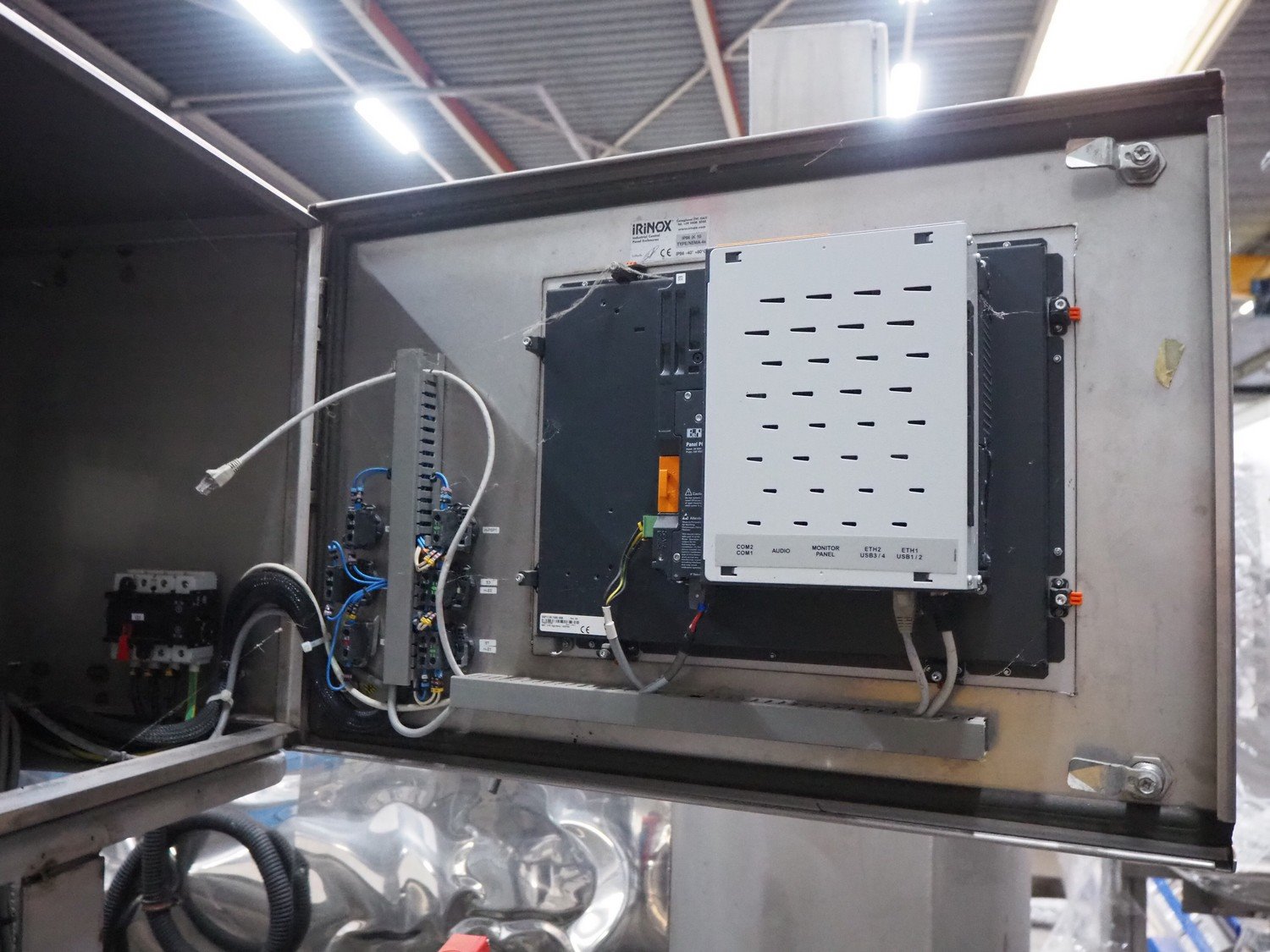 J. Lagarde autoclave, year of construction: 1994, diameter: 1300 mm, content: 6450 litres, 3 x 400 V, 50 Hz, 25.5 kW, heating: steam, working pressure: 5 bar, working temperature: 158 °C, Vicarb heat exchanger, type: V28-5054, automatic transport inside autoclave, 2-doors, total dimensions: 5800 mm x 1900 mm x 2400 mm.