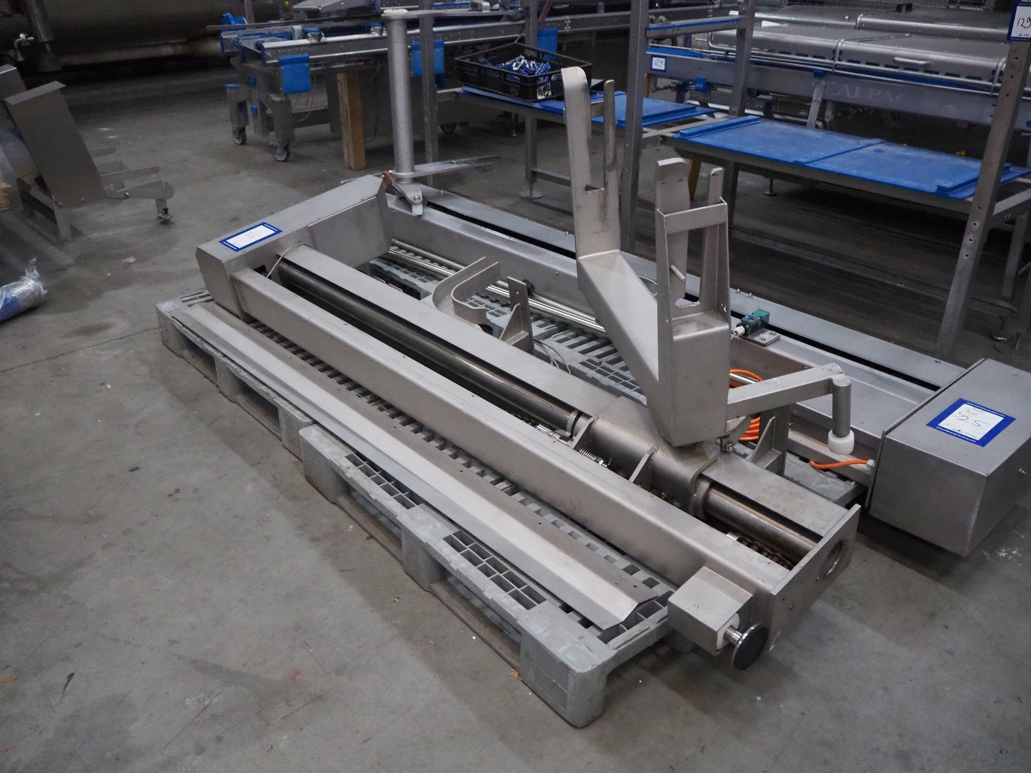 S/s lifter for meat bins, lifting height: 1500 mm, maximum capacity: 250 kg, total dimensions: 900 mm x 800 mm x 2500 mm.