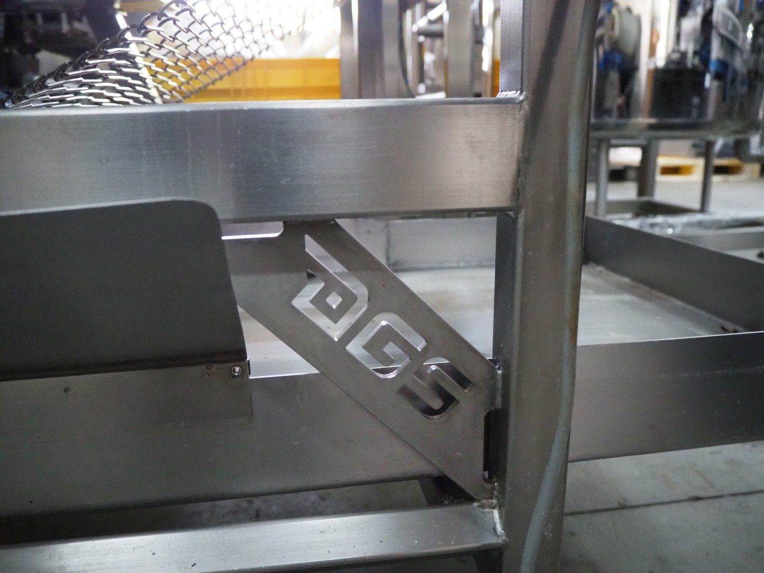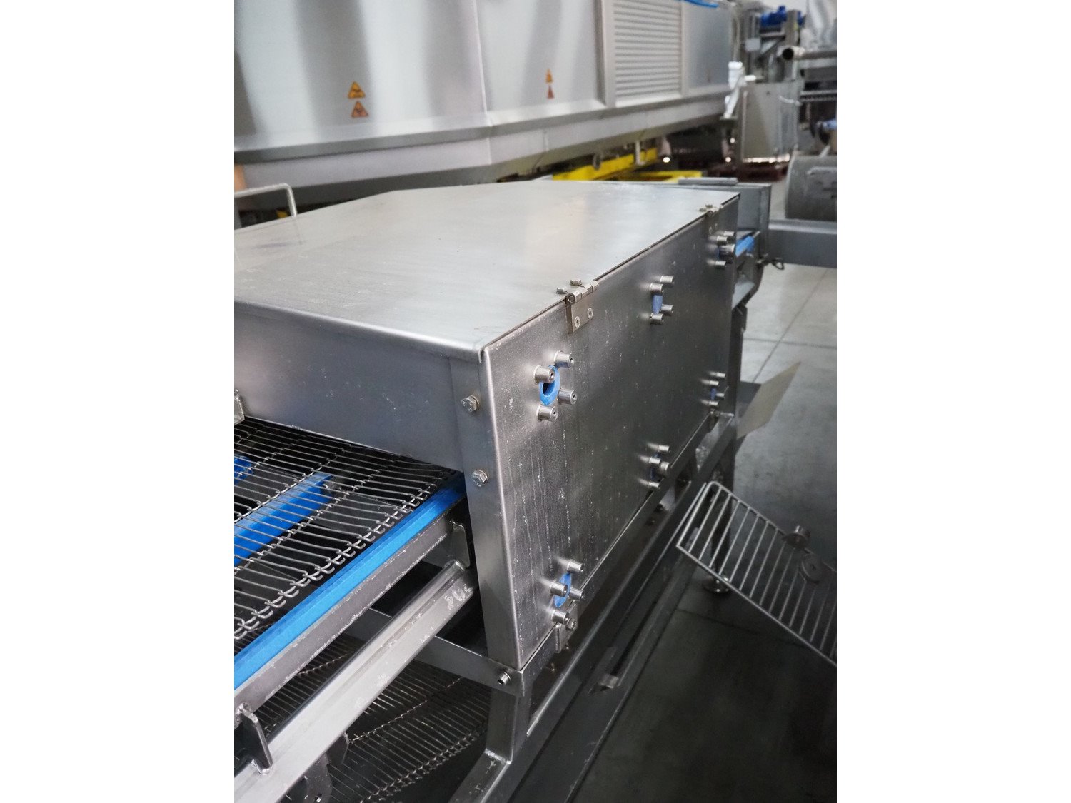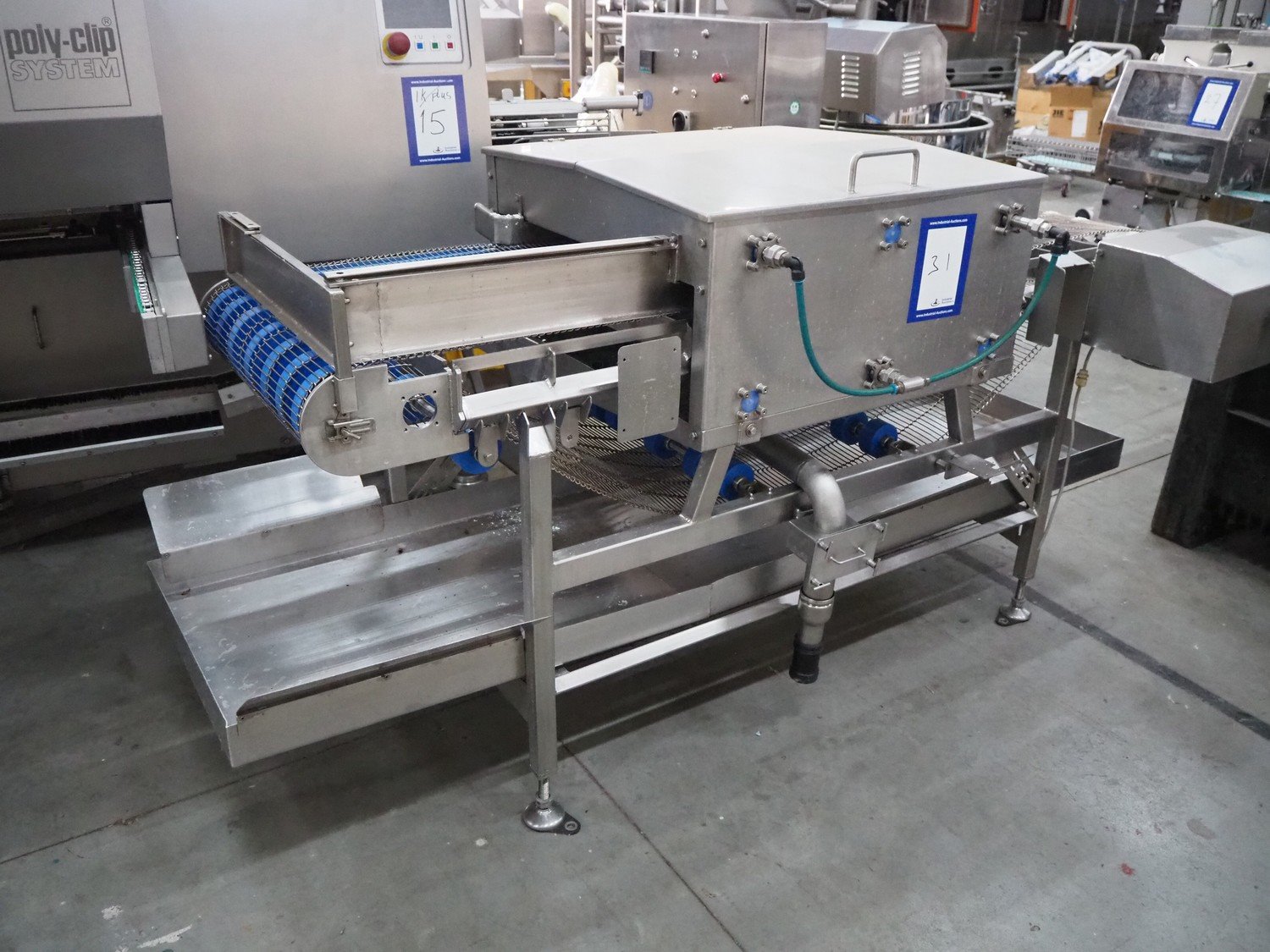 Spraying belt, s/s frame, s/s mesh belt, belt width: 600 mm, clearance: 550 mm x 60 mm, total dimensions: 2200 mm x 1100 mm x 1200 mm.