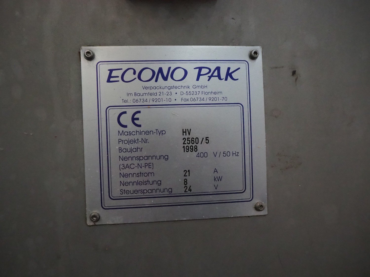 ECONO-PAK GmbH box closing machine, type: Dozensluiter, machine type: HV, project number: 2560/5, year of construction: 1998, 400 V, 3 Ph, 50 Hz, 21 A, 8 kW, dimensions: 5400 mm x 1400 mm x 1900 mm. Including switch cabinet, dimensions: 1200 mm x 800 mm x 2200 mm.