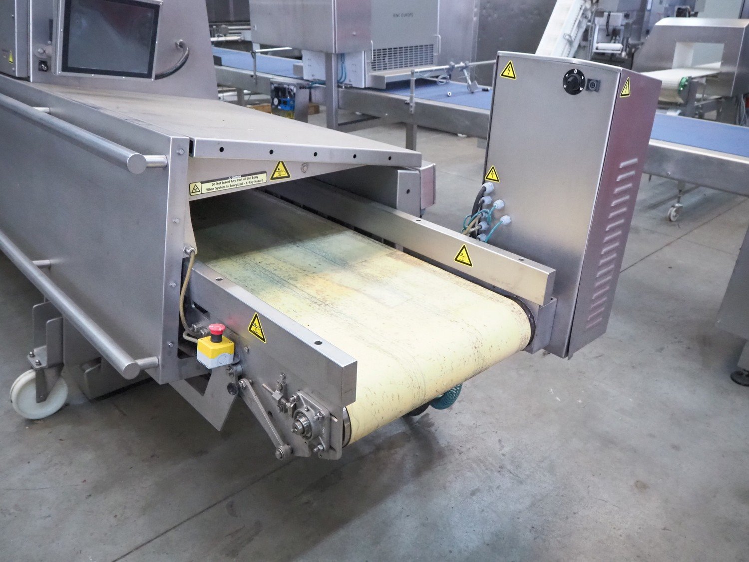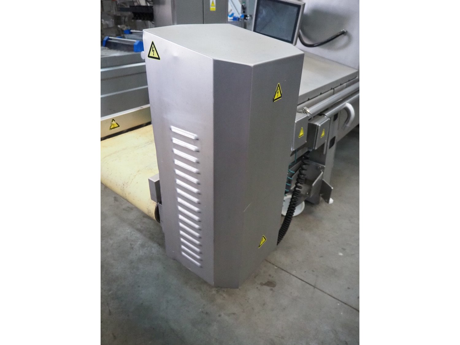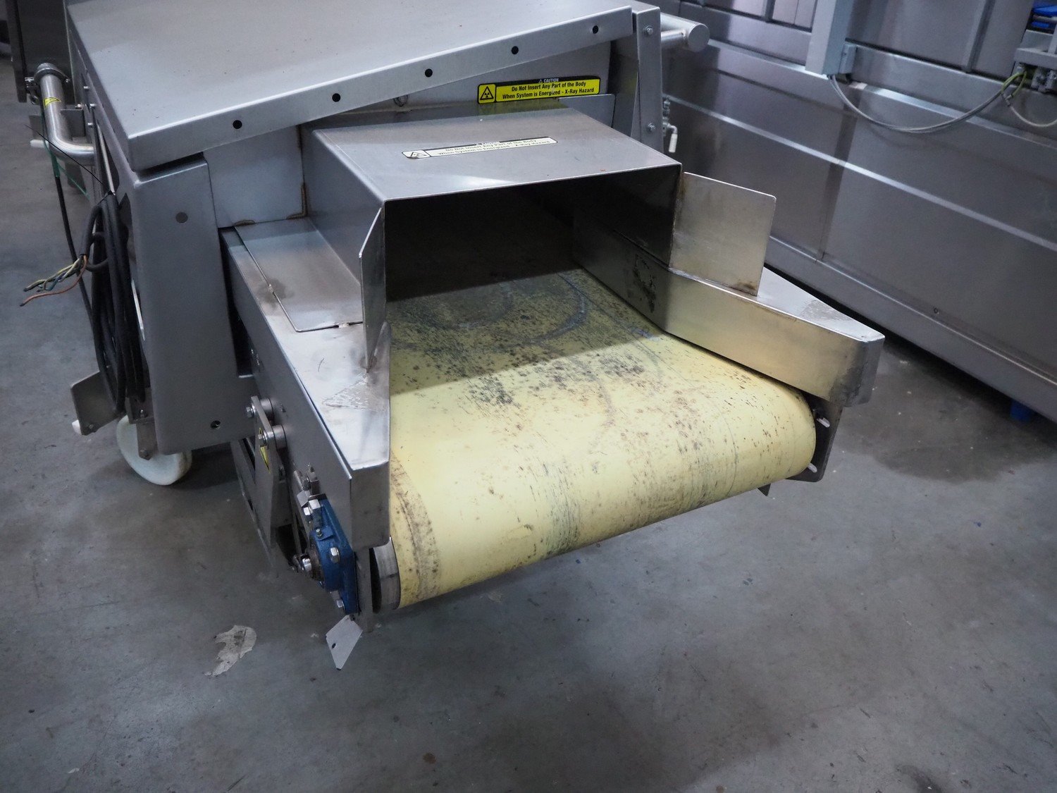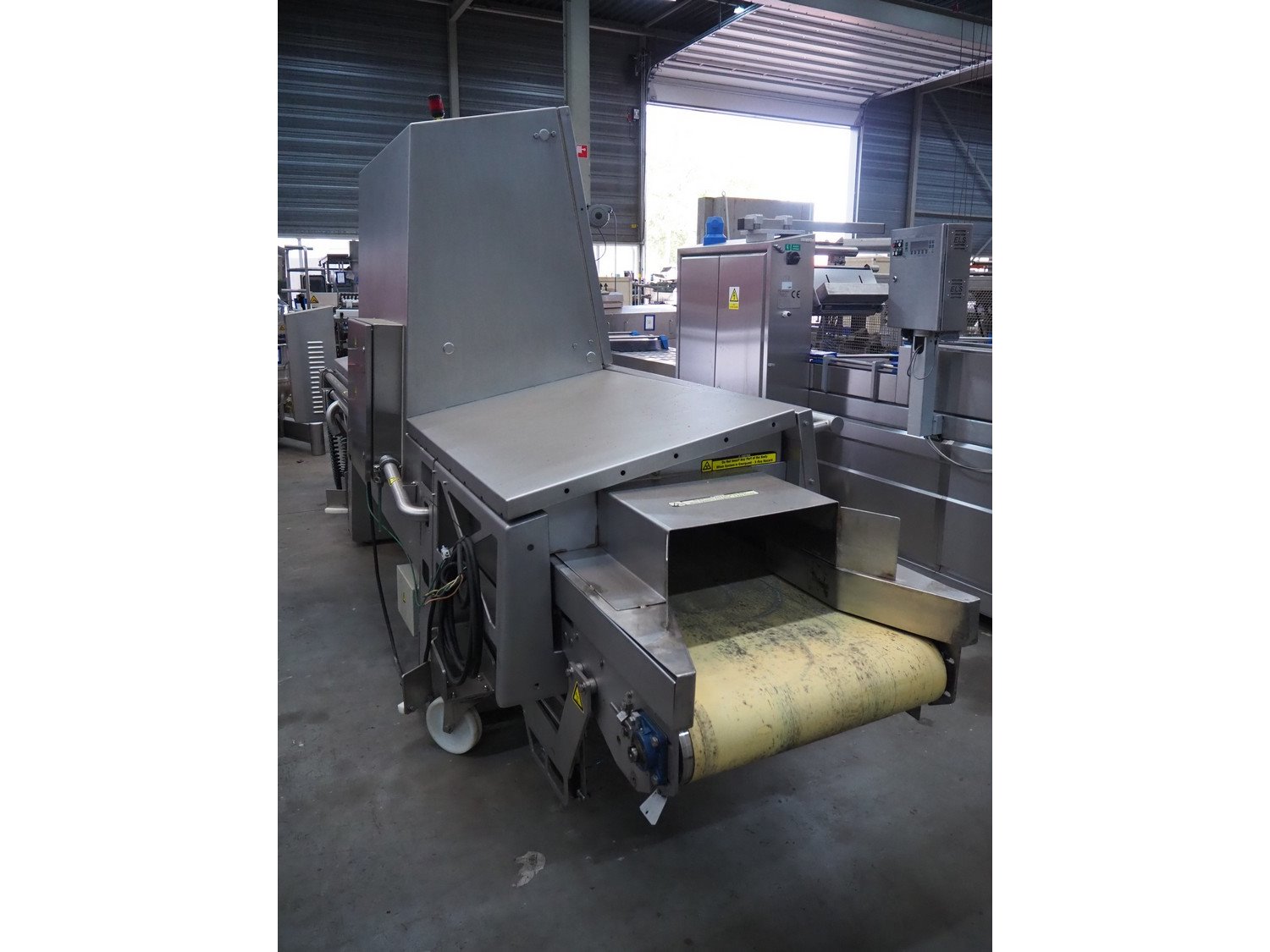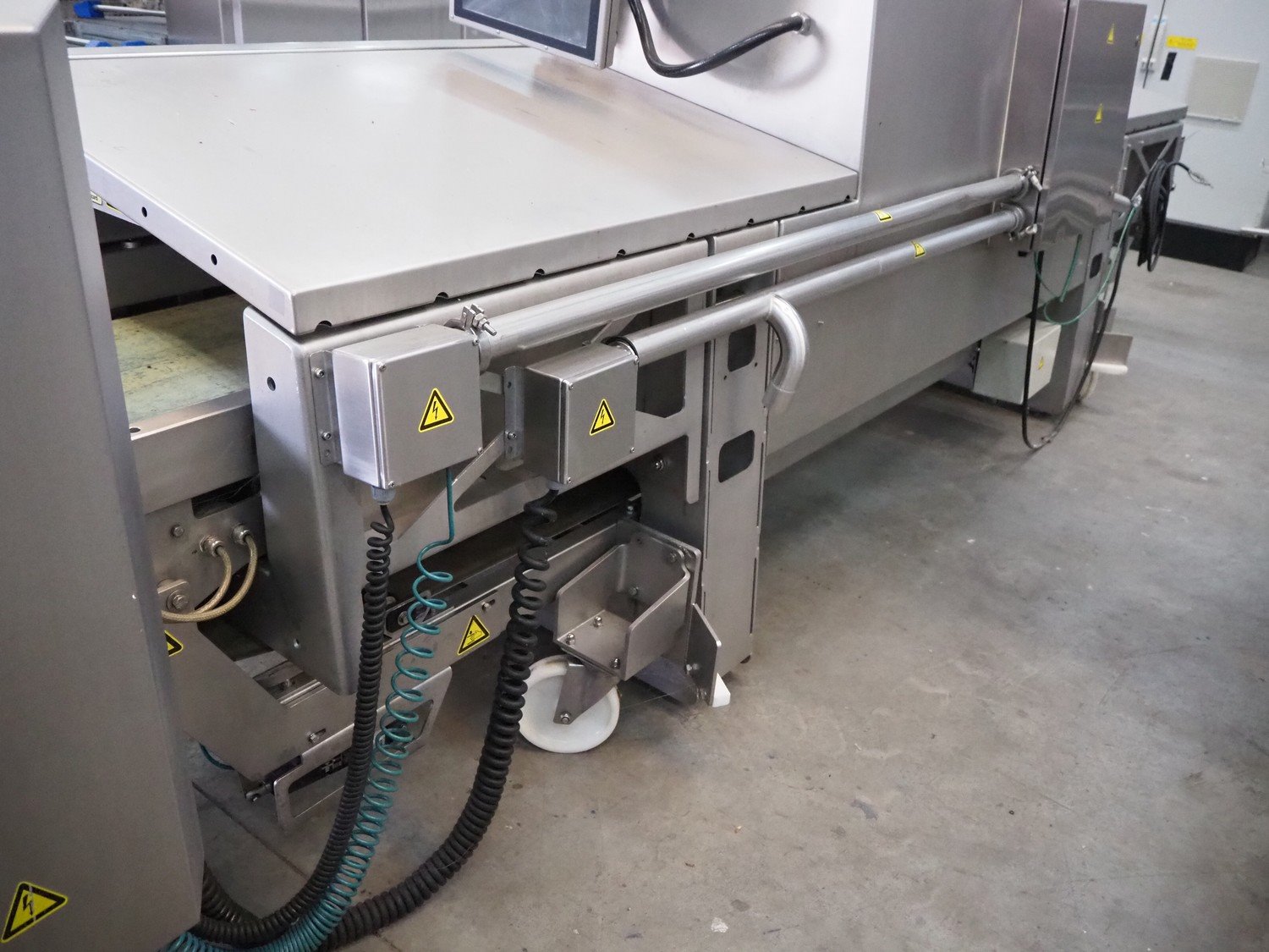 Foss mobile fat analysing machine, model: MeatMaster Compact, type: 88010, serial number: 520015913, 185-210/210-240/370-420/420-480 V, 3 Ph, 50/60 Hz, 8/4 A, plastic belt, belt width: 650 mm, total dimensions: 5400 mm x 1250 mm x 2620 mm.