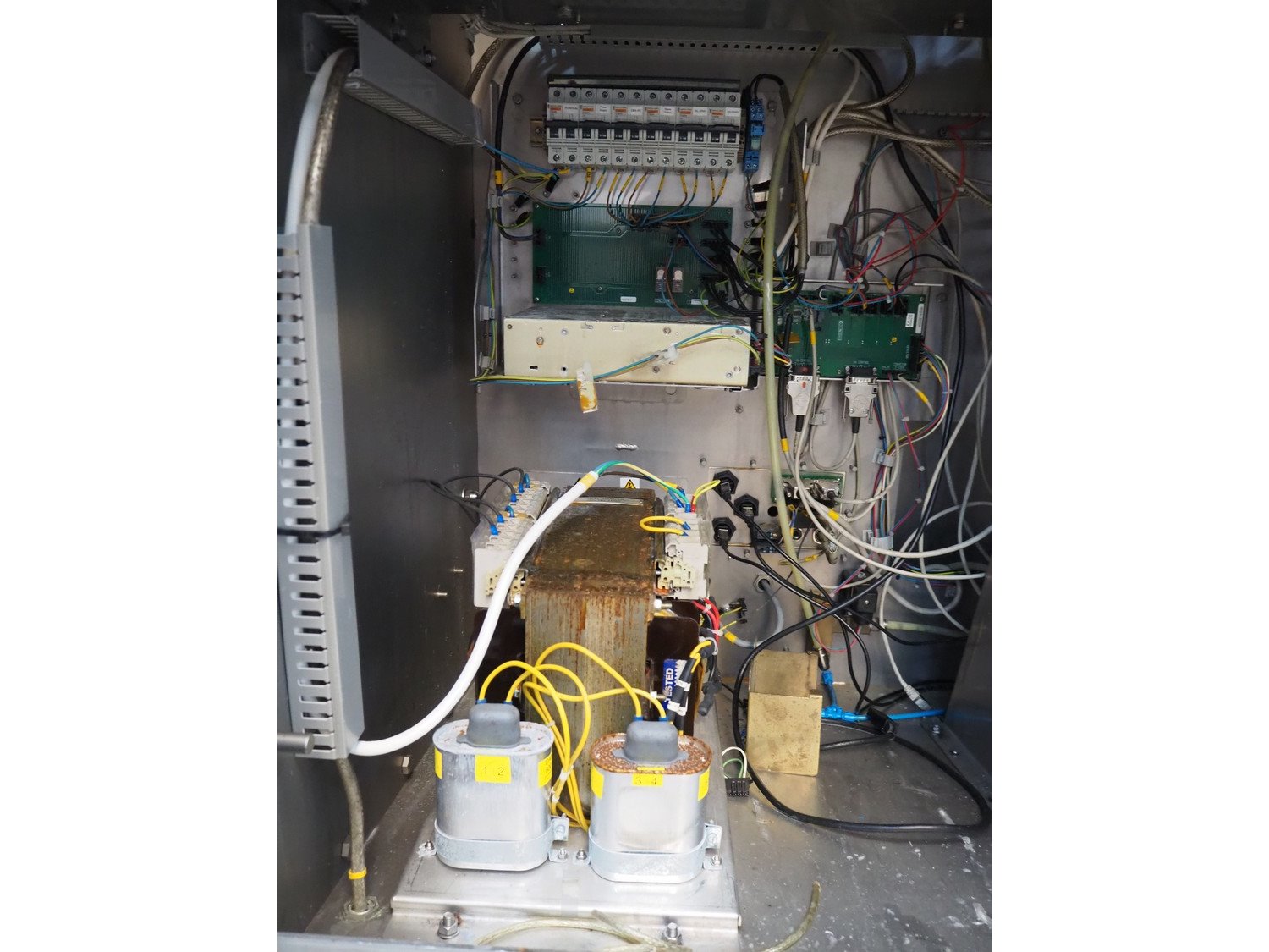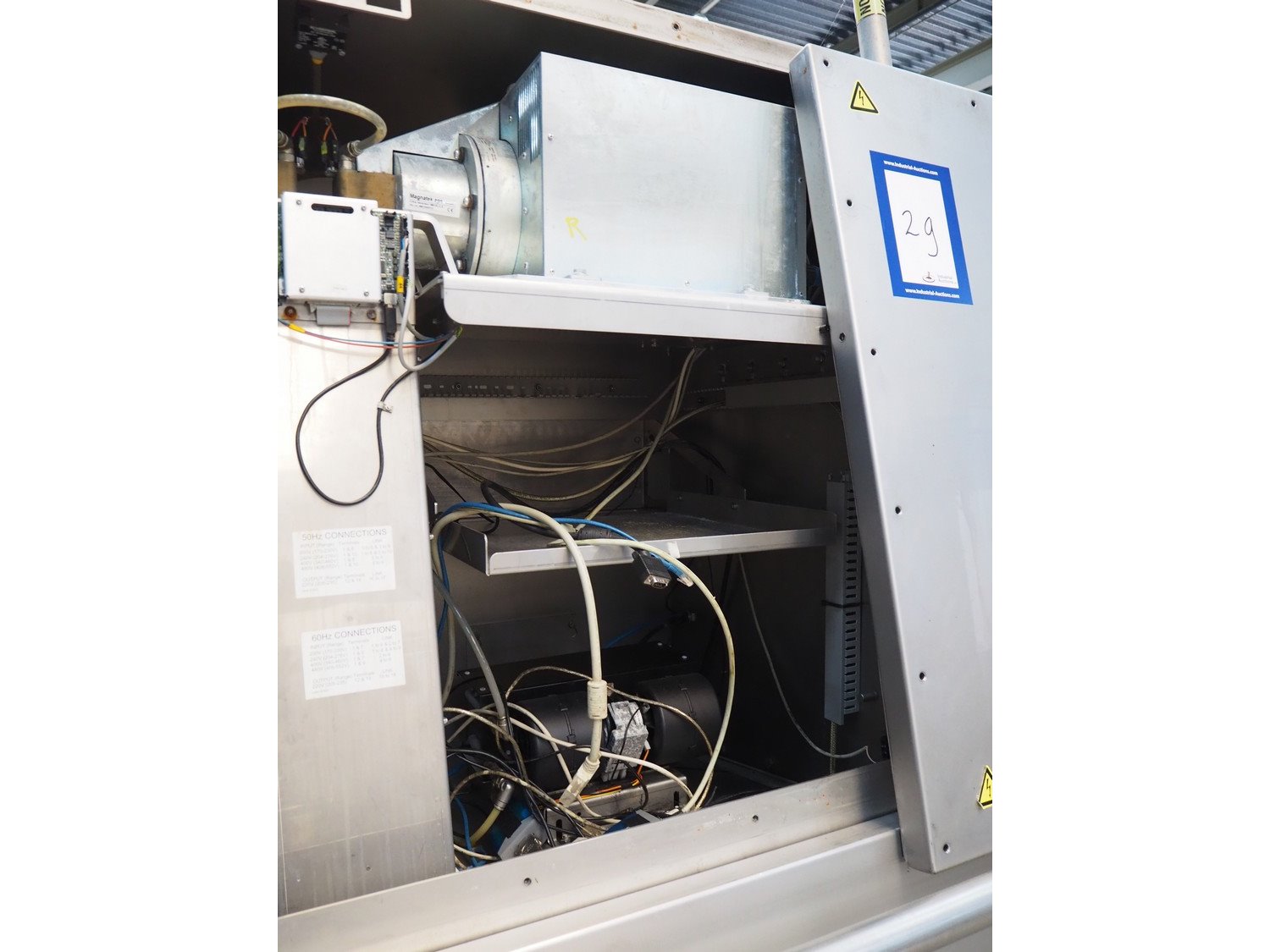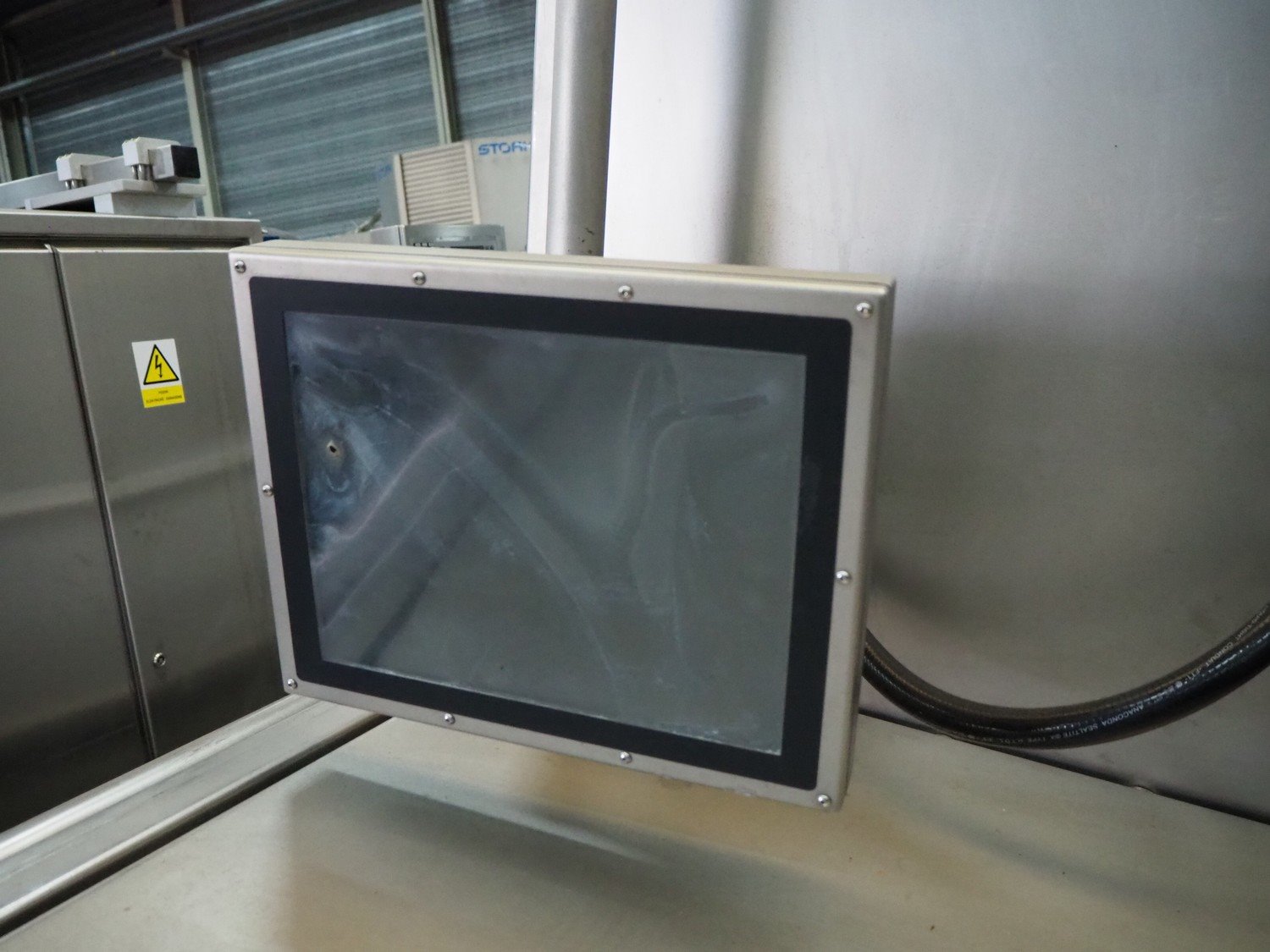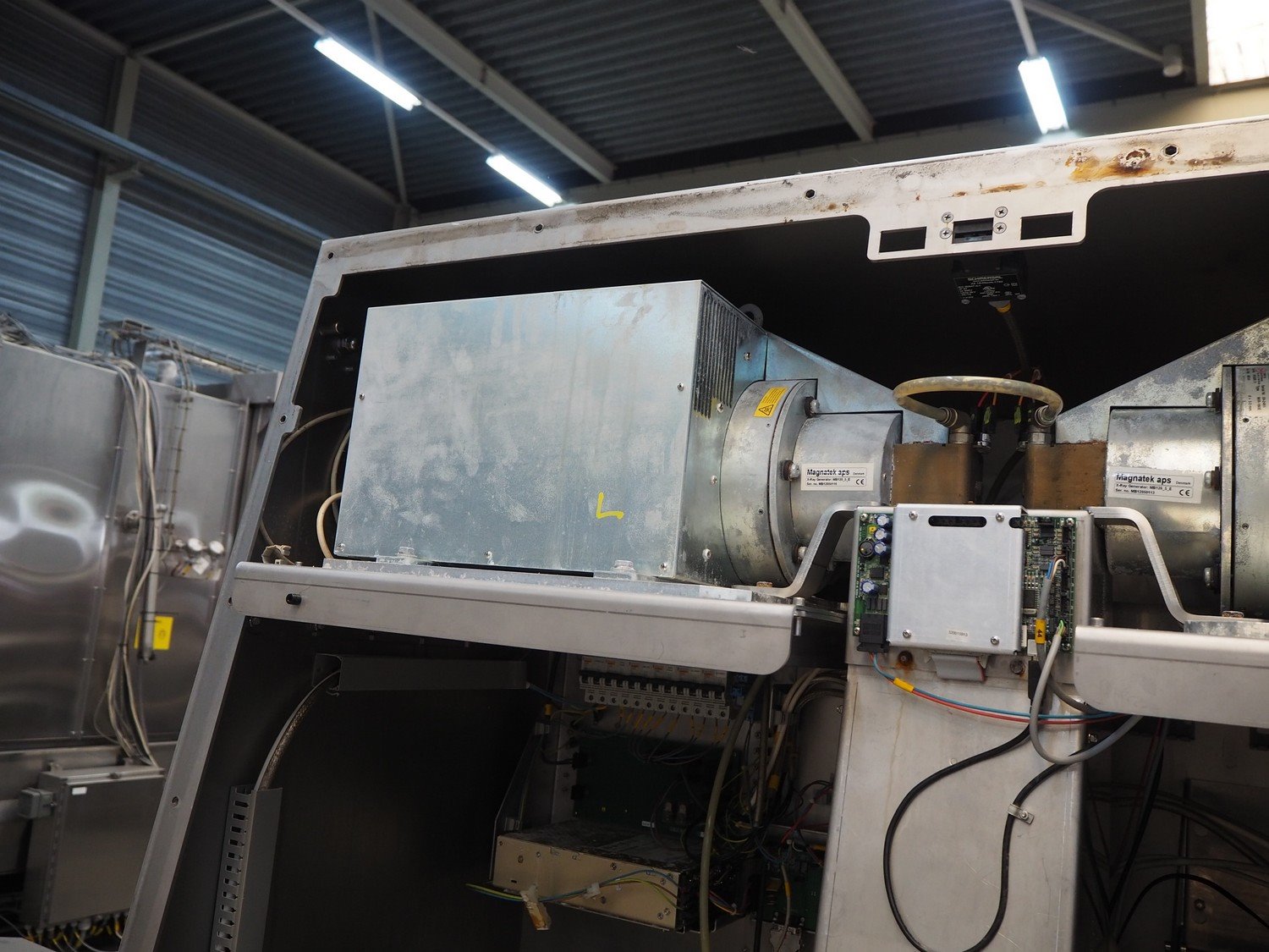Foss mobile fat analysing machine, model: MeatMaster Compact, type: 88010, serial number: 520015913, 185-210/210-240/370-420/420-480 V, 3 Ph, 50/60 Hz, 8/4 A, plastic belt, belt width: 650 mm, total dimensions: 5400 mm x 1250 mm x 2620 mm.