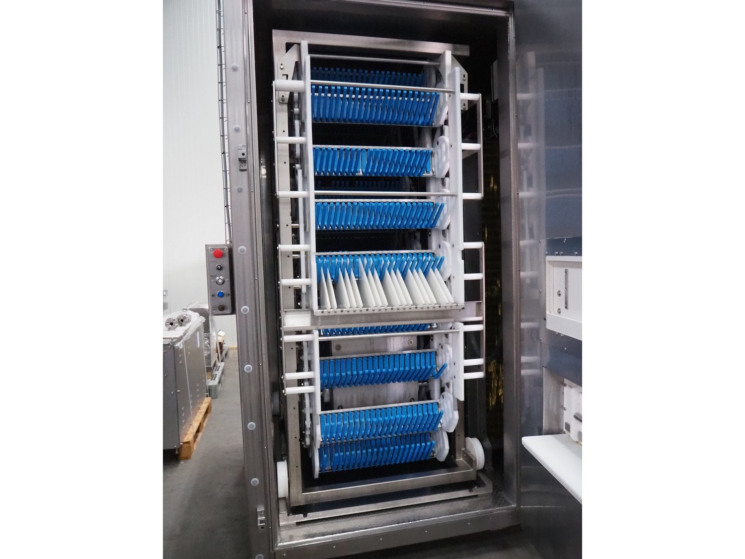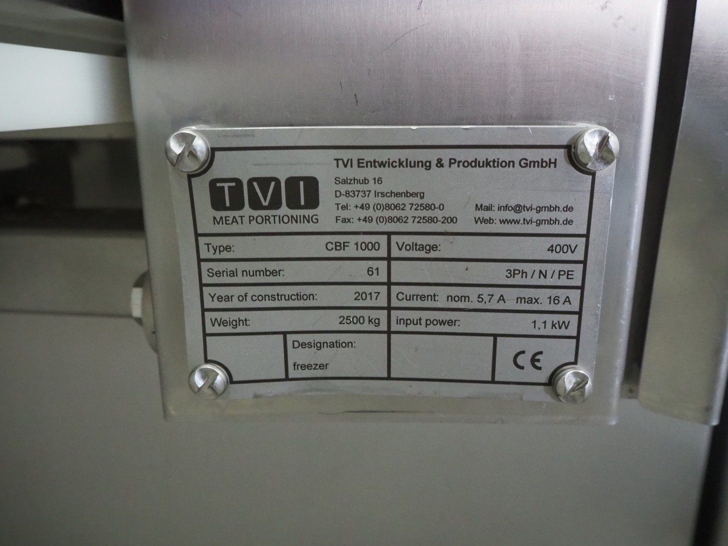 TVI Entwicklung & Produktion GmbH blast freezer, type: CBF 1000, serial number: 61, year of construction: 2017, 400 V, 3 Ph, maximum: 16 A, input power: 1.1 kW, weight: 2500 kg, width baskets: 700 mm, cycle time: 6 - 20 minutes, total dimensions: 2100 mm x 2550 mm x 2980 mm.
