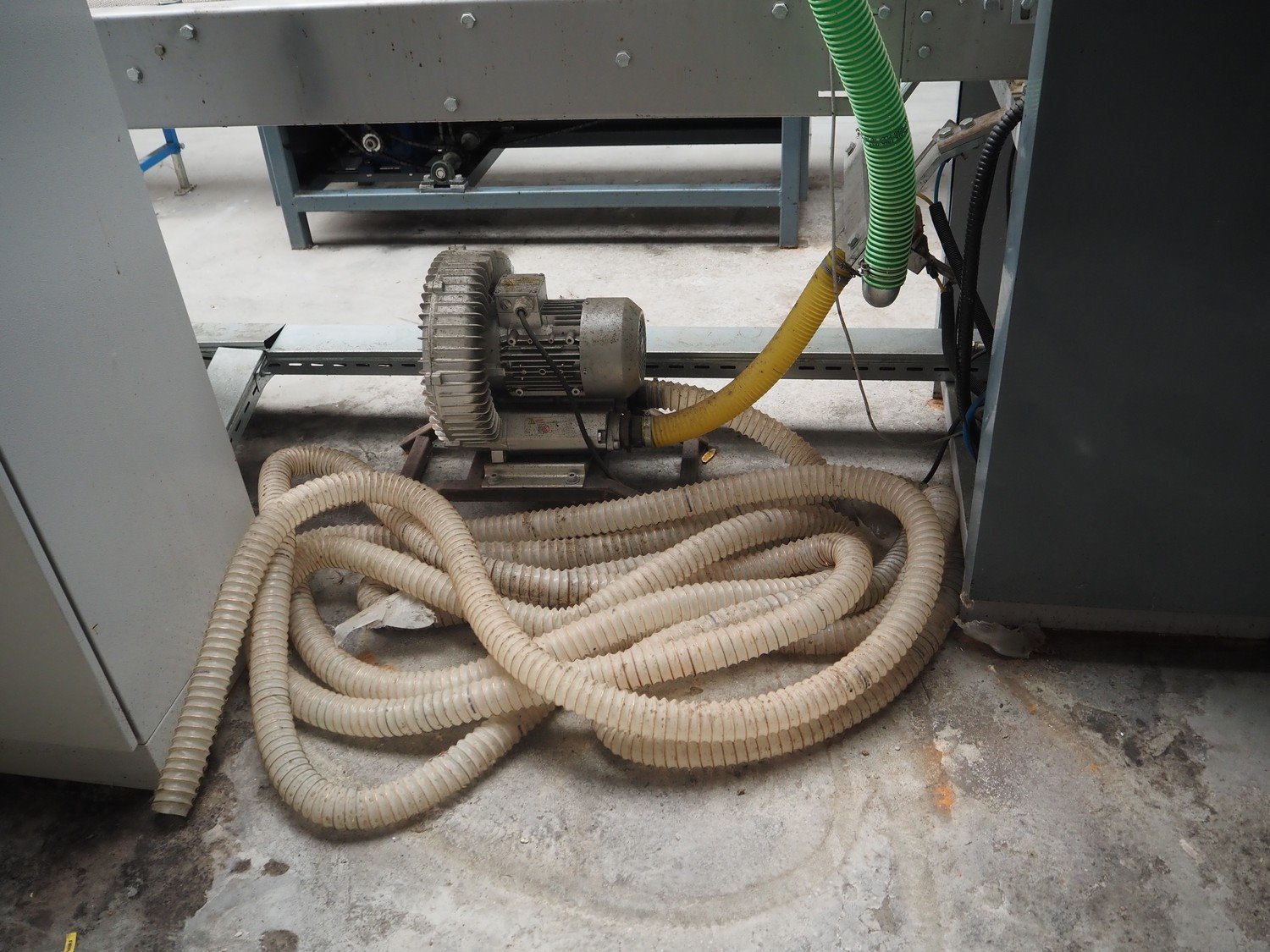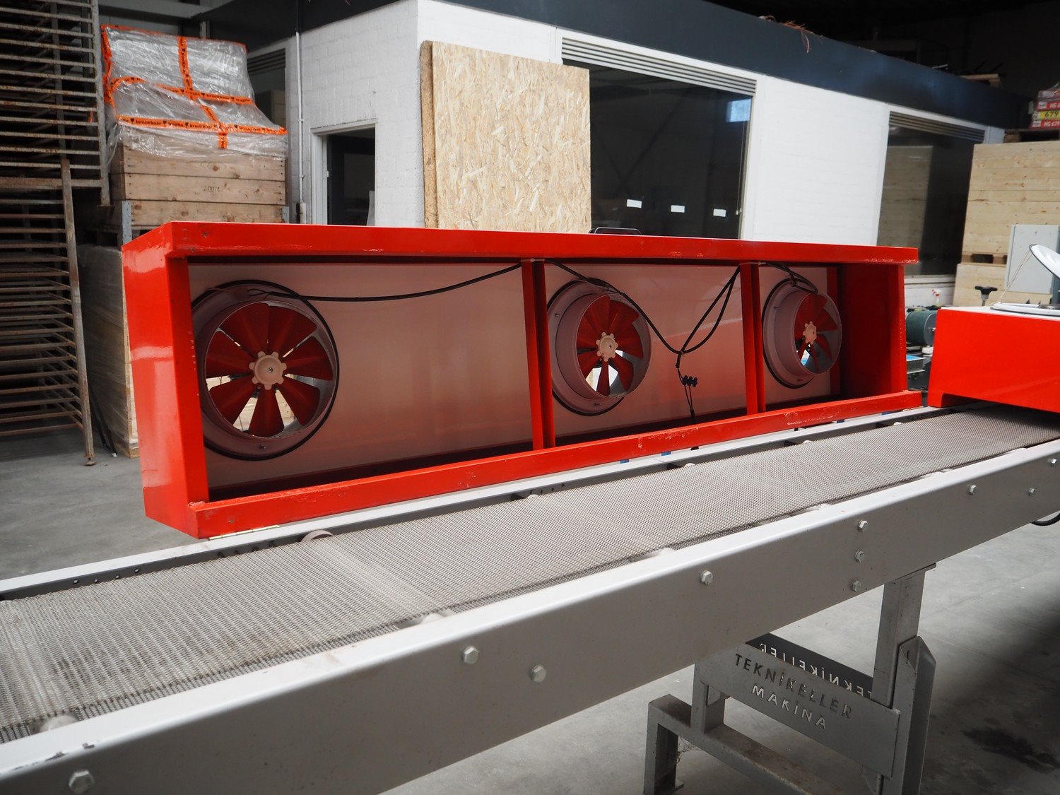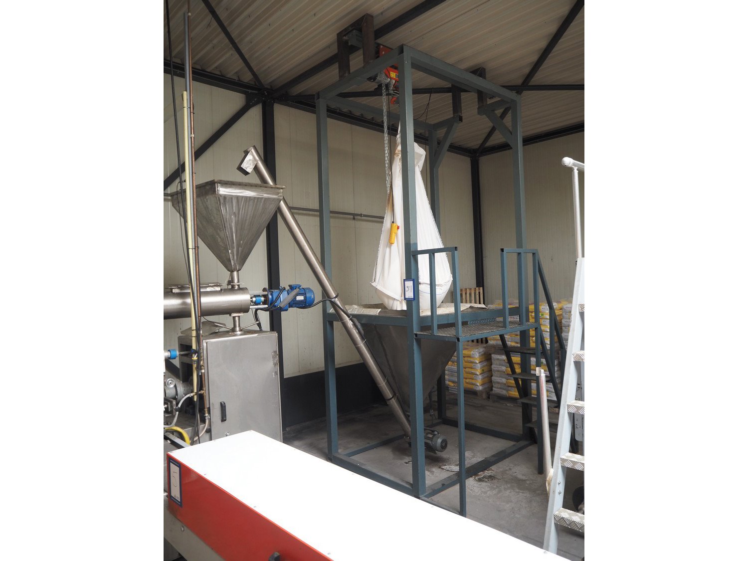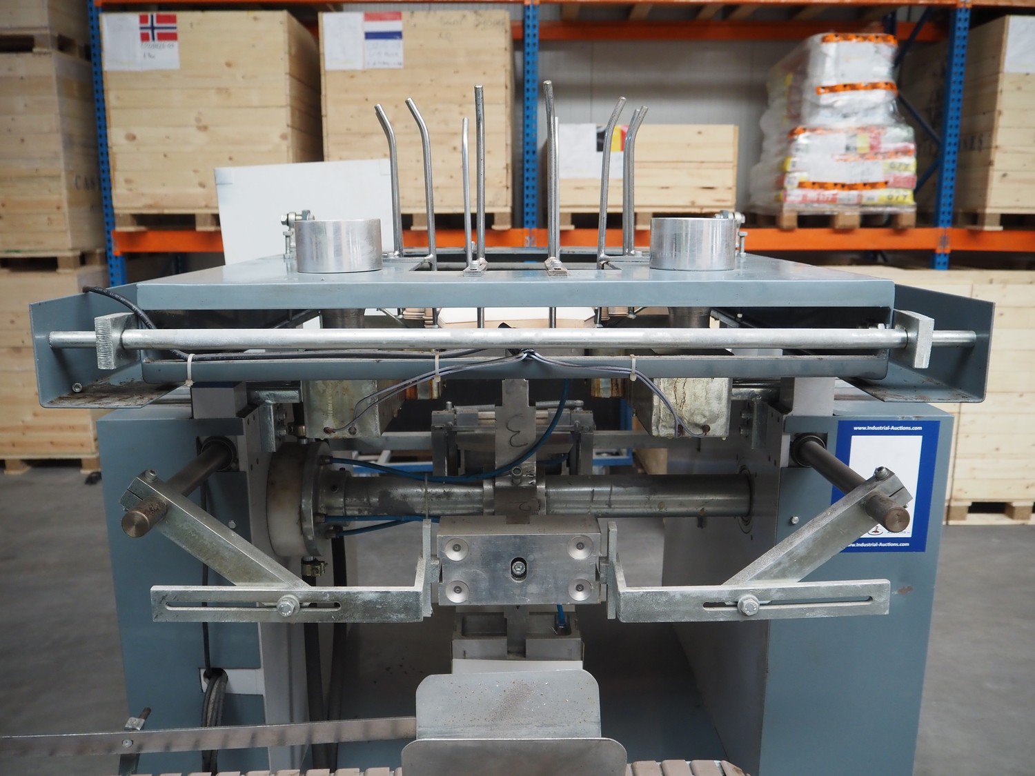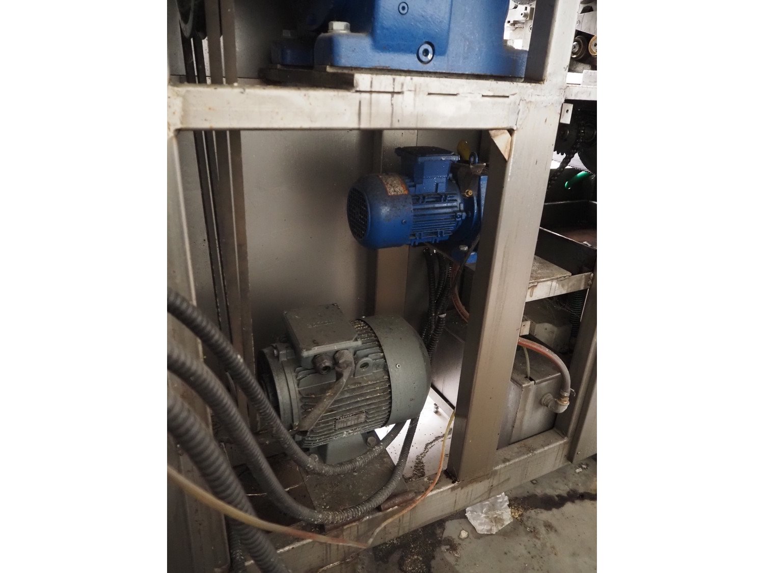 Complete fully automatic sugar cubes production and packaging line, consisting of: Big bag infeed bunker, platform height: 1550 mm, with s/s elevating screw, elevating height: 3000 mm, with Electric rope hoist, type: HGS-B1200, 230 V, 50 Hz, capacity: 1200/600 kg, lifting height: 10/20 m, total dimensions: 3100 mm x 2020 mm x 4750 mm; Teknikeller Makina forming machine for sugar cubes, type: T.T.O.R. 125, 380 V, 3 Ph, 50 Hz, capacity: 12.500 kg/24 hours, dimensions forms: (20x) 10 mm x 15 mm, dimensions forming machine: 2000 mm x 900 mm x 2850 mm, with drying and cooling belt, s/s mesh belt, belt width: 295 mm, length drying area: 18000 mm, length cooling area: 4000 mm, including de-stacker, size: 100 mm x 200 mm, total dimensions: 33500 mm x 2000 mm x 2850 mm; Box forming machine, box size: 210 mm x 100 mm, dimensions: 1500 mm x 1400 mm x 1630 mm; 90° curve conveyor, steel frame, plastic belt, belt width: 110 mm, total dimensions: 2650 mm x 1200 mm x 900 mm 90° curve conveyor, steel frame, plastic belt, belt width: 120 mm, total dimensions: 1250 mm x 1100 mm x 1850 mm; Box closing machine, belt width: 100 mm, distance between dividers: 330 mm, with glue unit, total dimensions: 2360 mm x 700 mm x 1600 mm; Roller conveyor, steel frame, plastic rollers, roller width: 300 mm, total dimensions: 2000 mm x 340 mm x 800 mm.