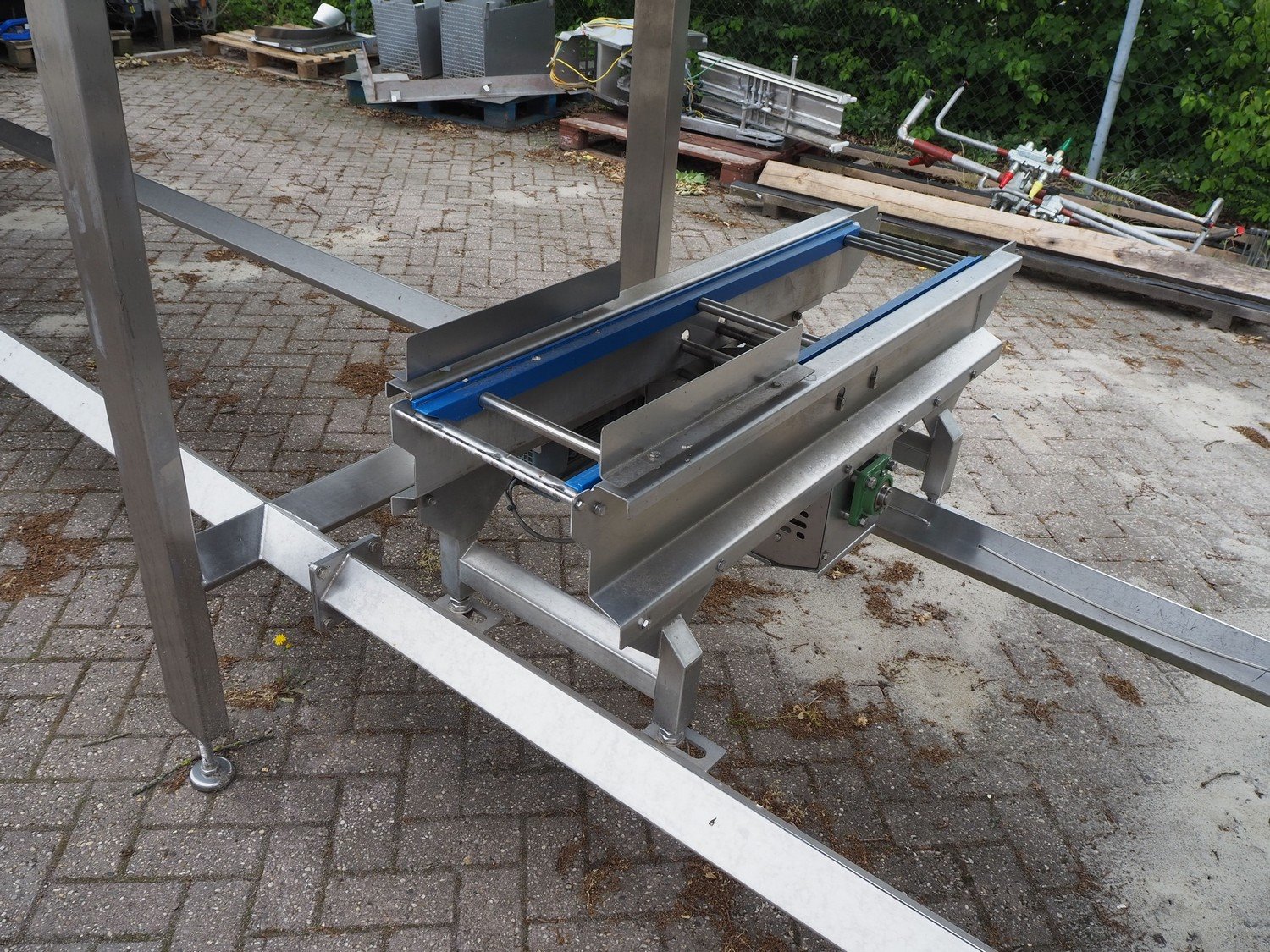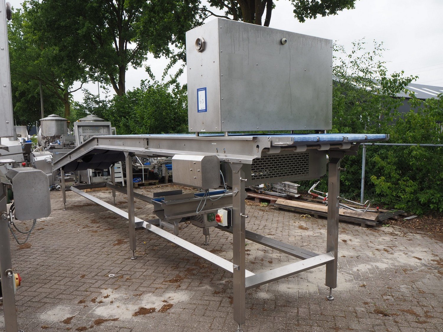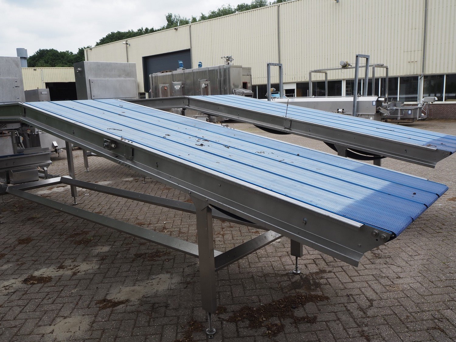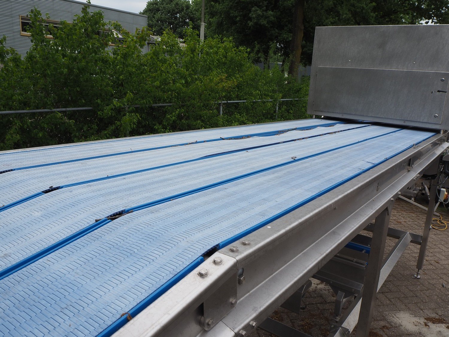 WMH 4 lane elevating belt, s/s frame, plastic belts, belt width: (4x) 255 mm, elevating height: 1600 mm, total dimensions: 5700 mm x 1500 mm x 2450 mm.
