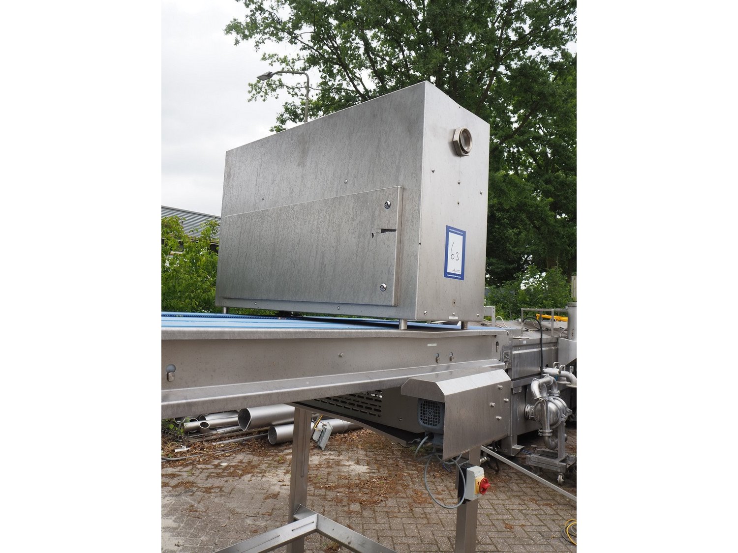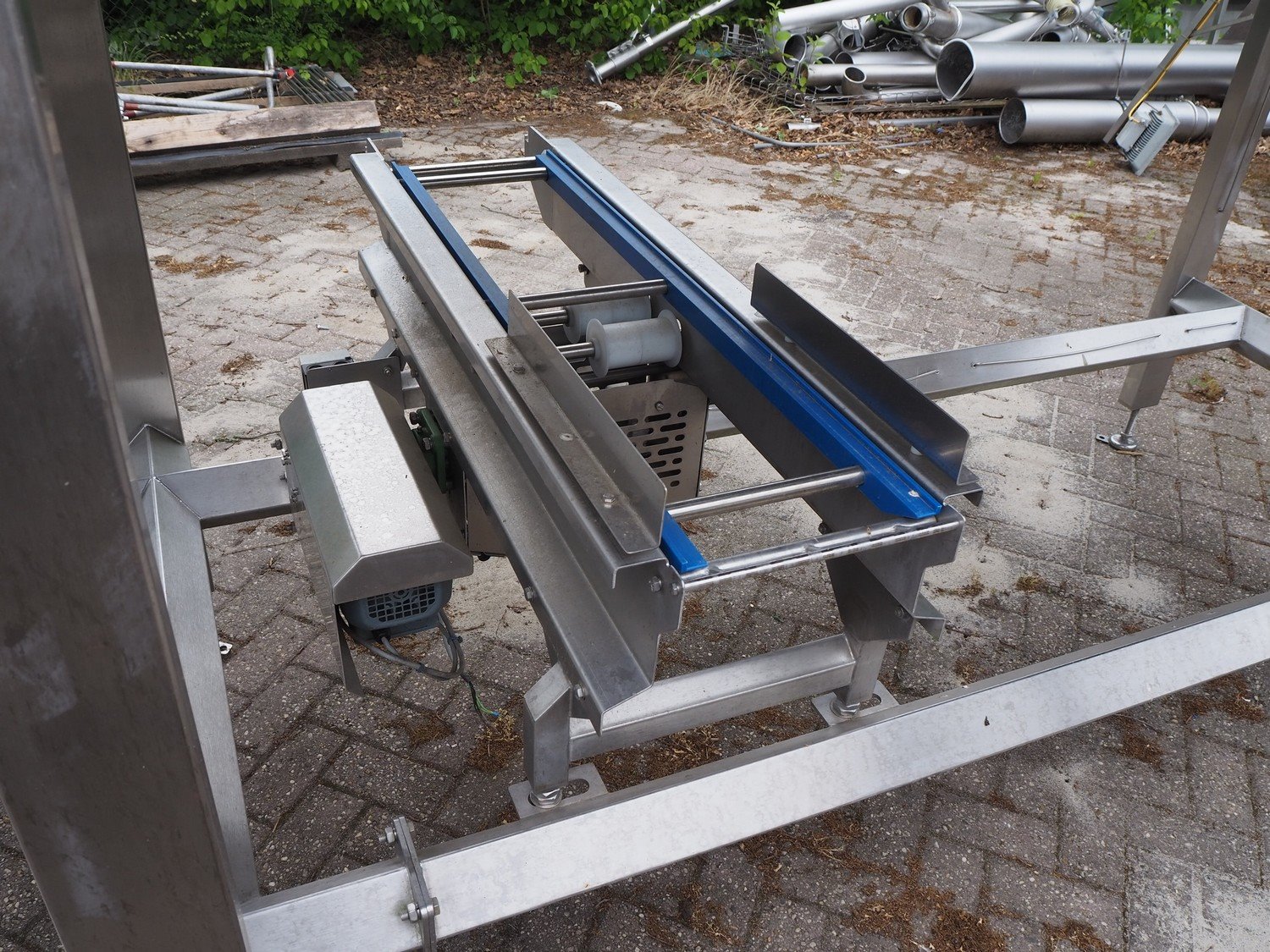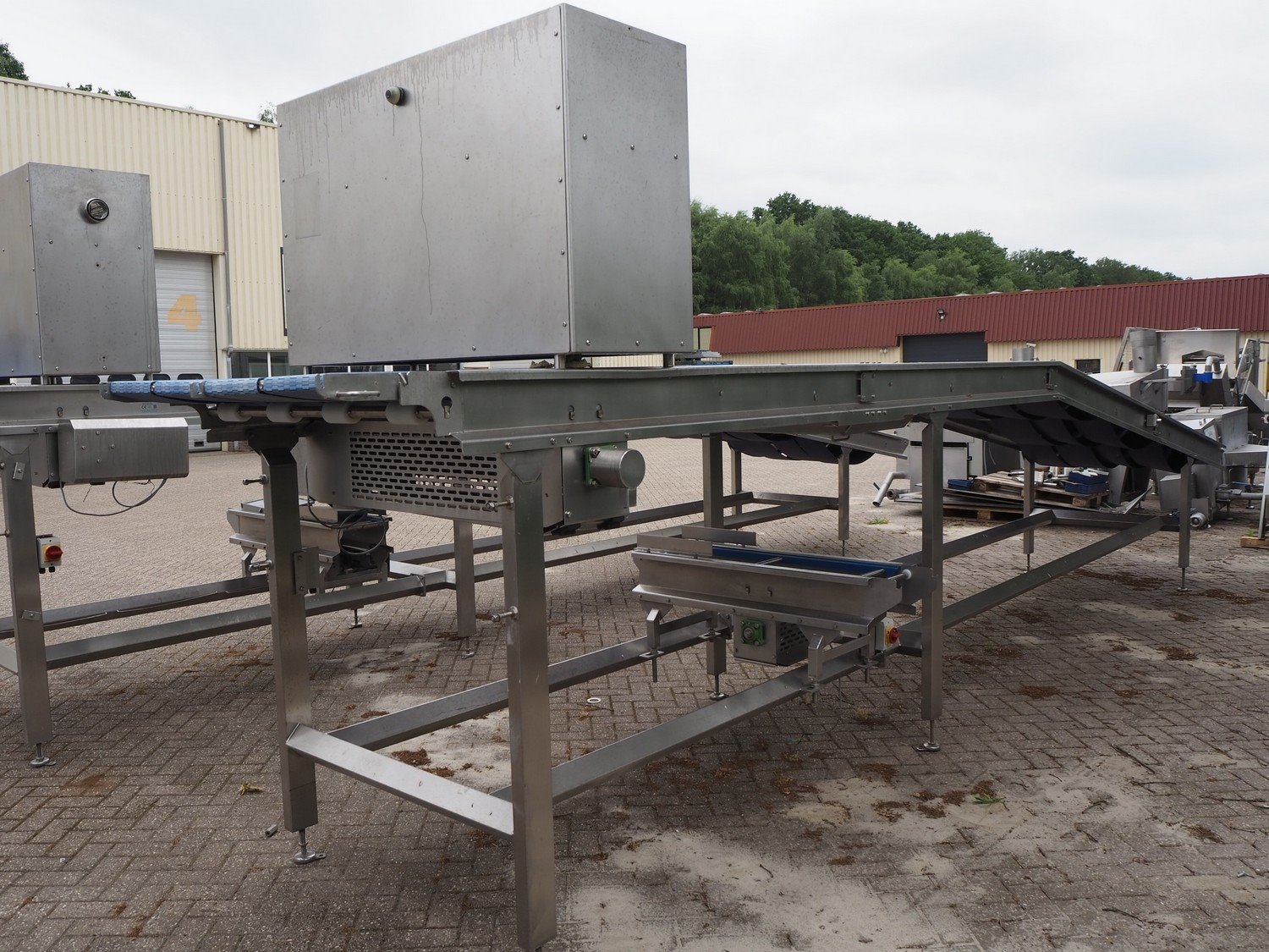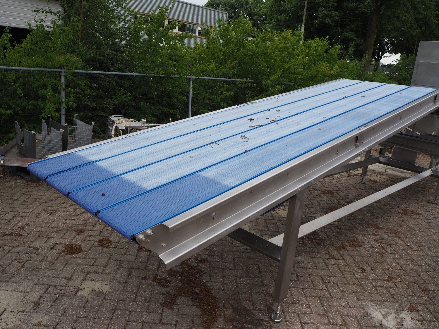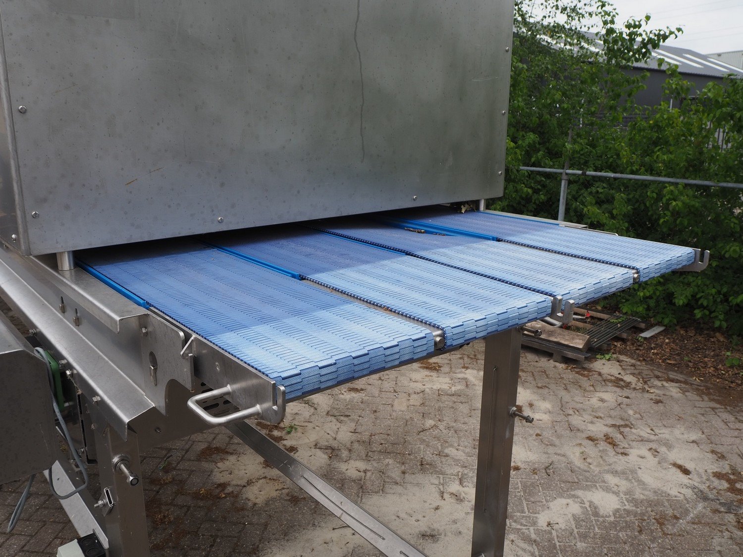 WMH 4 lane elevating belt, s/s frame, plastic belts, belt width: (4x) 255 mm, elevating height: 1600 mm, total dimensions: 5700 mm x 1500 mm x 2450 mm.
