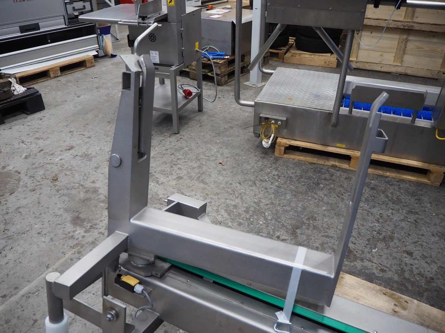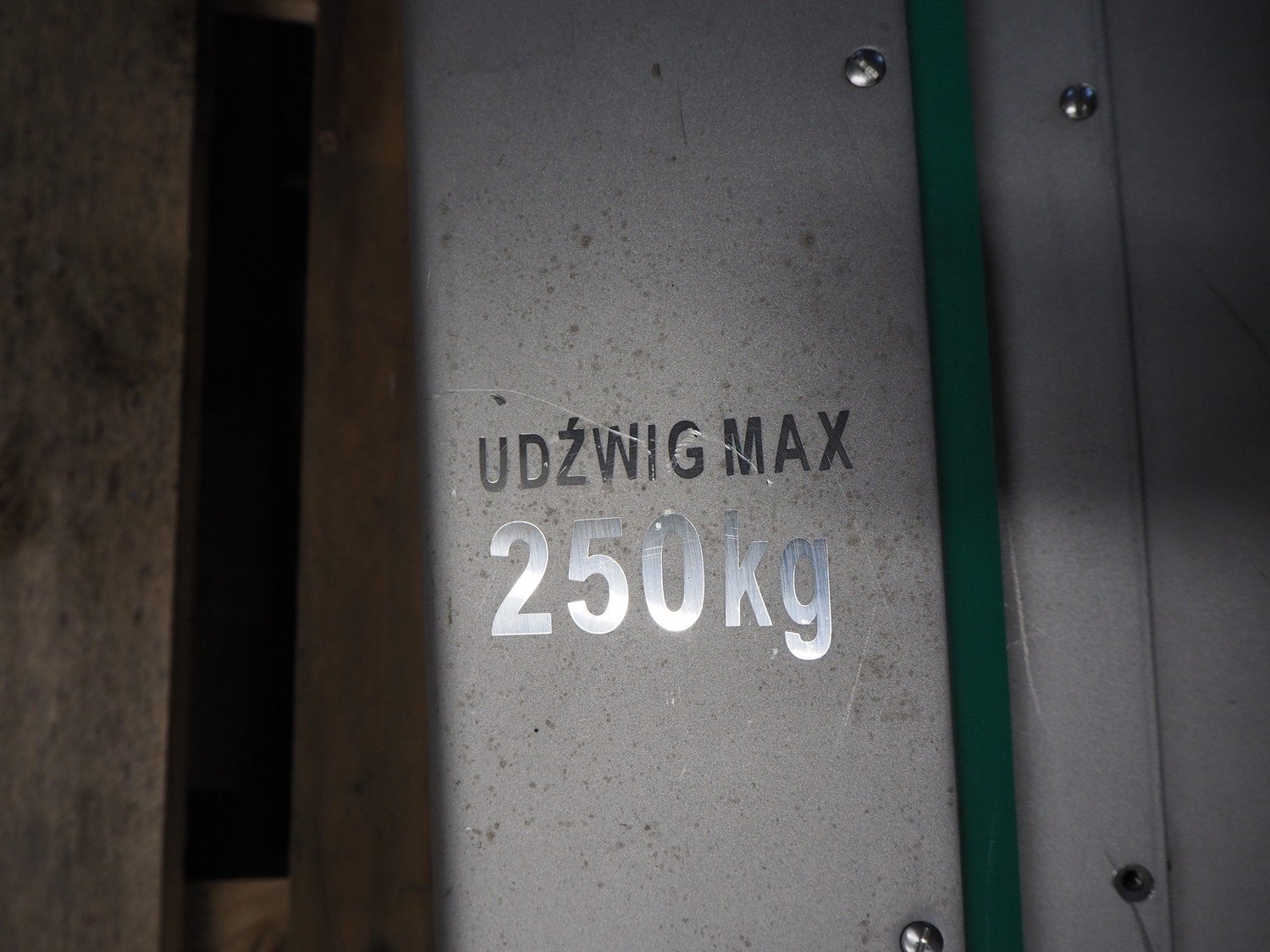 S/s lifter for 200 litres meat bins, lifting height: 1300 mm, maximum capacity: 250 kg, total dimensions: 1200 mm x 950 mm x 2100 mm.