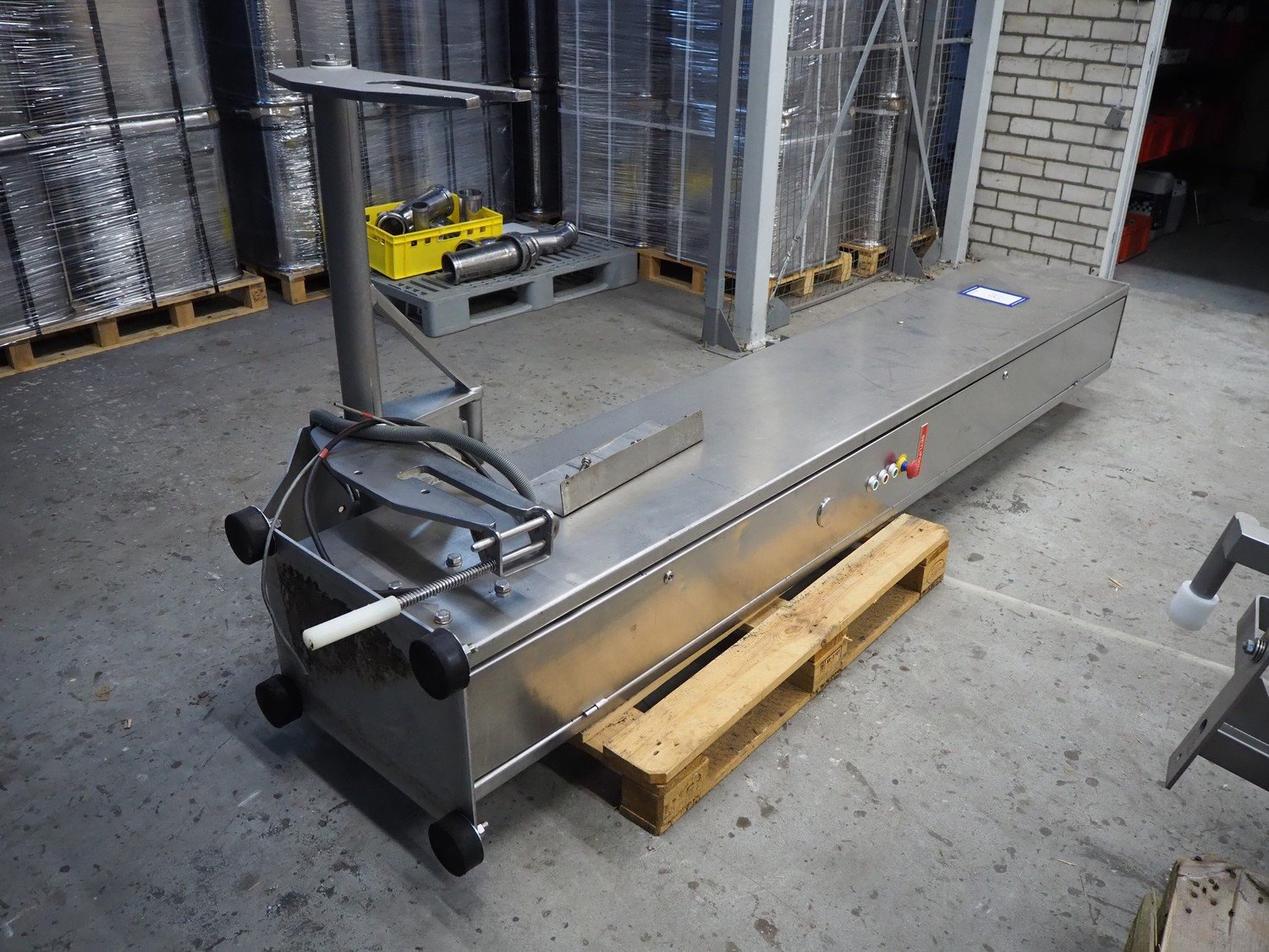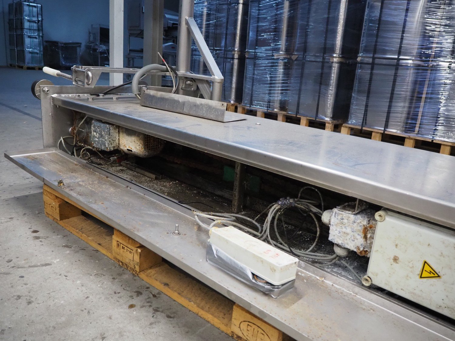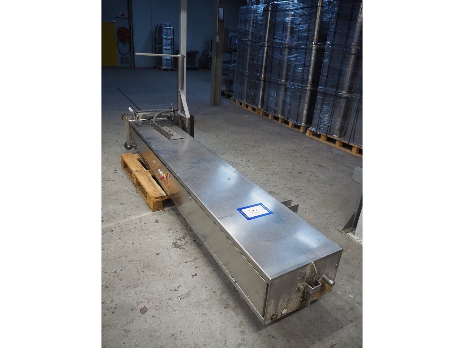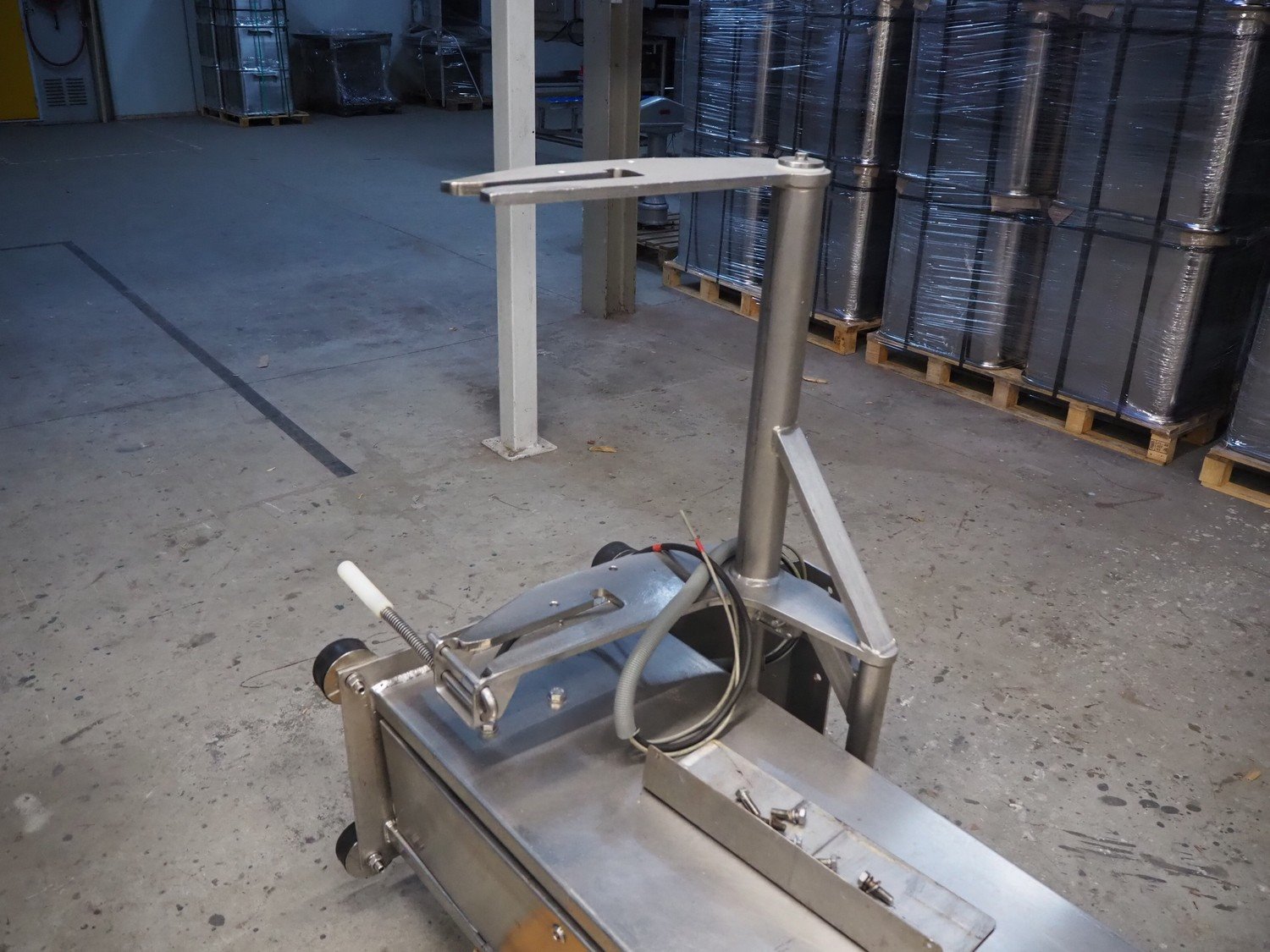 Seydelmann s/s lifter for meat bins, lifting height: 2200 mm, maximum capacity: 250 kg, total dimensions: 1200 mm x 900 mm x 3050 mm.