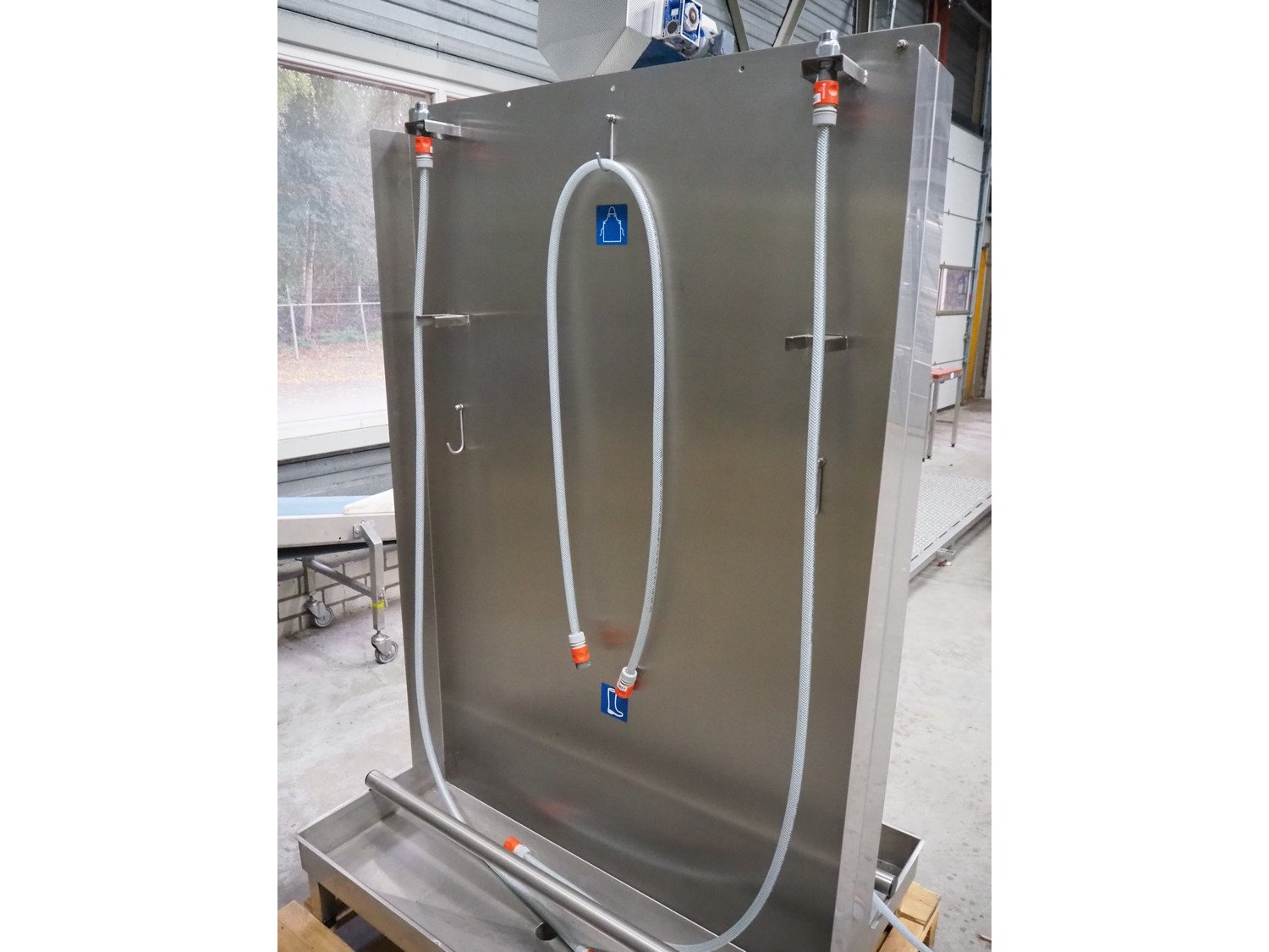 Kohlhoff Hygienetechnik GmbH & Co. KG double s/s aprons and boots washer, dimensions: 1120 mm x 840 mm x 1820 mm.