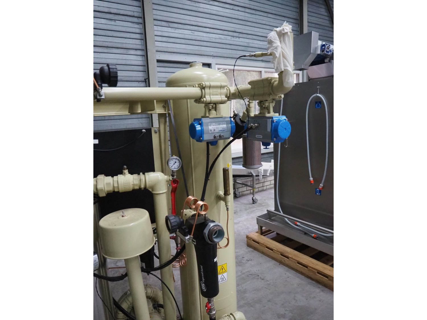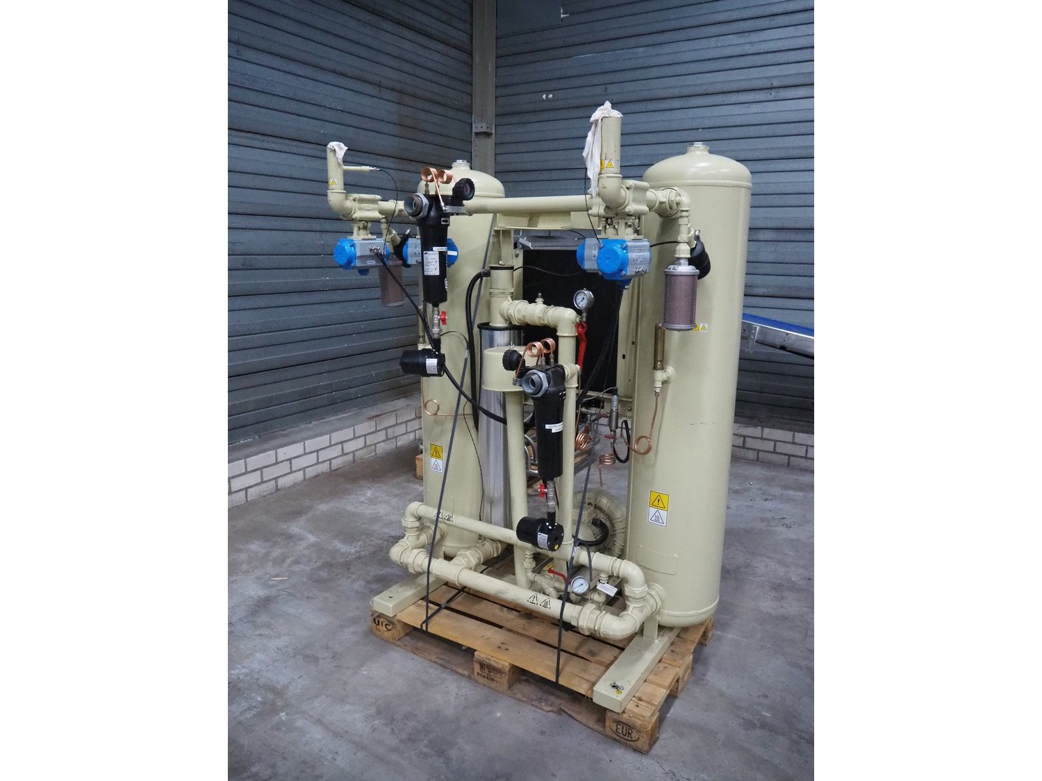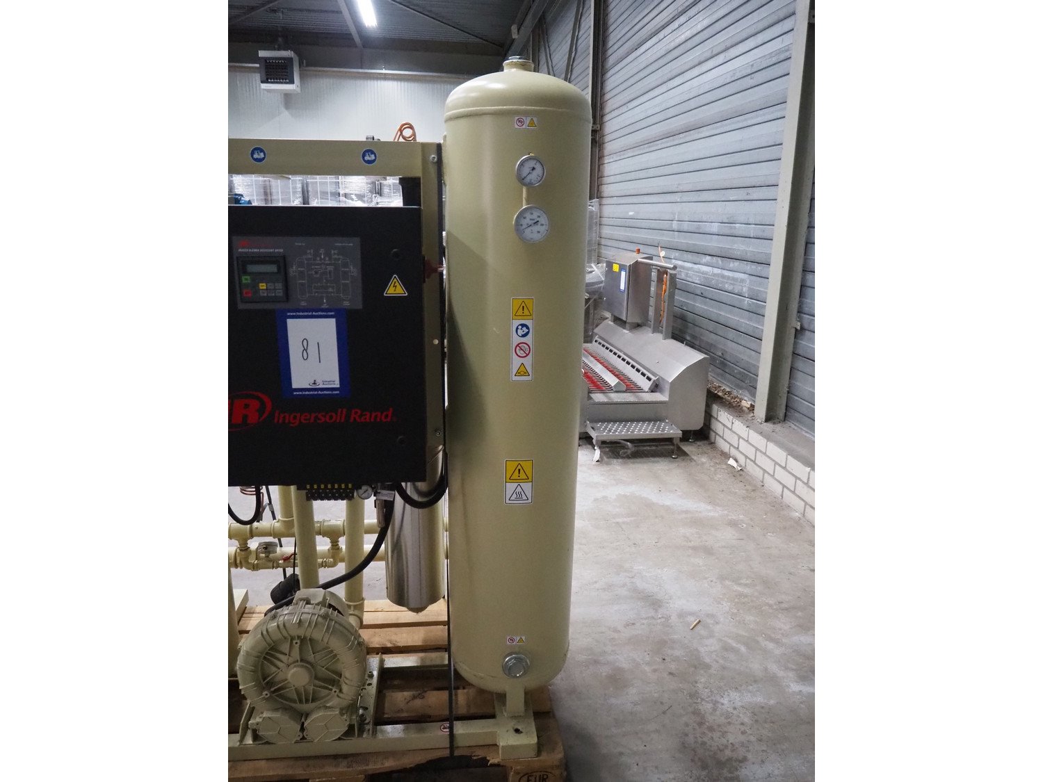 Ingersoll Rand heated blower desiccant dryer, model: D500IB, serial number: 096515, year of construction: 2015, 400 V, 3 Ph, 50 Hz, 14 A, PS: 12 bar, TS: +1/+250 °C, maximum flow: 500 m³/h, weight: 600 kg, dimensions: 1400 mm x 1100 mm x 1900 mm.