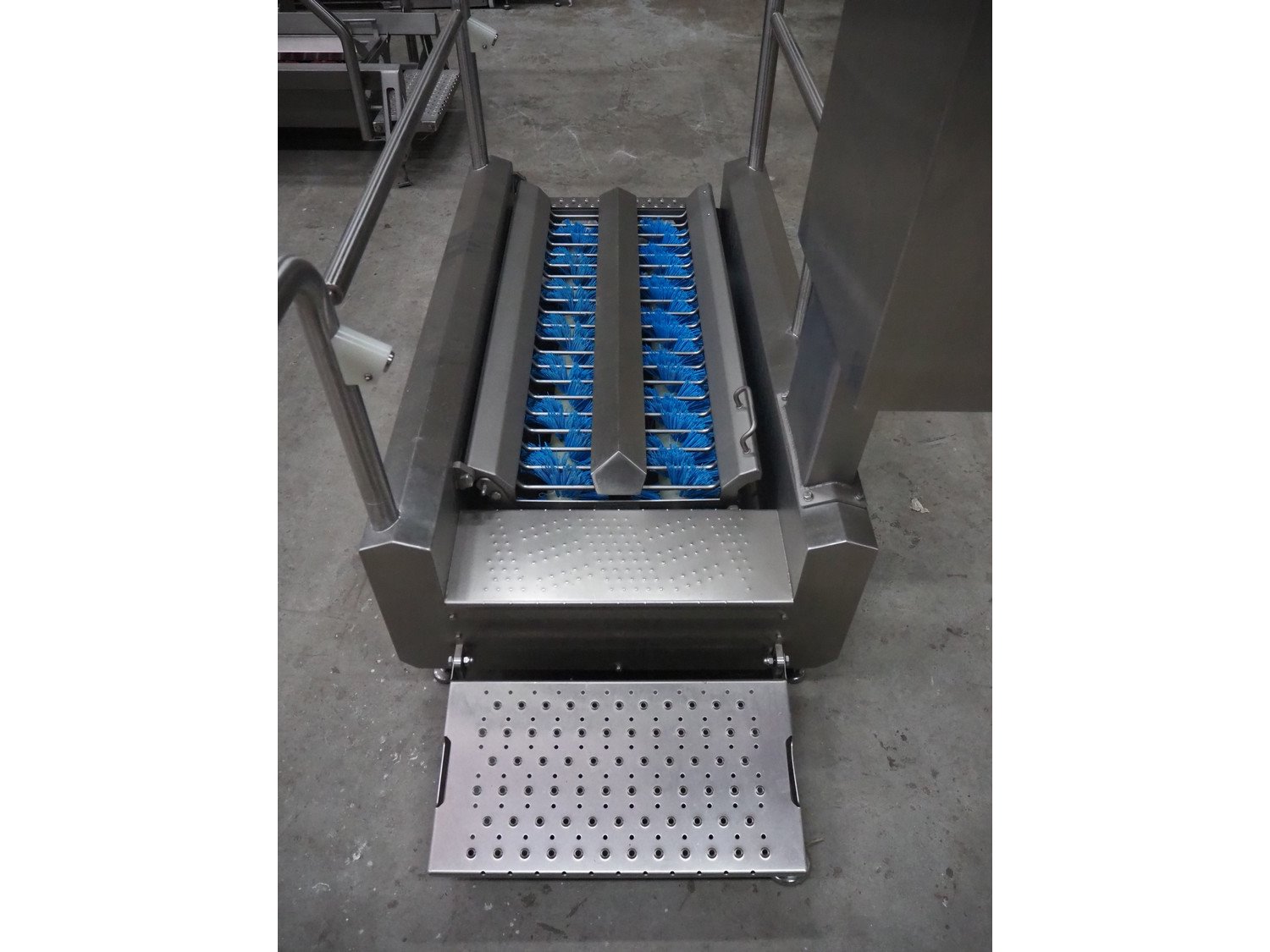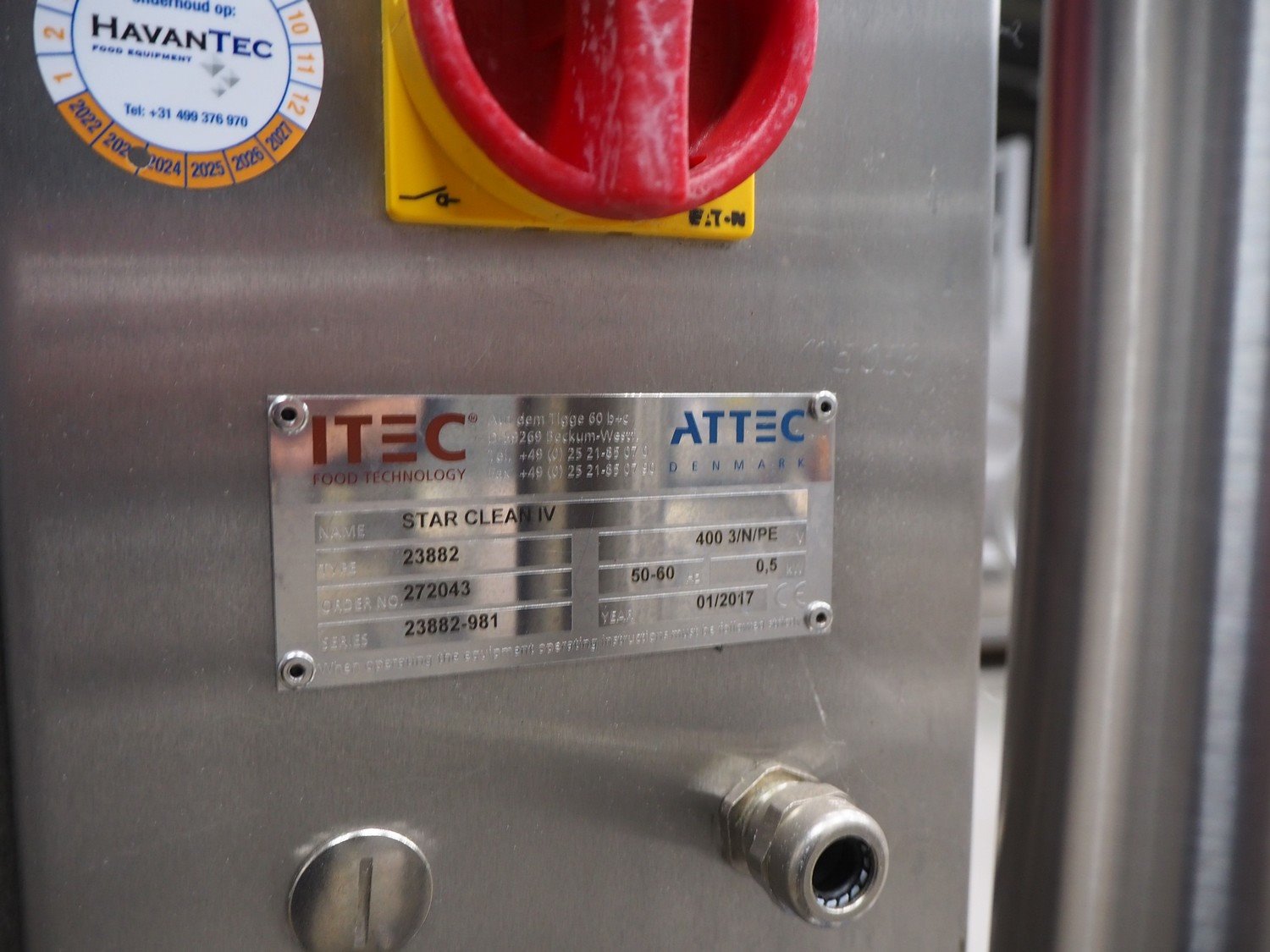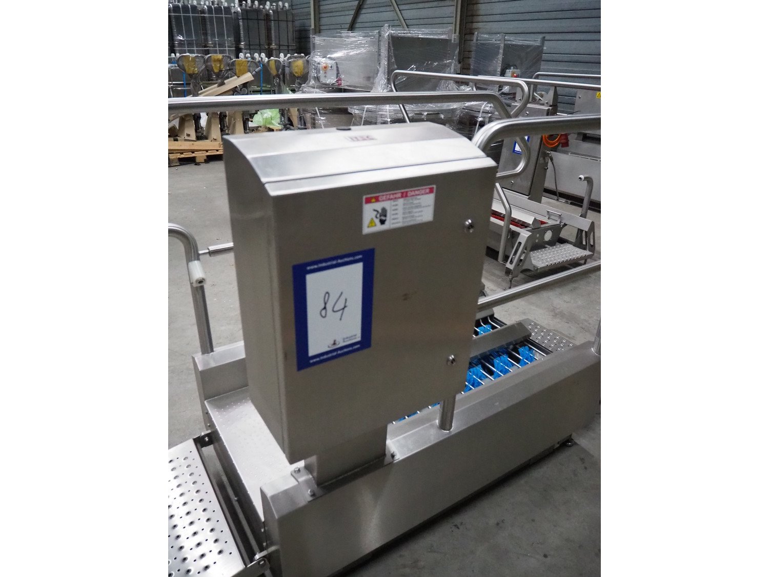 Itec Food Technology sole cleaner for dry cleaning, type: 23882, year of construction: 01-2017, 400 V, 3 Ph, 50-60 Hz, 0.5 kW, brush diameter: (2x) 150 mm, brush length: (2x) 1000 mm, total dimensions: 2100 mm x 800 mm x 1300 mm.