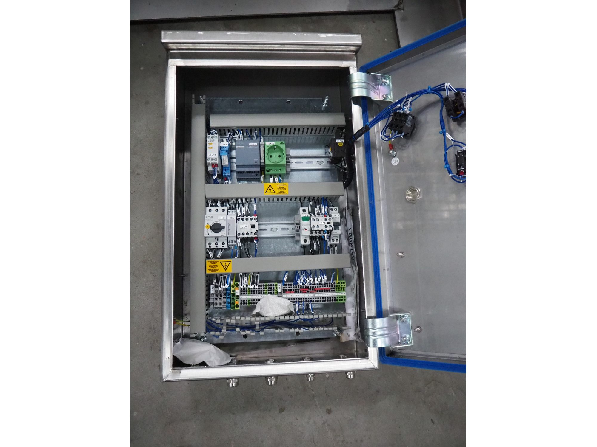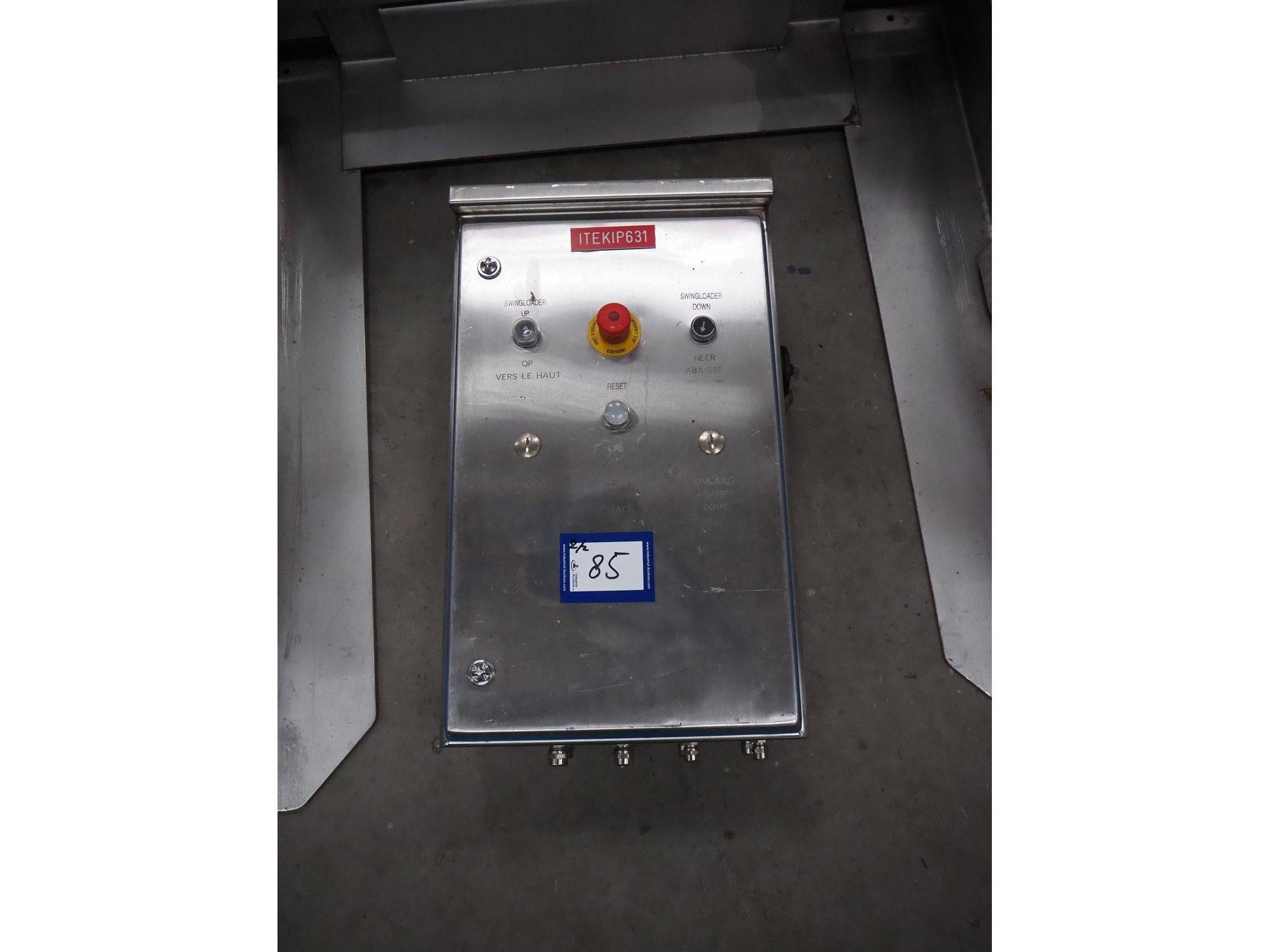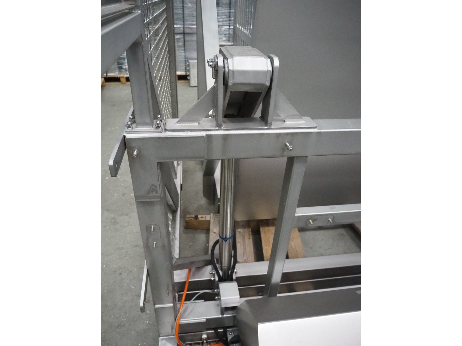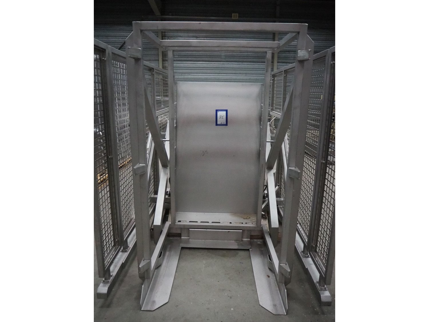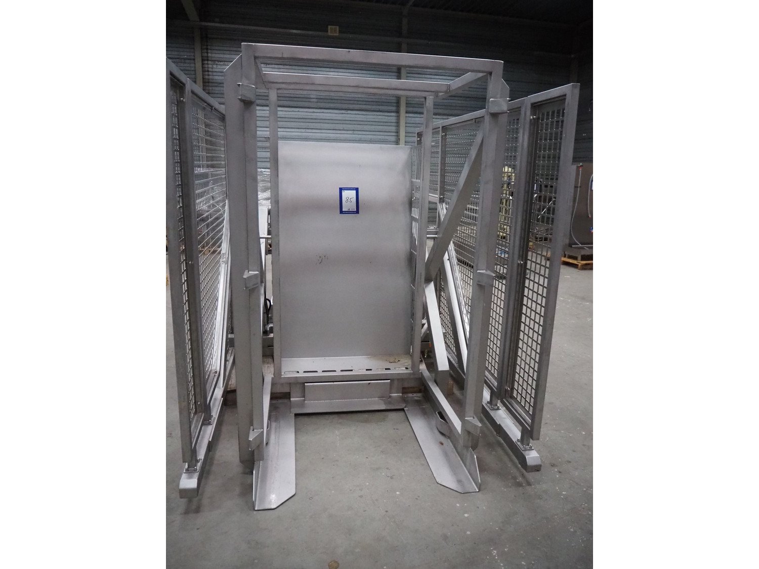 Itec Food Technology s/s tilting device for pallet boxes, type: 27200, series: 216, order number: 260216, year of construction: 10/2016, 400 V, 3 Ph, 50-60 Hz, 1.5 kW, maximum dimensions pallet boxes: 1050 mm x 1000 mm, total dimensions: 1800 mm x 2800 mm x 2200 mm.
