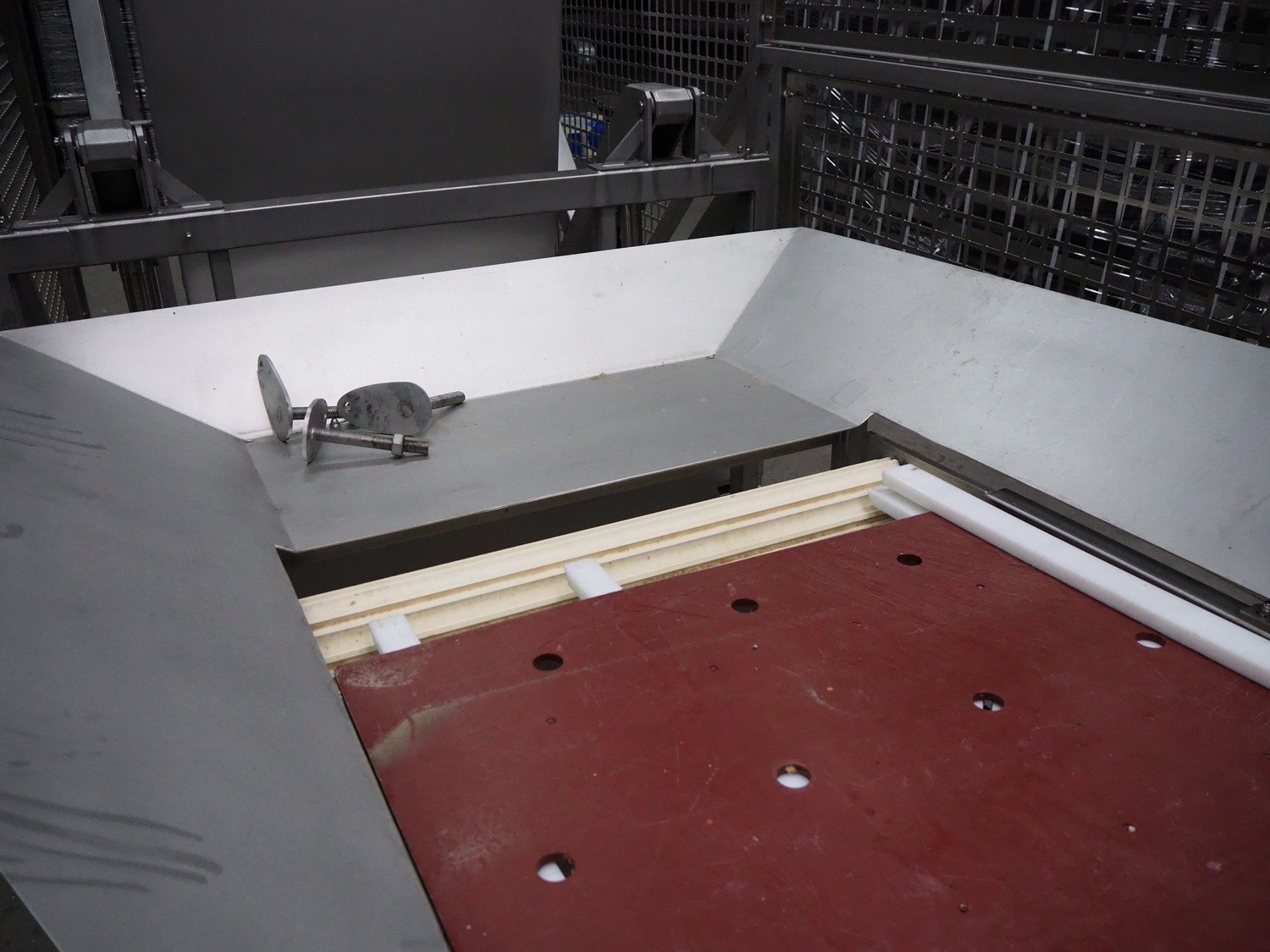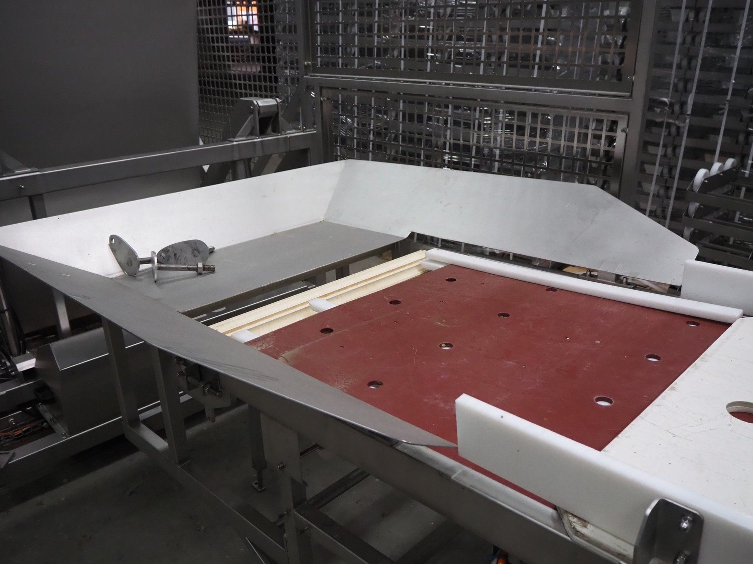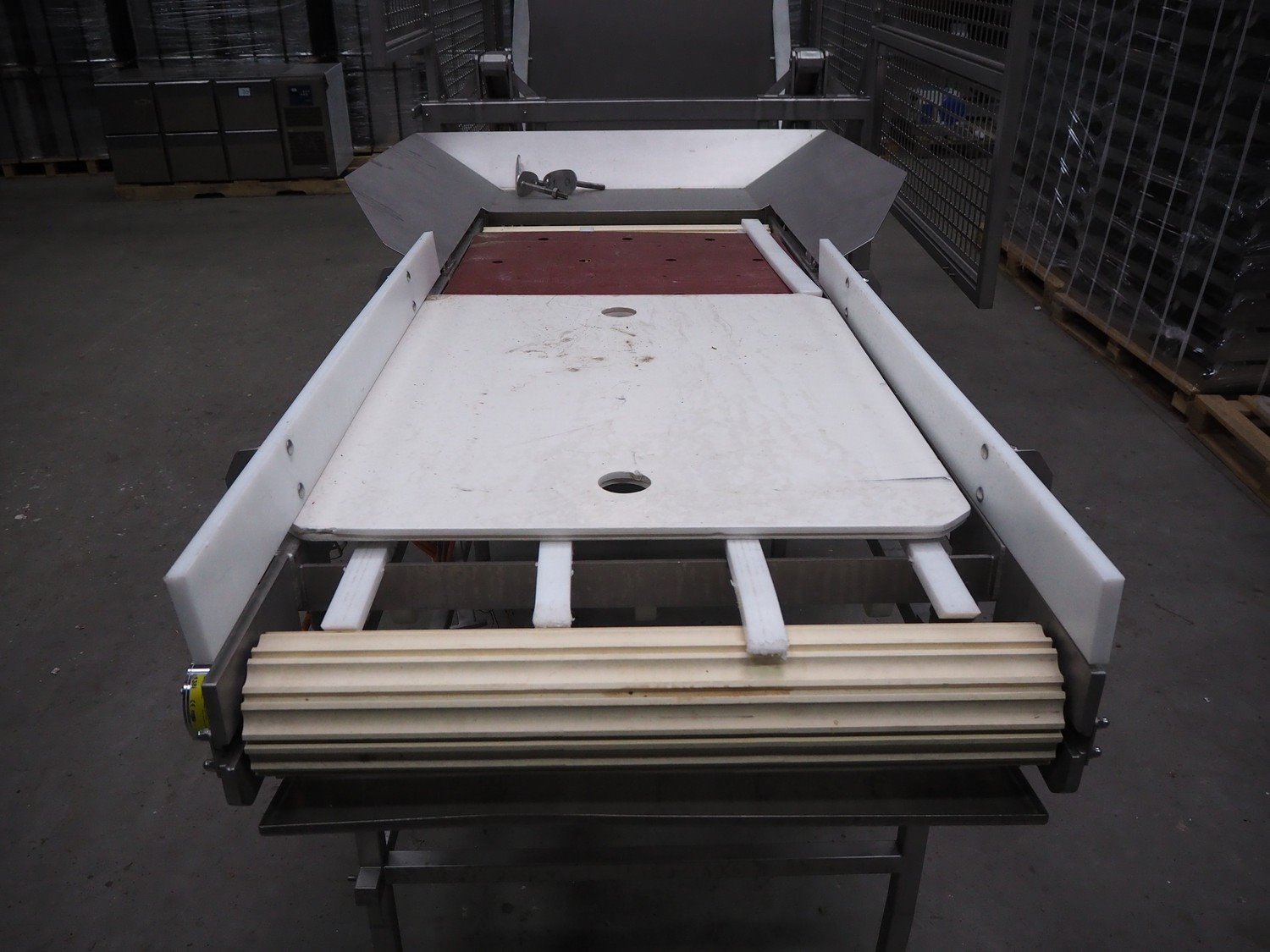 Itec Food Technology outfeed transport conveyor, dimensions: 3000 mm x 1430 mm x 1250 mm. Belt is missing.