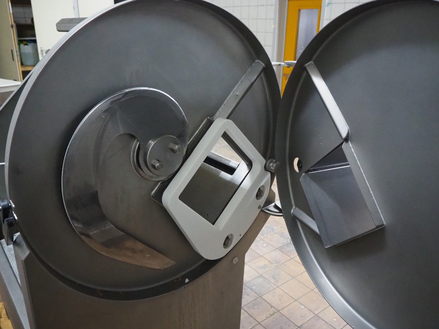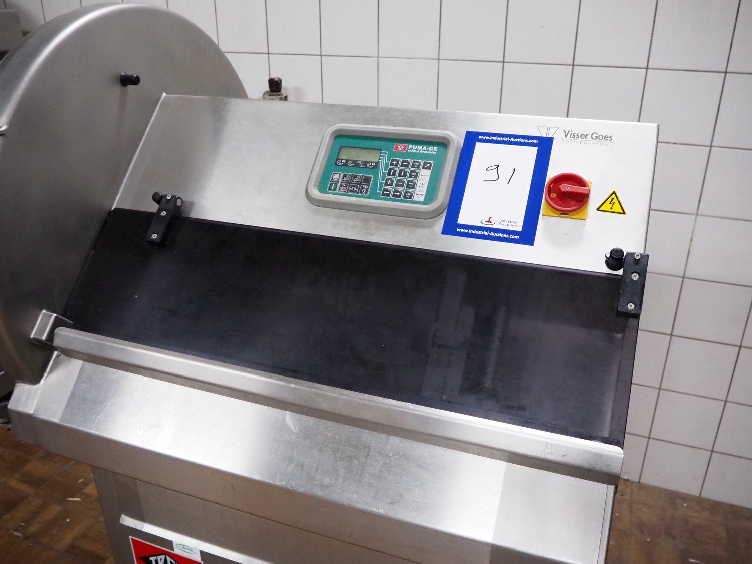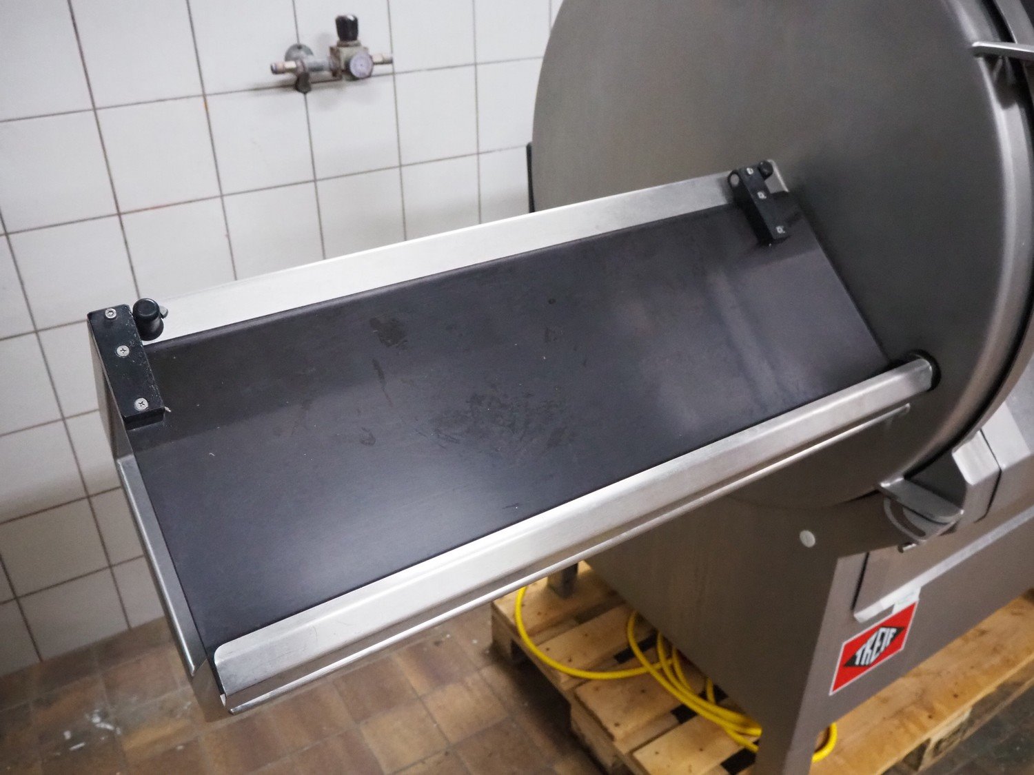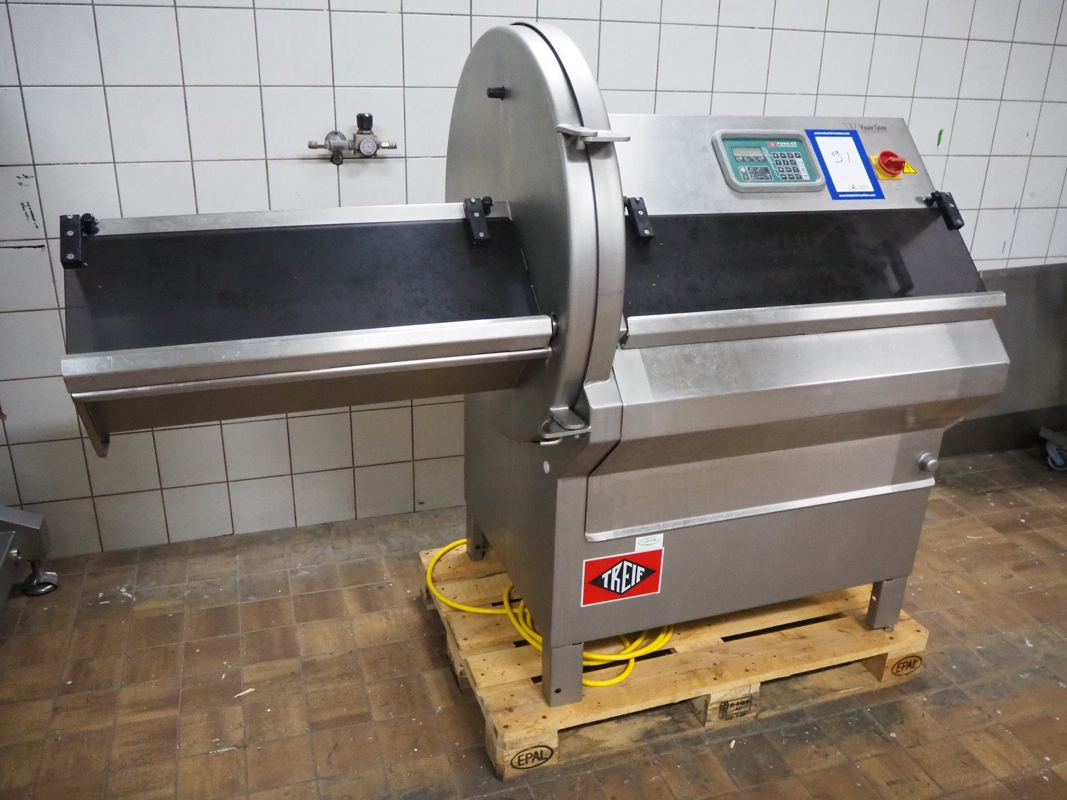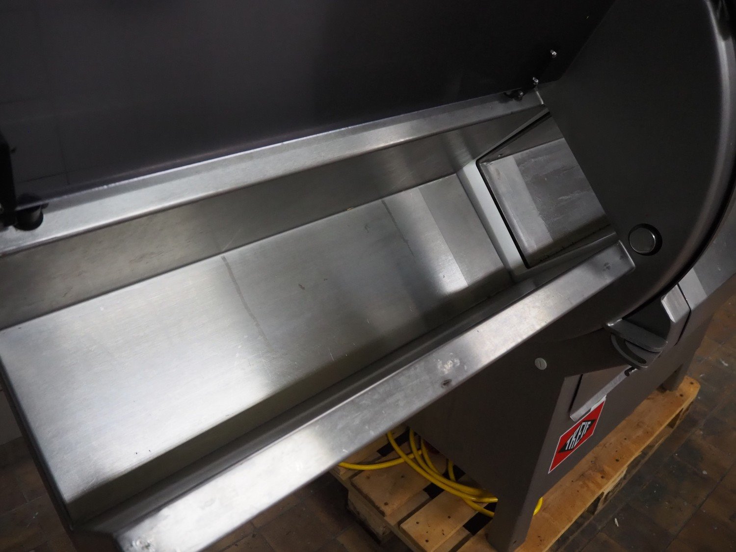 Treif PUMA-CE slicer, clearance: 235 mm x 220 mm, total dimensions: 1850 mm x 900 mm x 1500 mm. Incomplete, technical condition unknown.