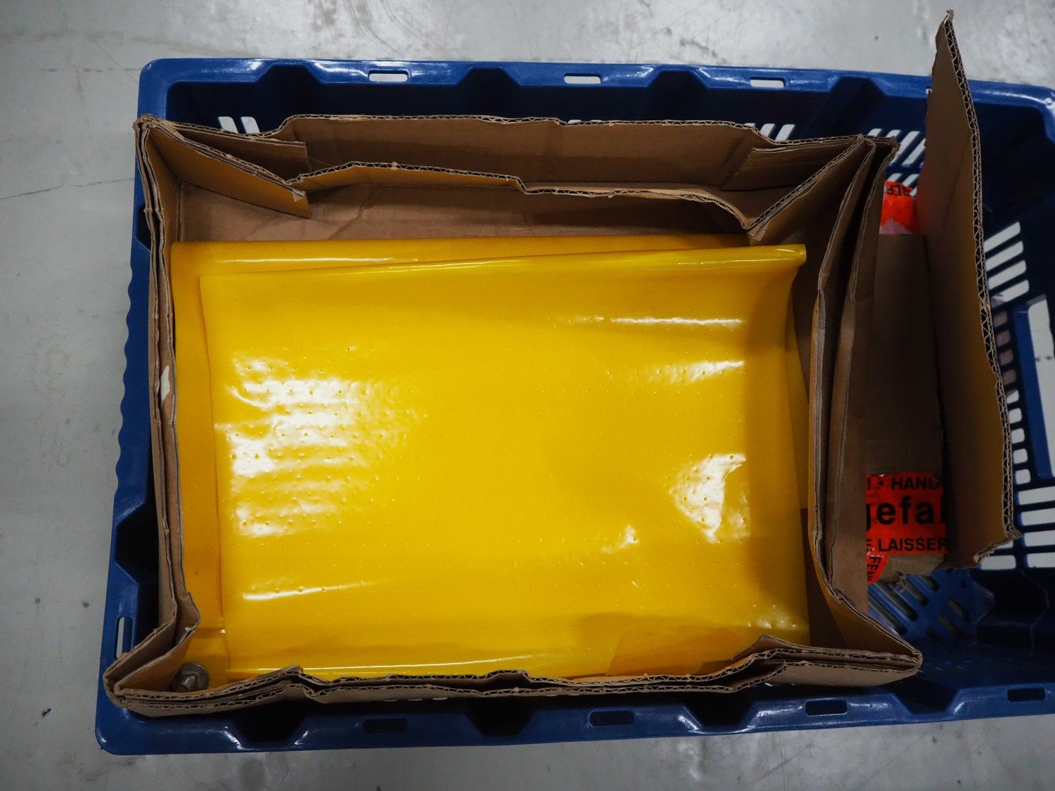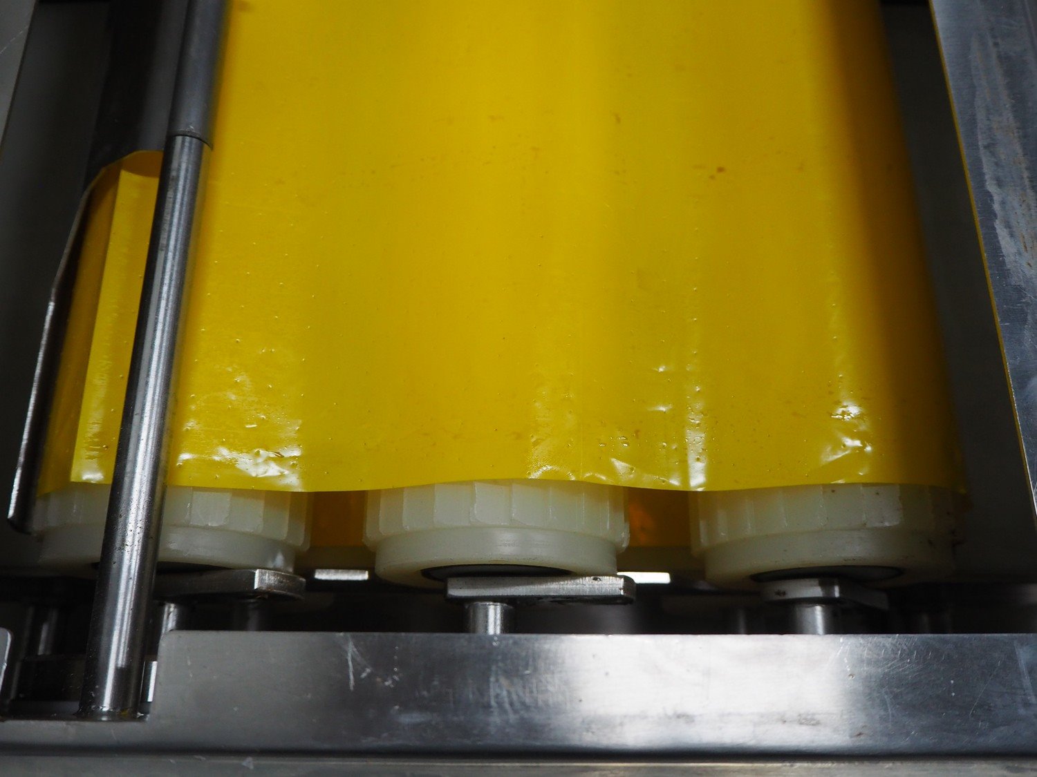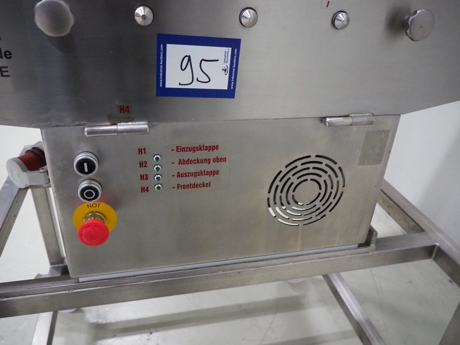 Schnitzel Master GmbH mobile meat tenderizer/flattener, type: TURBO, serial number: SMTurbo 0001213001, 400 V, 50 Hz, 16 A, belt width: 320 mm, clearance: 335 mm x 50 mm, total dimensions: 700 mm x 1500 mm x 1230 mm.