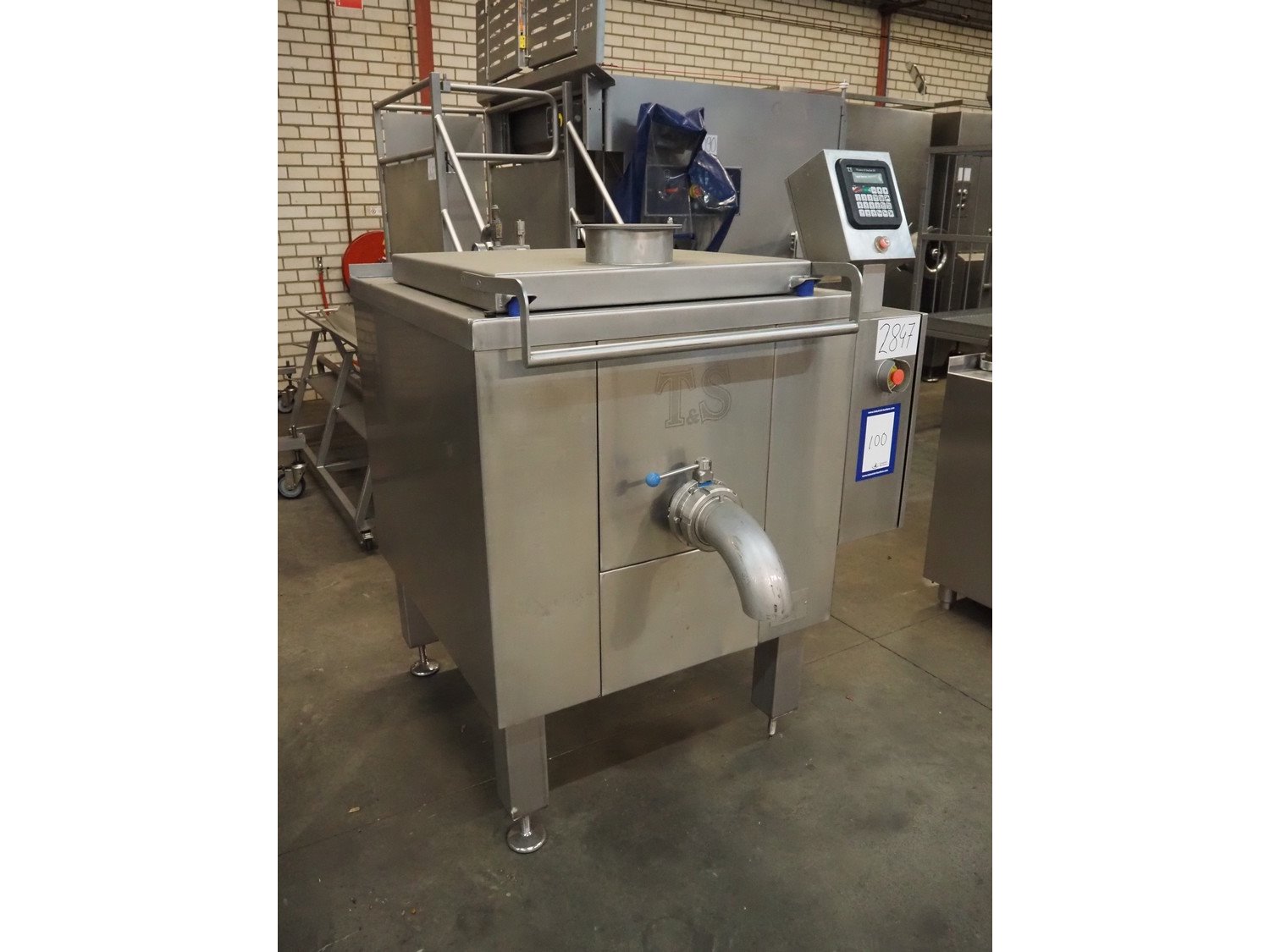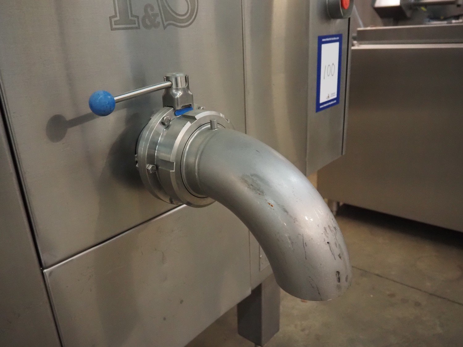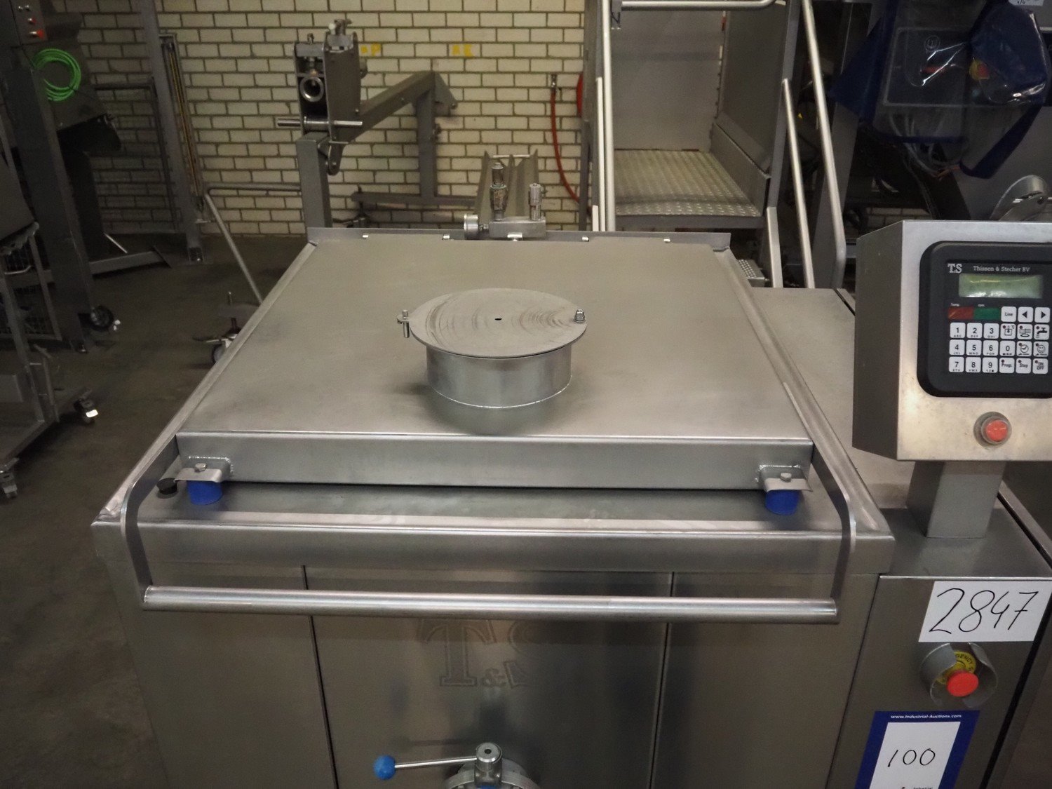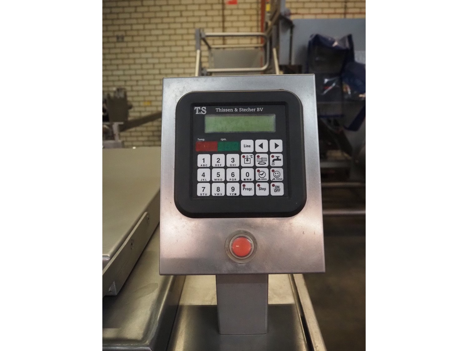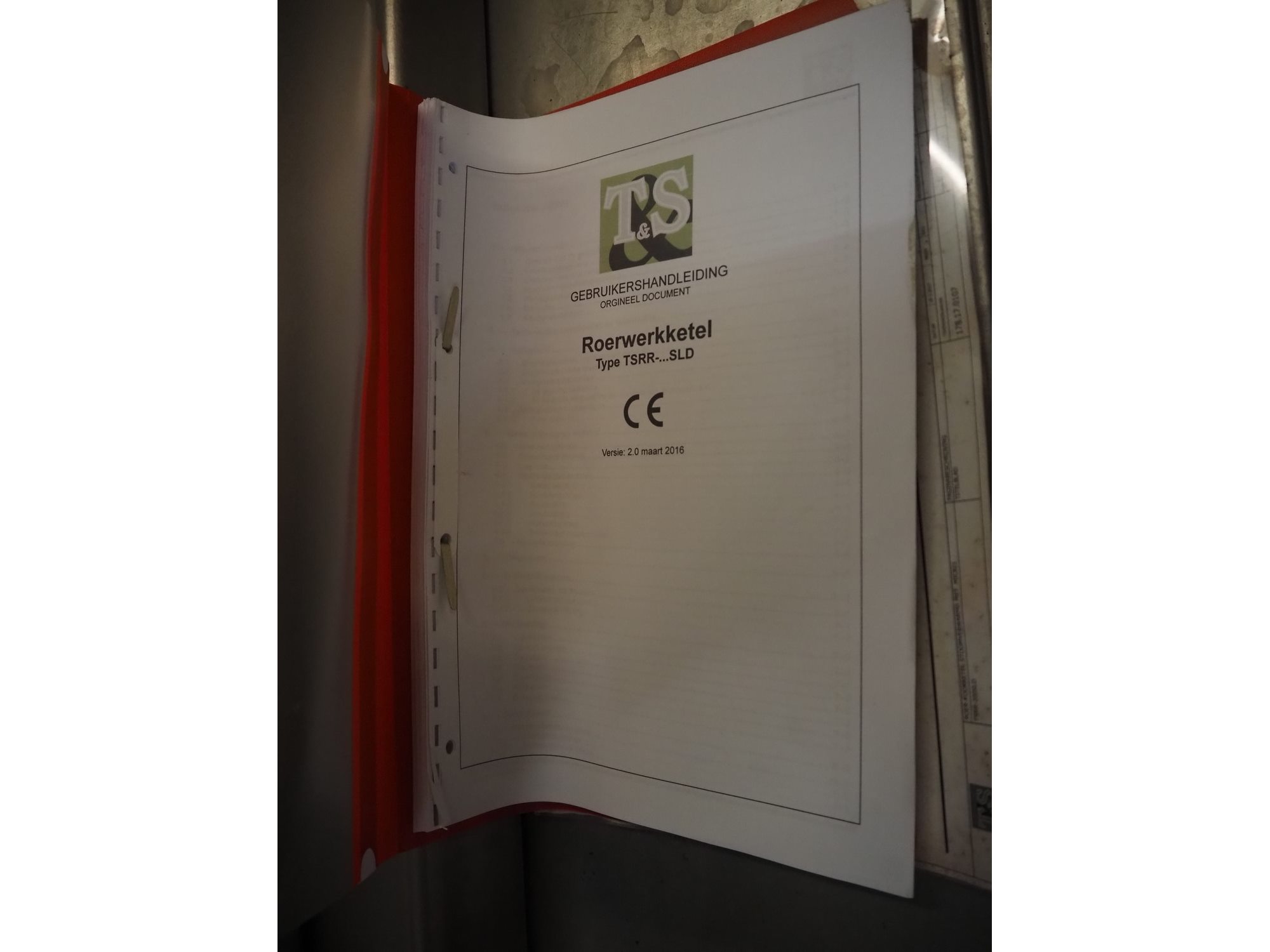 Thissen & Stecher BV cooking vessel with agitator, model: TSRR 200 SLD, serial number: 303, year of construction: 2017, 400 V, 3 Ph, 50 Hz, 2.3 kW, 5 A, steam heated, maximum temperature: 139 °C, volume: 200 litres, weight: 400 kg, total dimensions: 1240 mm x 1500 mm x 1660 mm.
