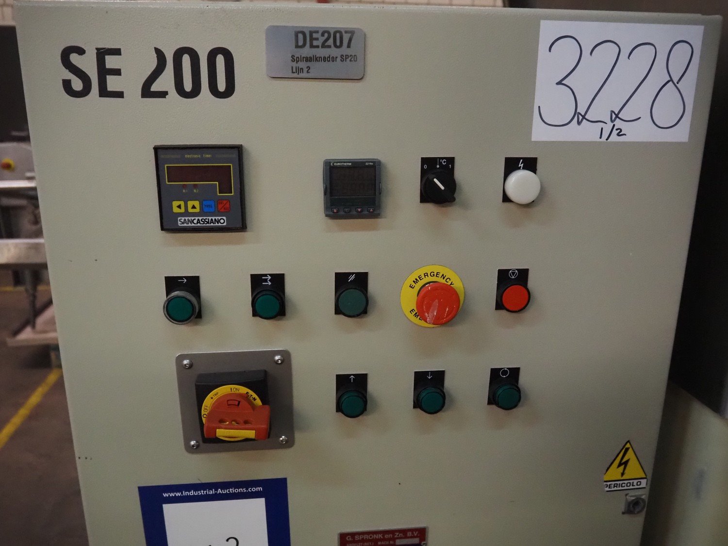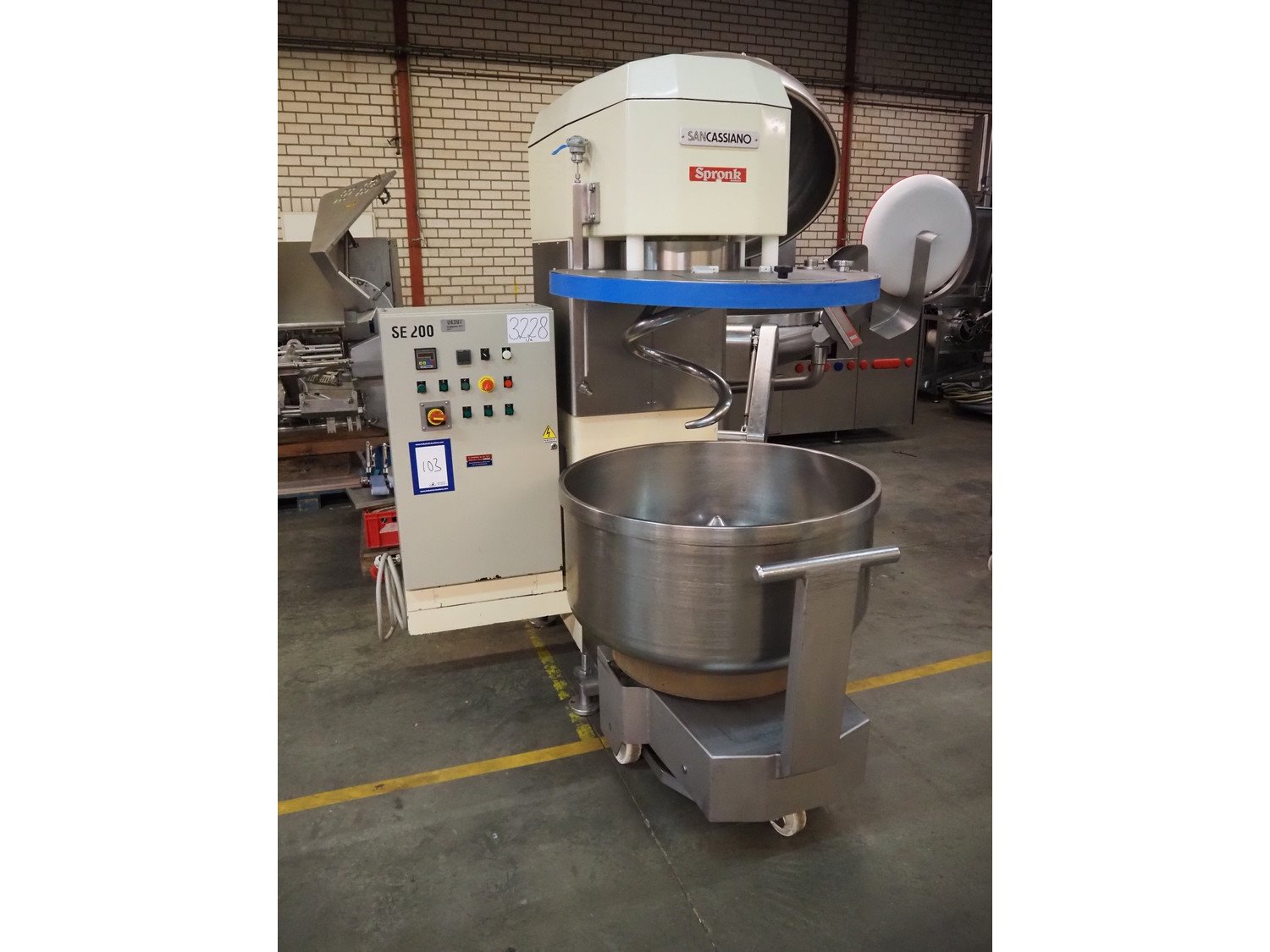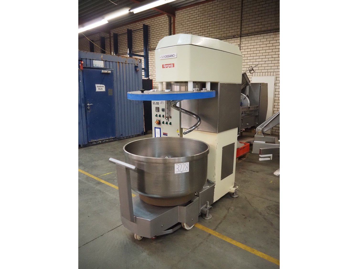 San Cassiano spiral kneader, type: SE 200, serial number: 12338, year of construction: 6-4-99, s/s bowl volume: 320 liters, maximum capacity: 200 kg, 2 mixing speeds, 380 V, 3 Ph, 50 Hz, 30 A, 12.1 kW, weight: 1380 kg, total dimensions: 1500 mm x 1900 mm x 2200 mm.