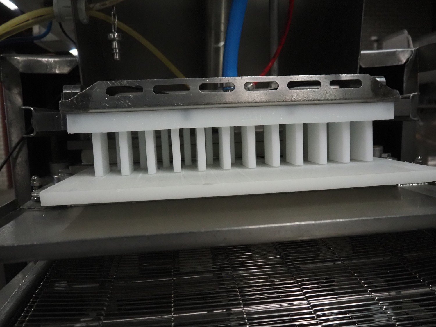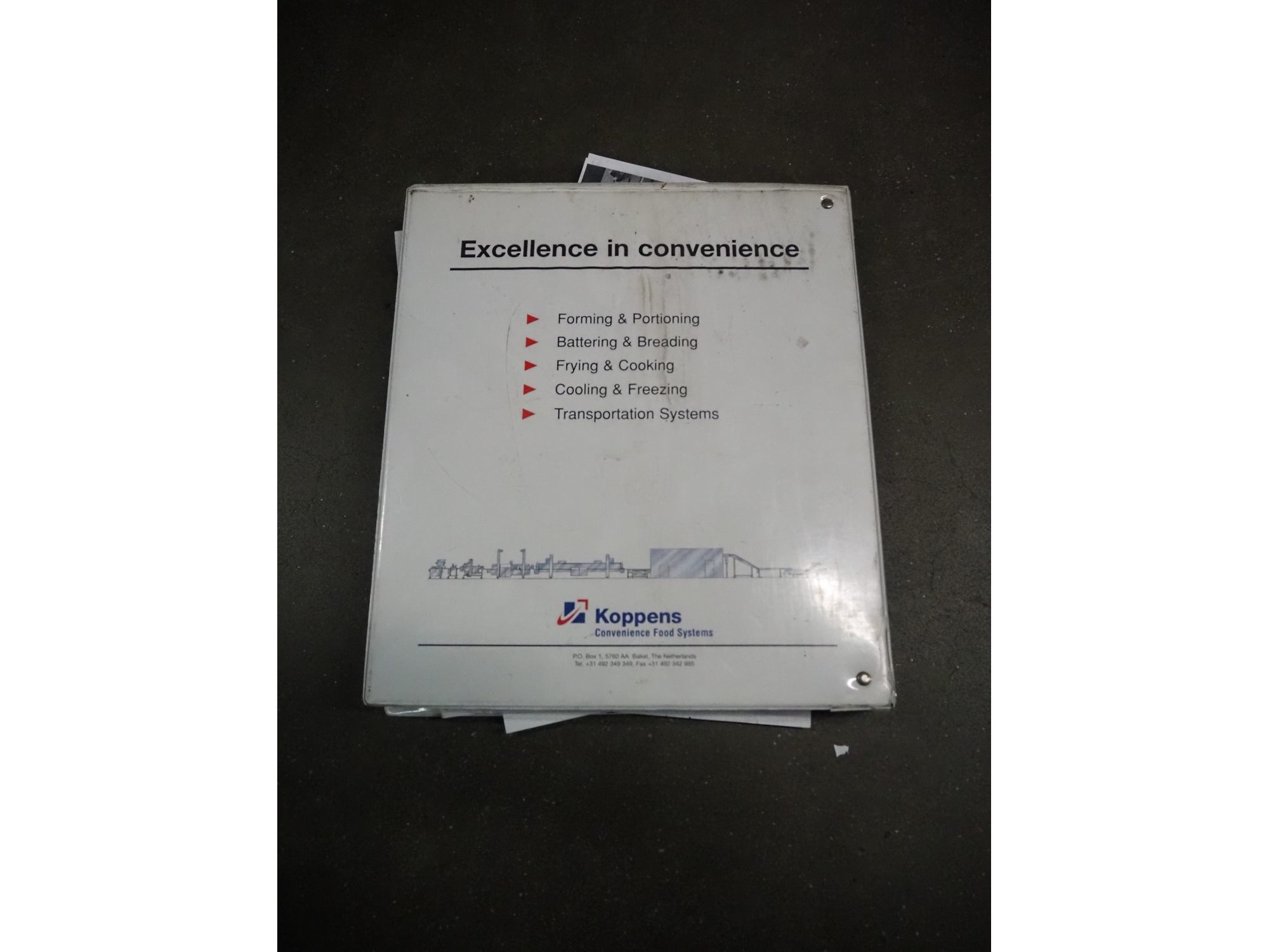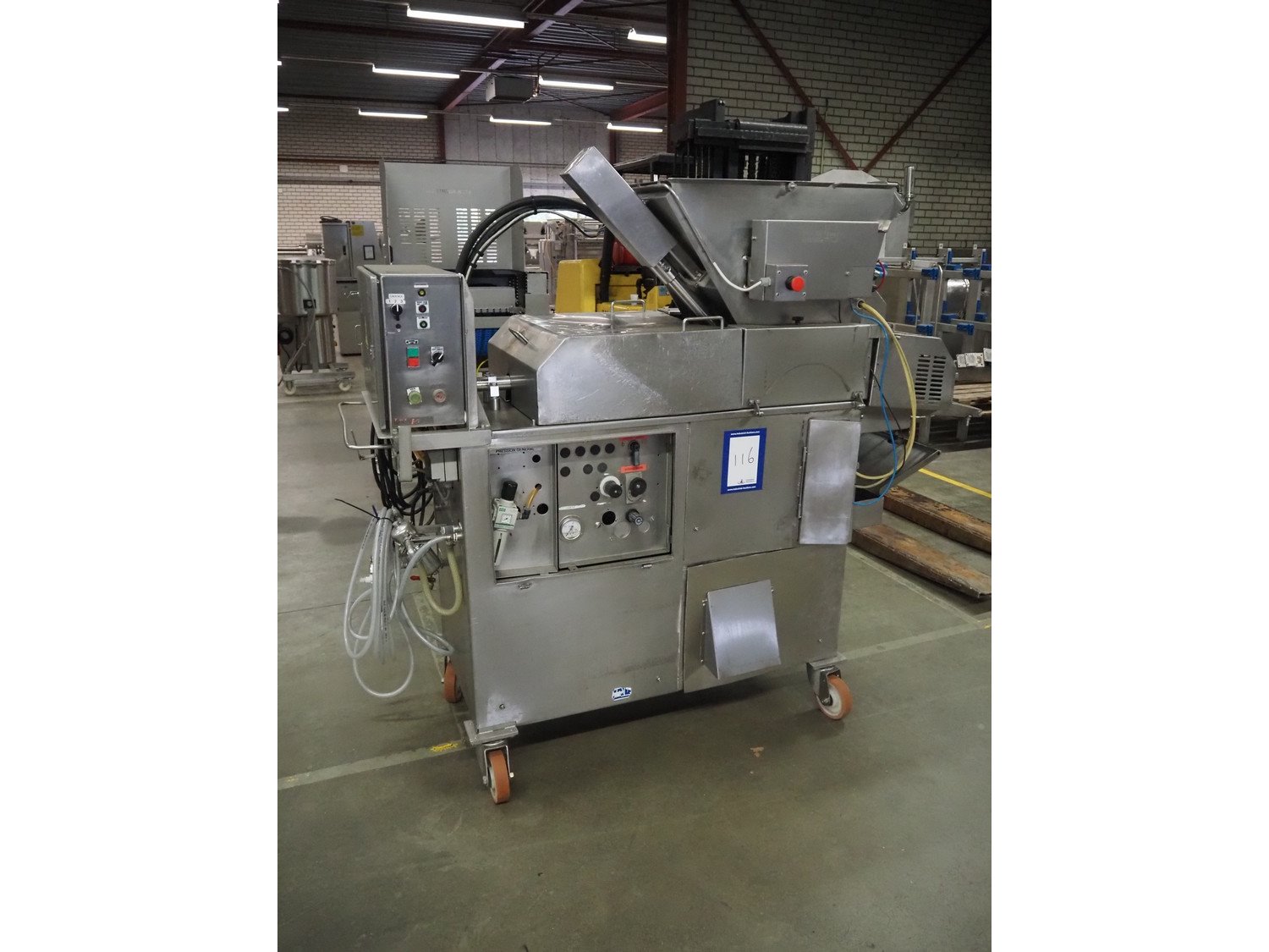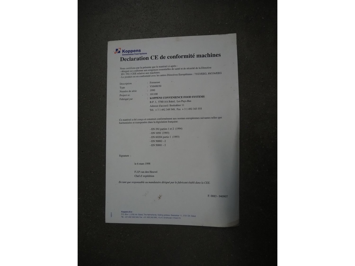 Koppens/CFS mobile forming machine, type: VM400-30, serial number: 1990, year of construction: 1998, 380 V, 3 Ph, 50 Hz, 11.61 A, 4.94 kW, weight: 634 kg, belt width: 400 mm, dye: (12x) 11 mm x 45 mm and (11x) Ø 35, total dimensions: 2100 mm x 700 mm x 1800 mm.
