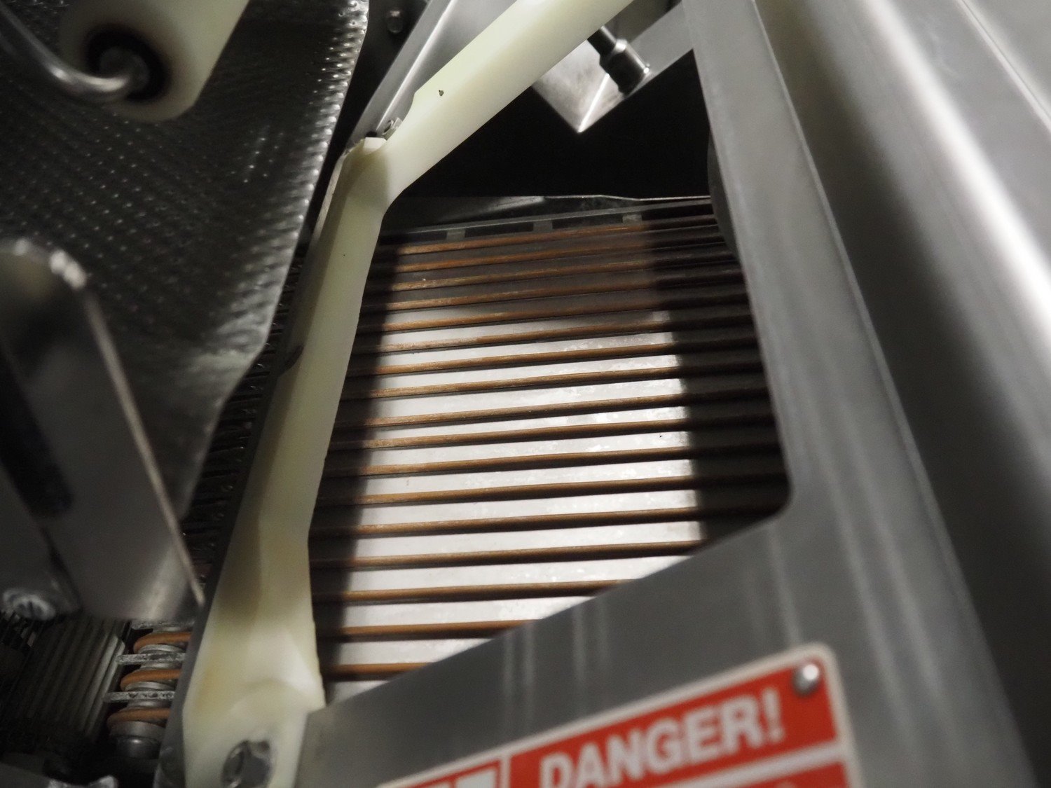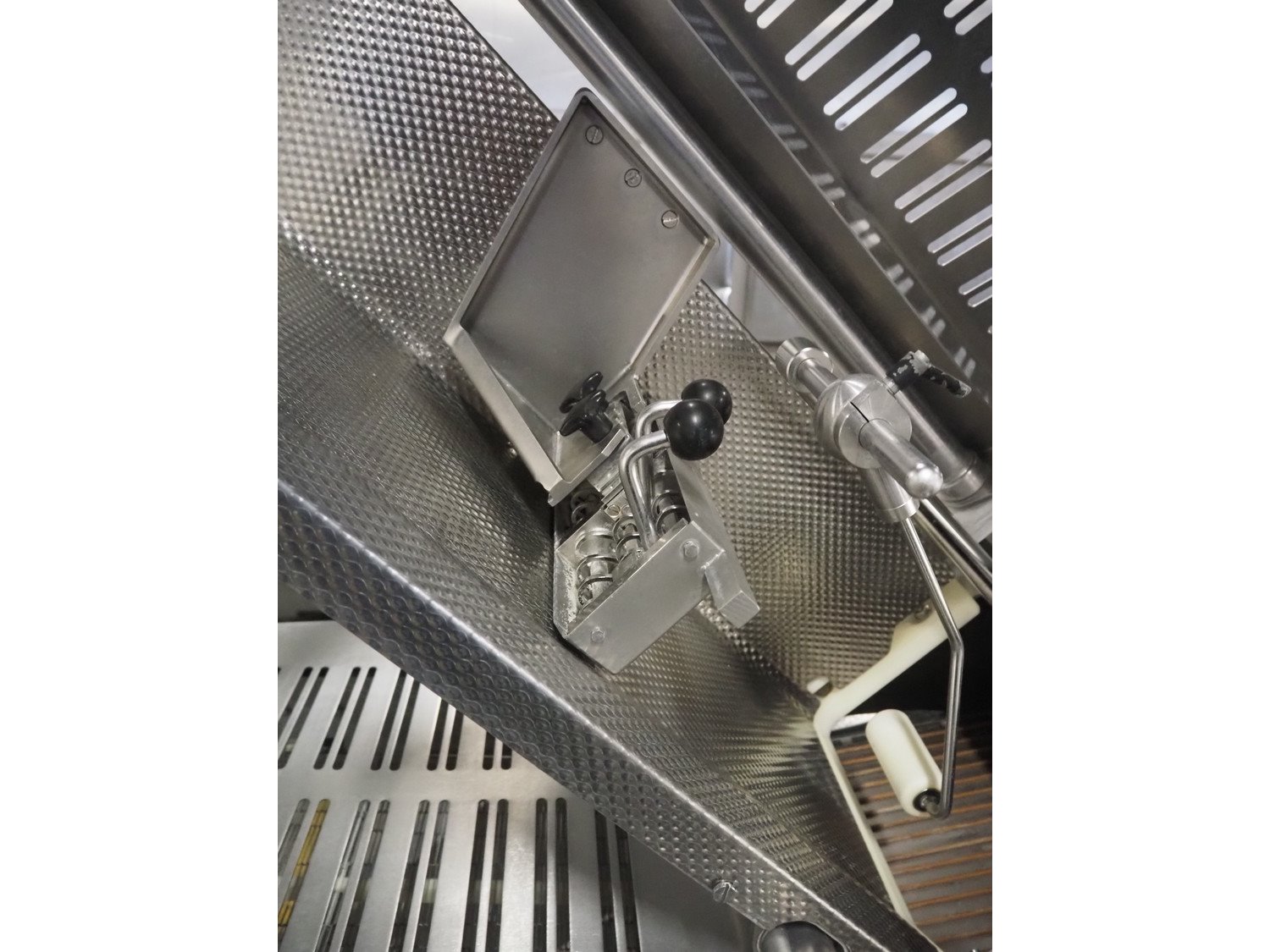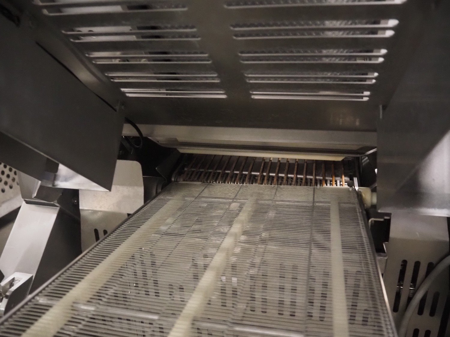 Bizerba GmbH & Co. KG mobile automatic slicer, model: A 510, number: 10597961, 380-415 V, 3 Ph, 47-53 Hz, 4.14 A, 2.3 kW, belt width: 300 mm, total dimensions: 2500 mm x 850 mm x 1820 mm.