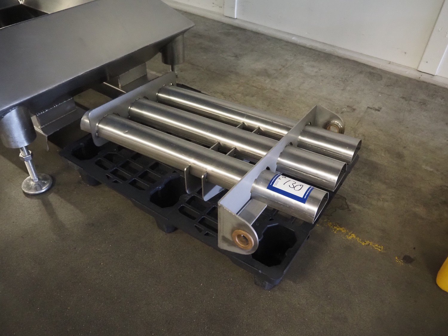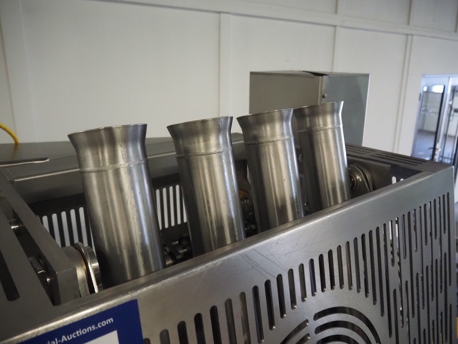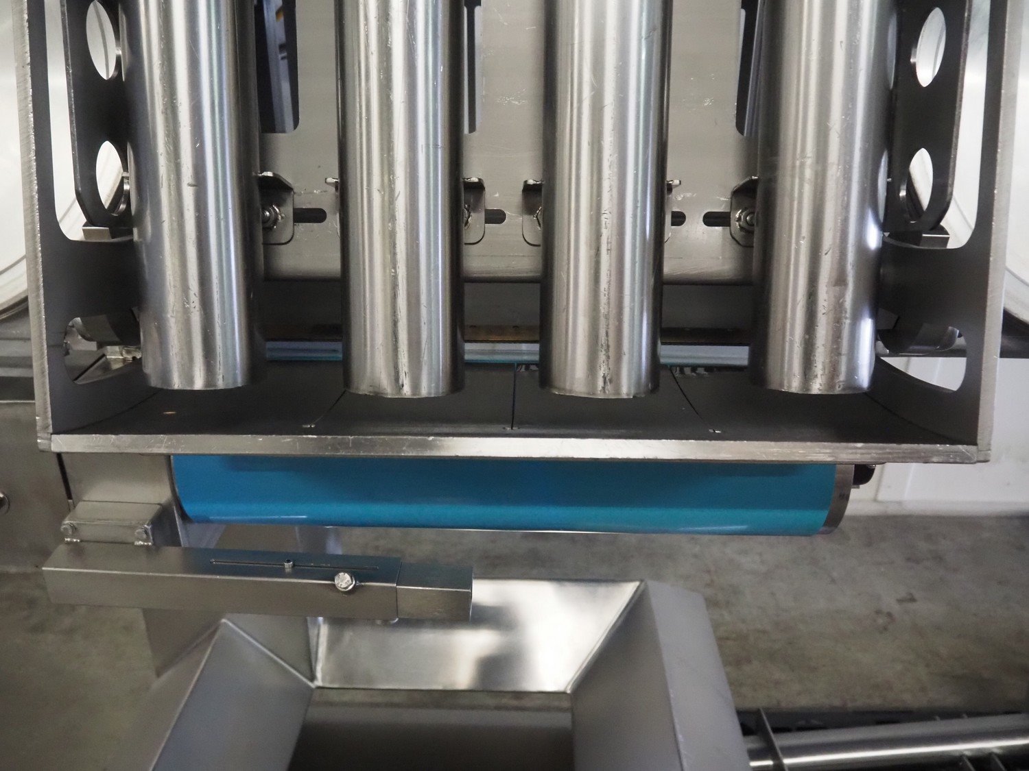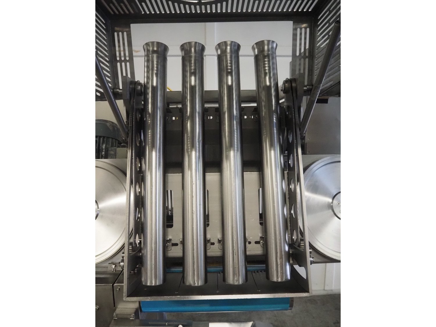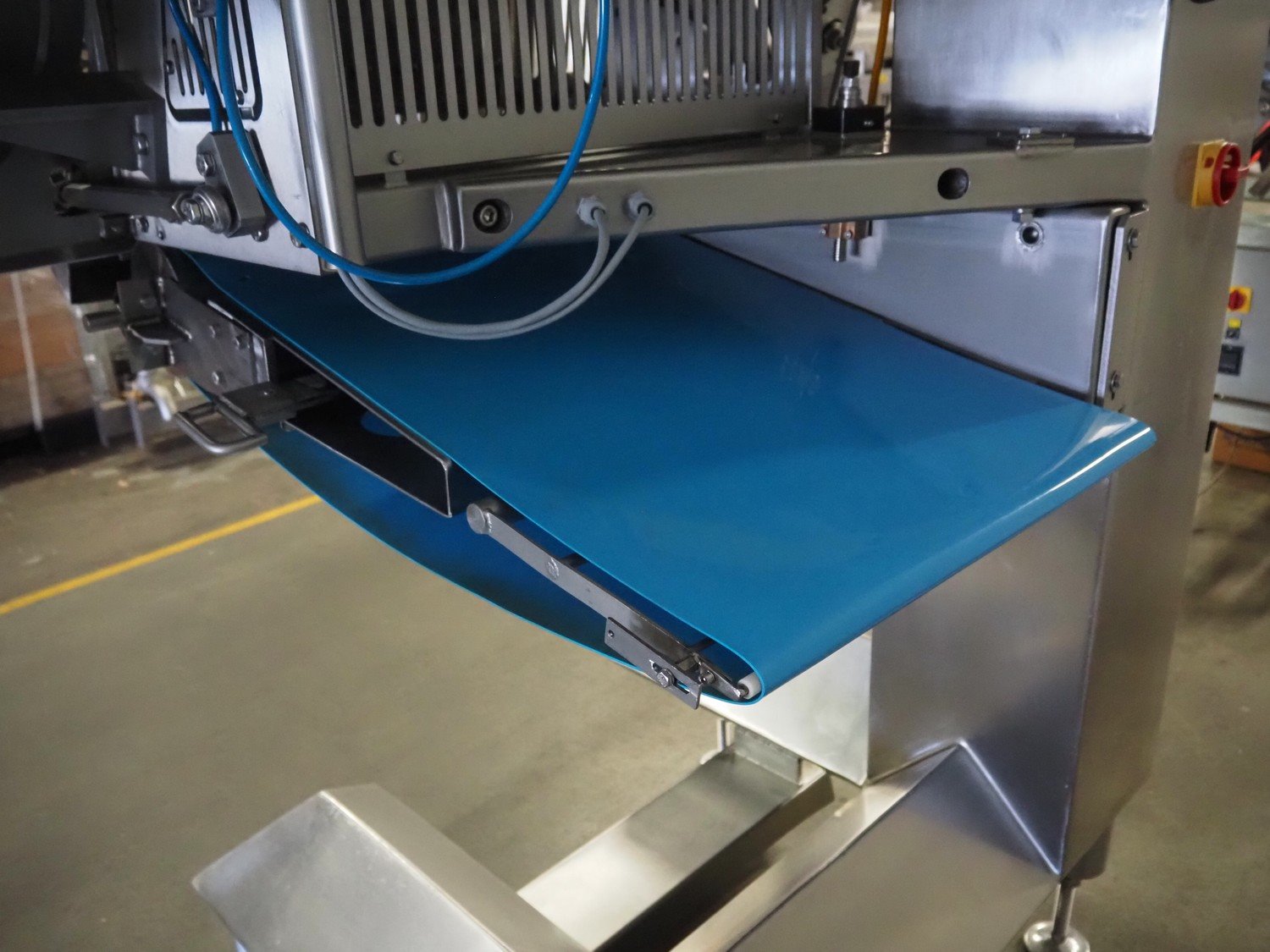 Selo slicer/applicator, machine type: SL Slicer, number: 017, year of construction: 2004, 400 V, 50 Hz, 4 kW, dye: (4x) Ø 80 mm, capacity: max 200 strokes/min, cutting thickness: maximum 20 mm, belt width: 565 mm, weight: 750 kg, total dimensions: 1700 mm x 1200 mm x 2150 mm, including pallet with extra forms, dye: (3x) 95 mm x 45 mm.