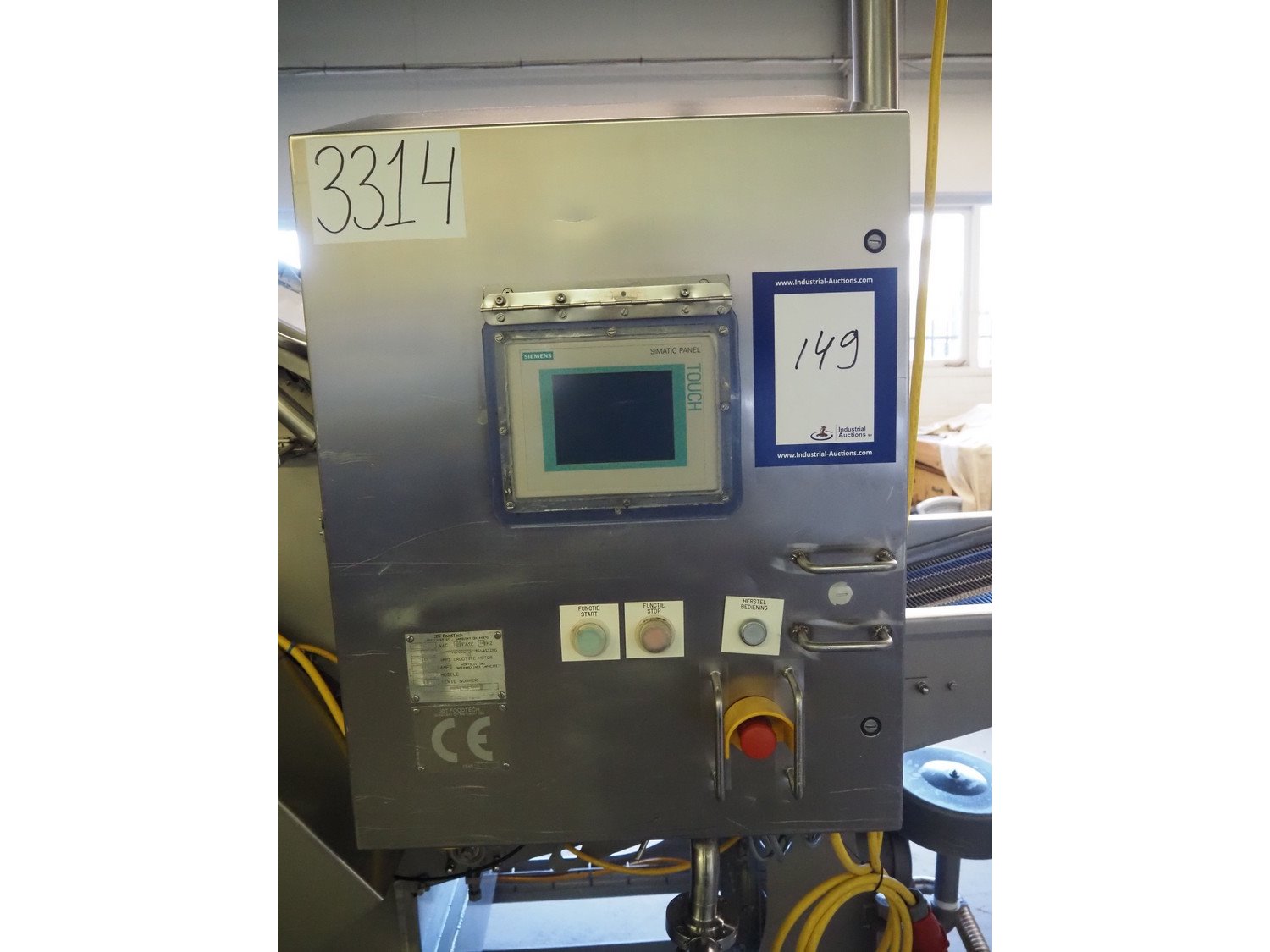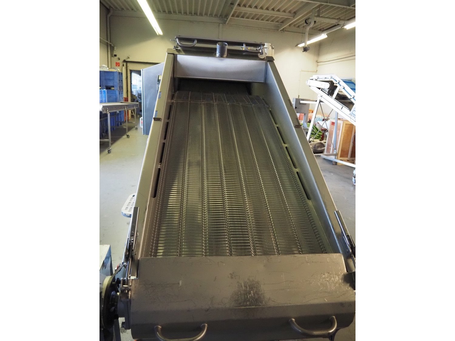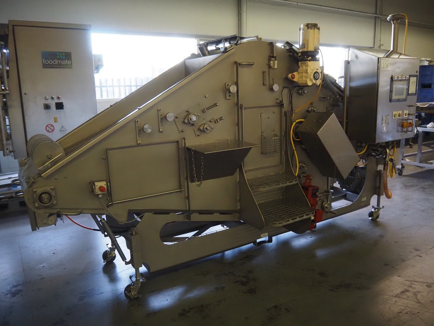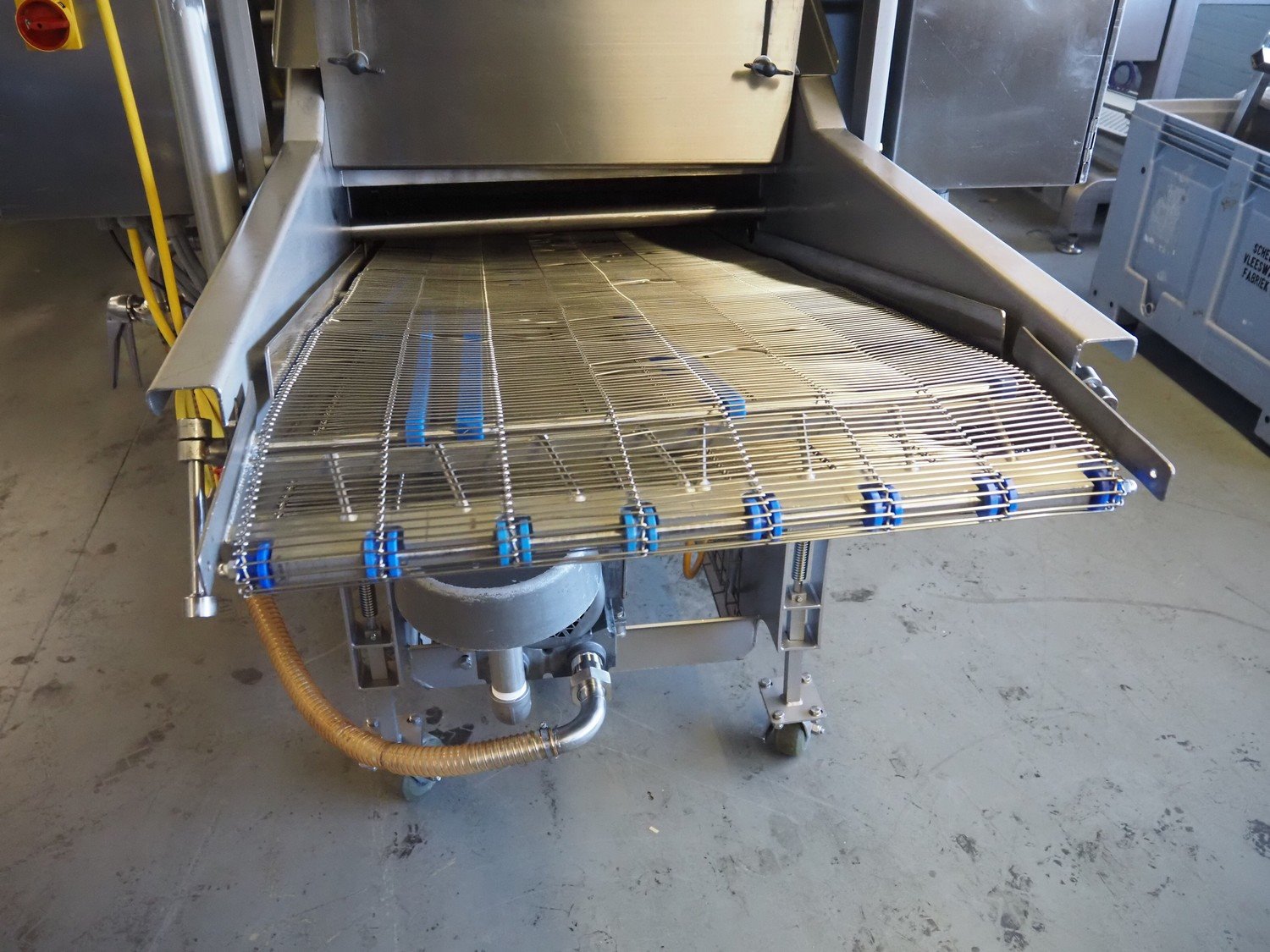 JBT FoodTech mobile homestyle breader, model: HSB-600, serial number: 118, 380 V, 3 Ph, 50 Hz, 24.5 A, s/s belt width: 630 mm, weight: 1600 kg, total dimensions: 4400 mm x 1700 mm x 2250 mm.