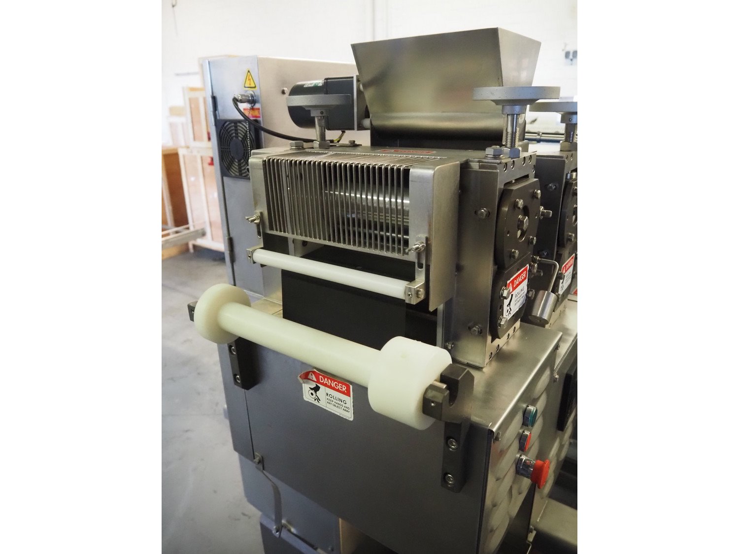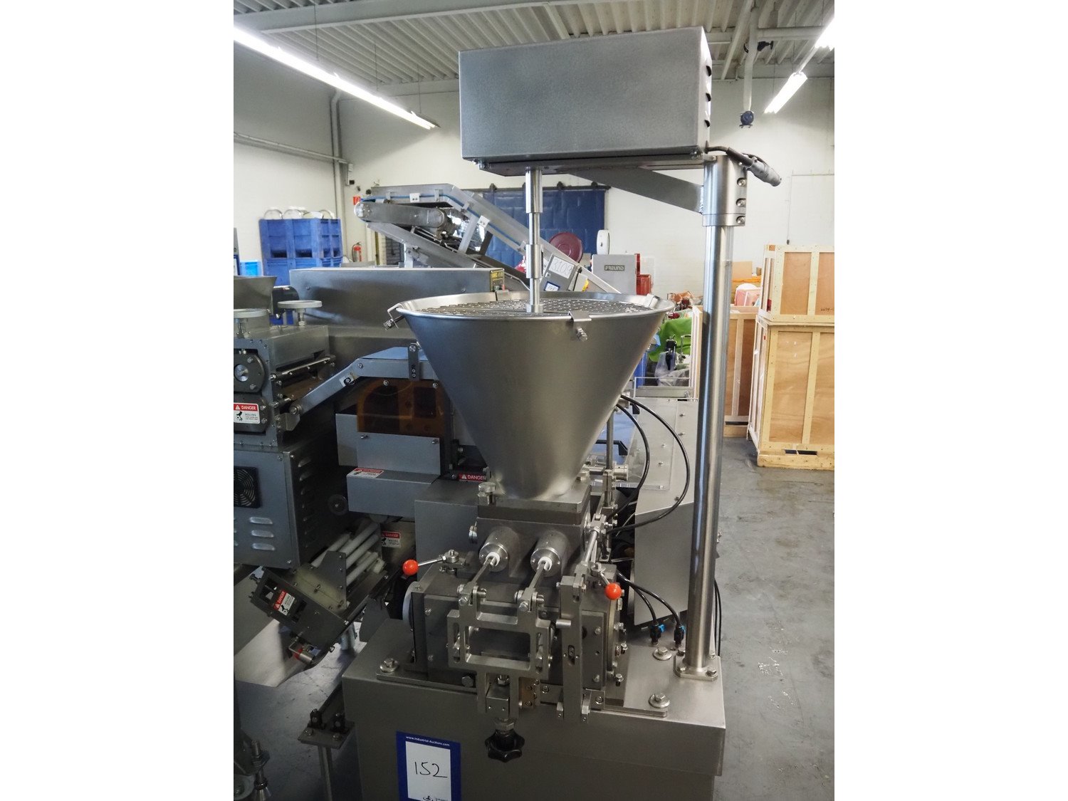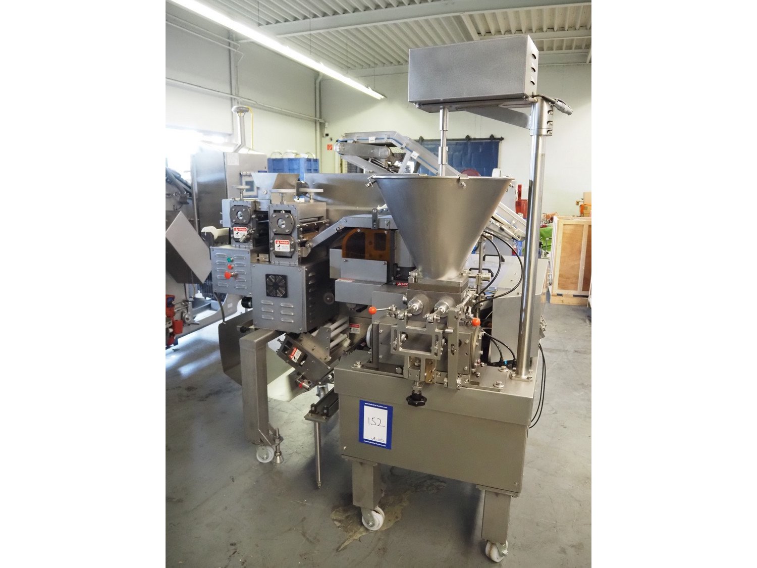 Anko Food Machine Co., LTD. gyoza dumpling machine, model: AFD-188, serial number: 1501093, year of construction: 2022, 380 V, 3 Ph, 50 Hz, 3.5 kW, capacity: 6000 pieces per hour, hopper volume: 46 liters, weight: 1400 kg, total dimensions: 2450 mm x 2000 mm x 2050 mm.