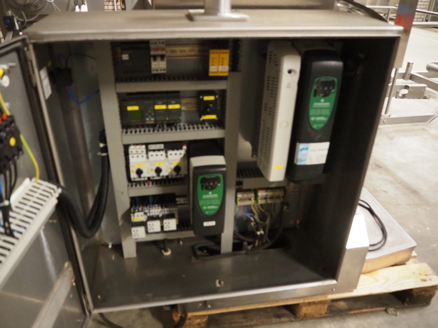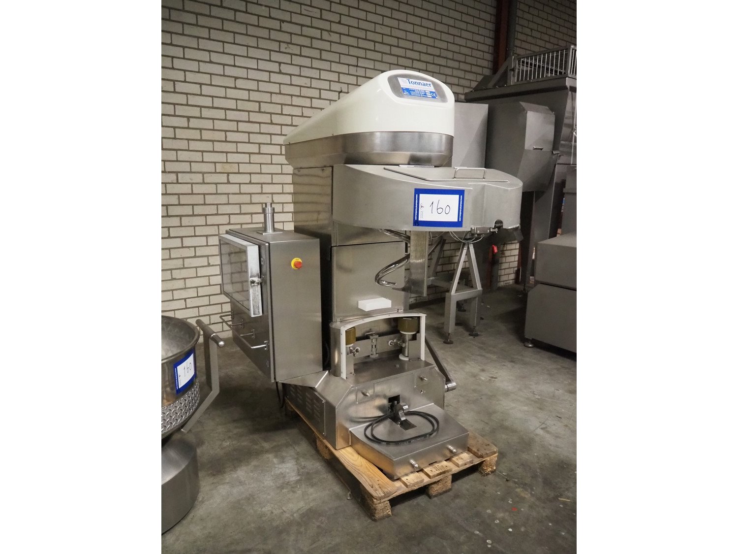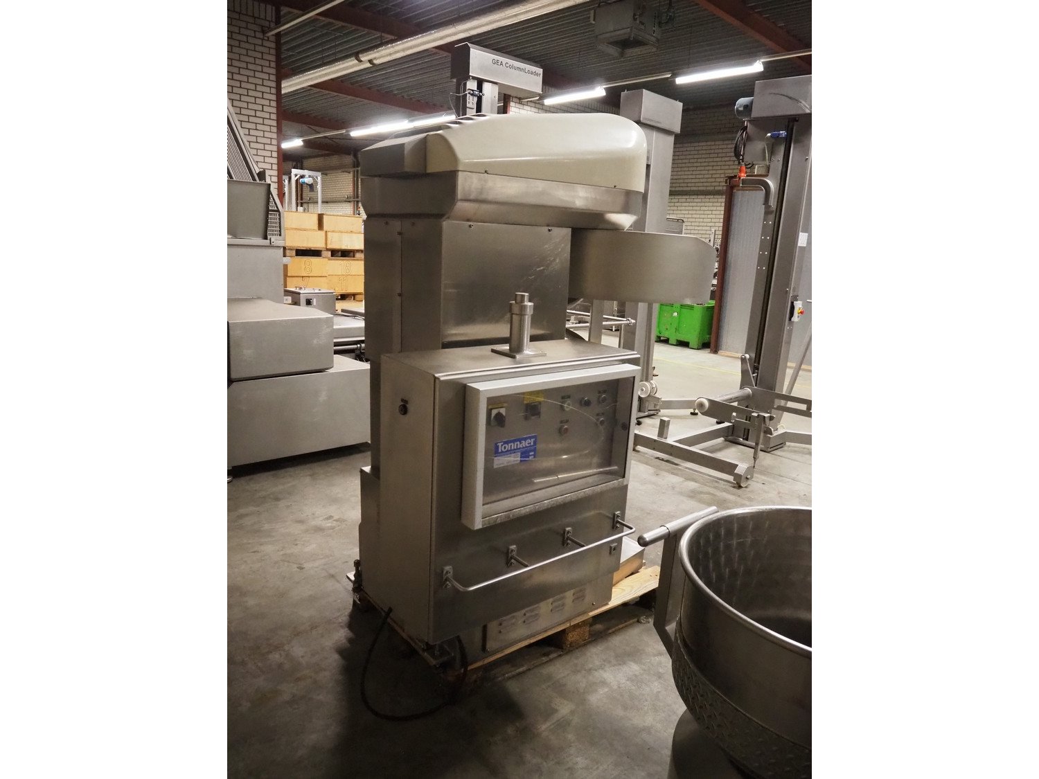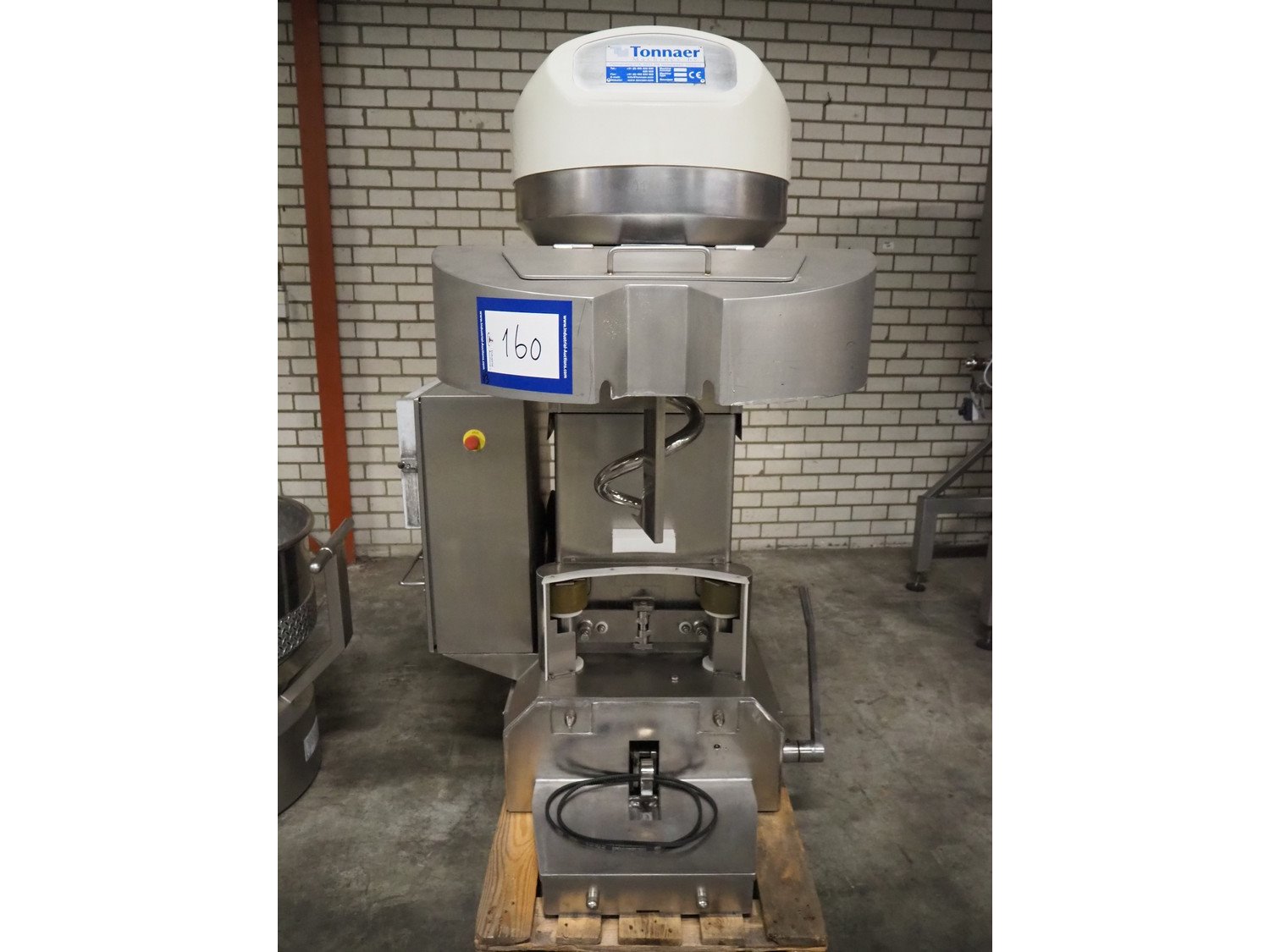 Tonnaer spiral mixer for dough, dimensions: 1700 mm x 1100 mm x 1900 mm. Including 2 s/s mobile bowls, inside dimensions: (2x) ø 800 mm x 400 mm, total dimensions: 950 mm x 850 mm x 850 mm.