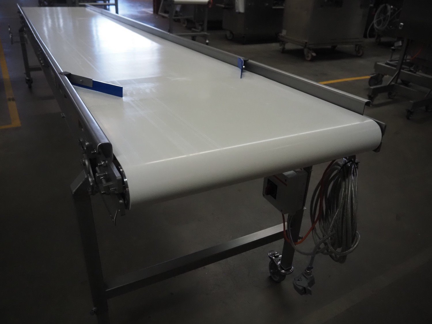 Vestjysk Rustfri Montage mobile transport belt, s/s frame, plastic belt, type number: 2020-02rev 1, serial number: 19506, year of construction: 2020, belt width: 640 mm, total dimensions: 3900 mm x 850 mm x 900 mmm.