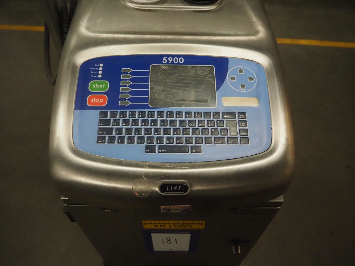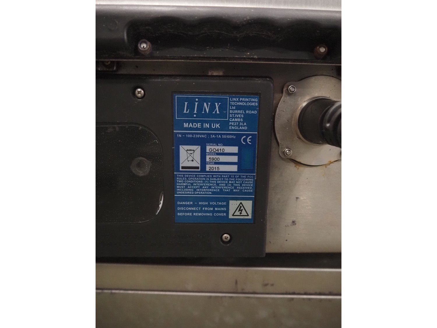 Linx inkjet printer, model: 5900, serial number: GO410, year of construction: 2015, dimensions: 600 mm x 700 mm x 1550 mm.