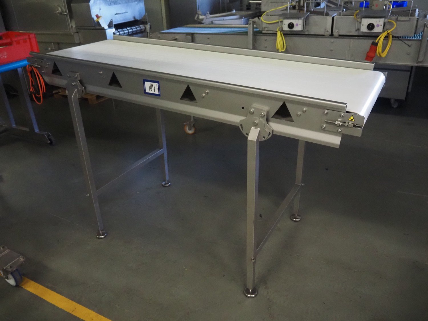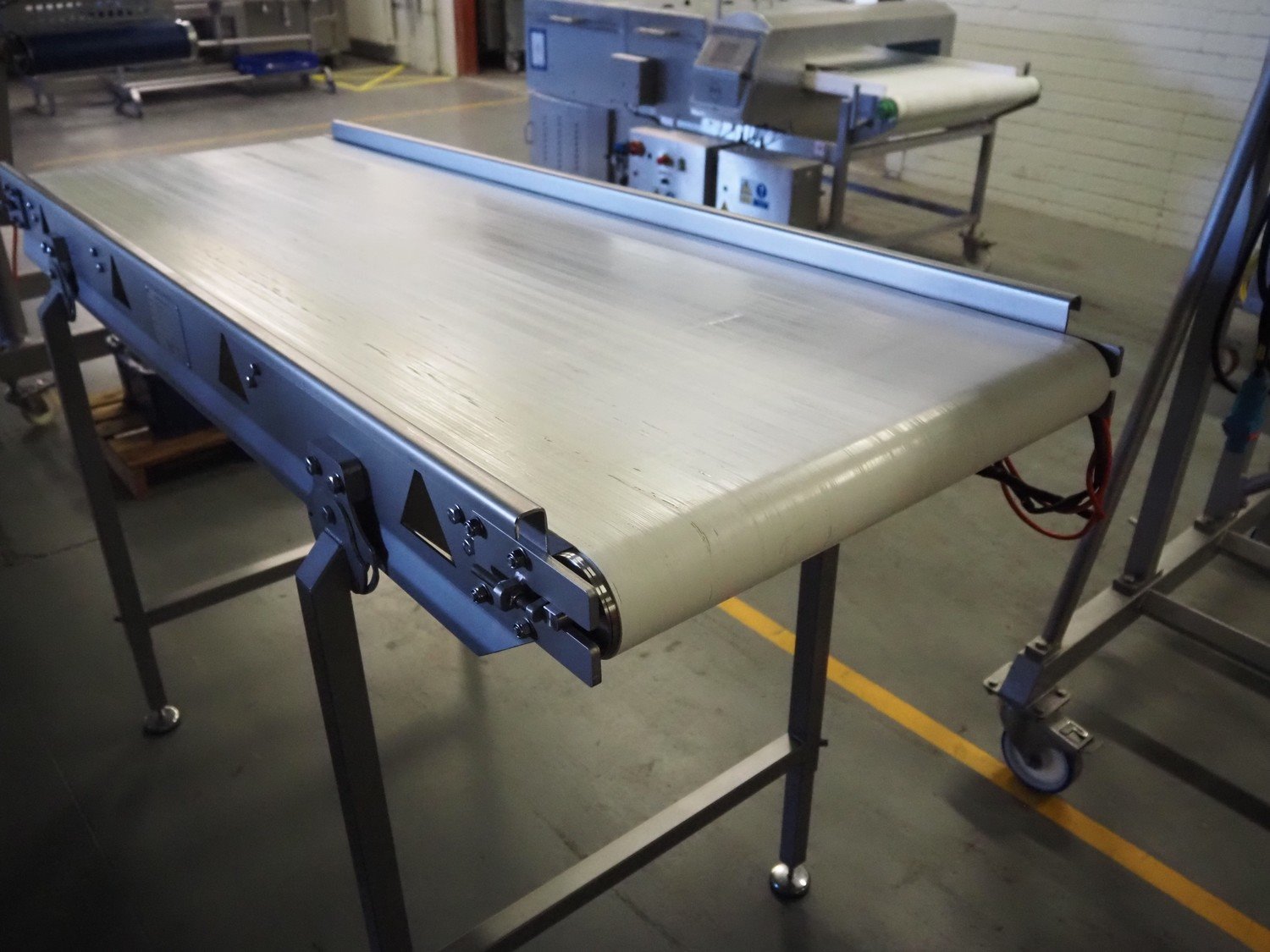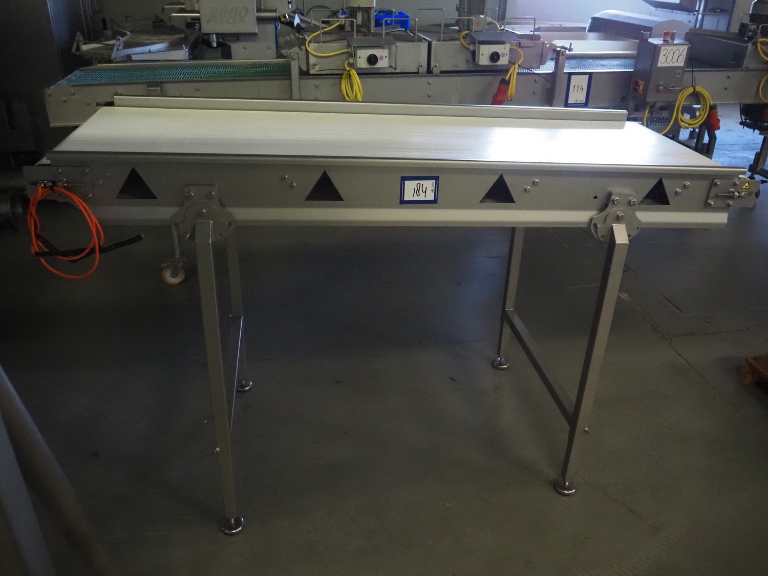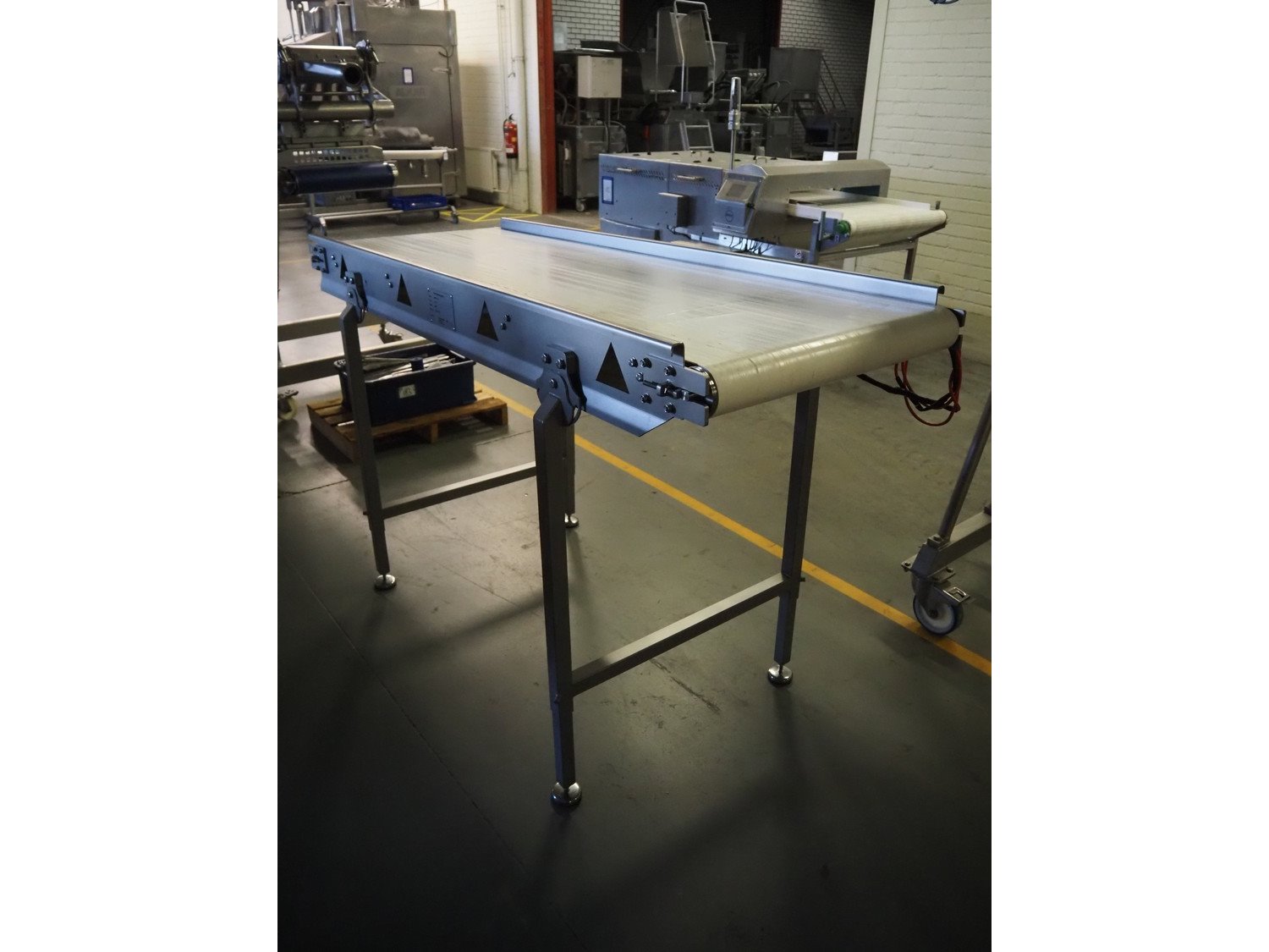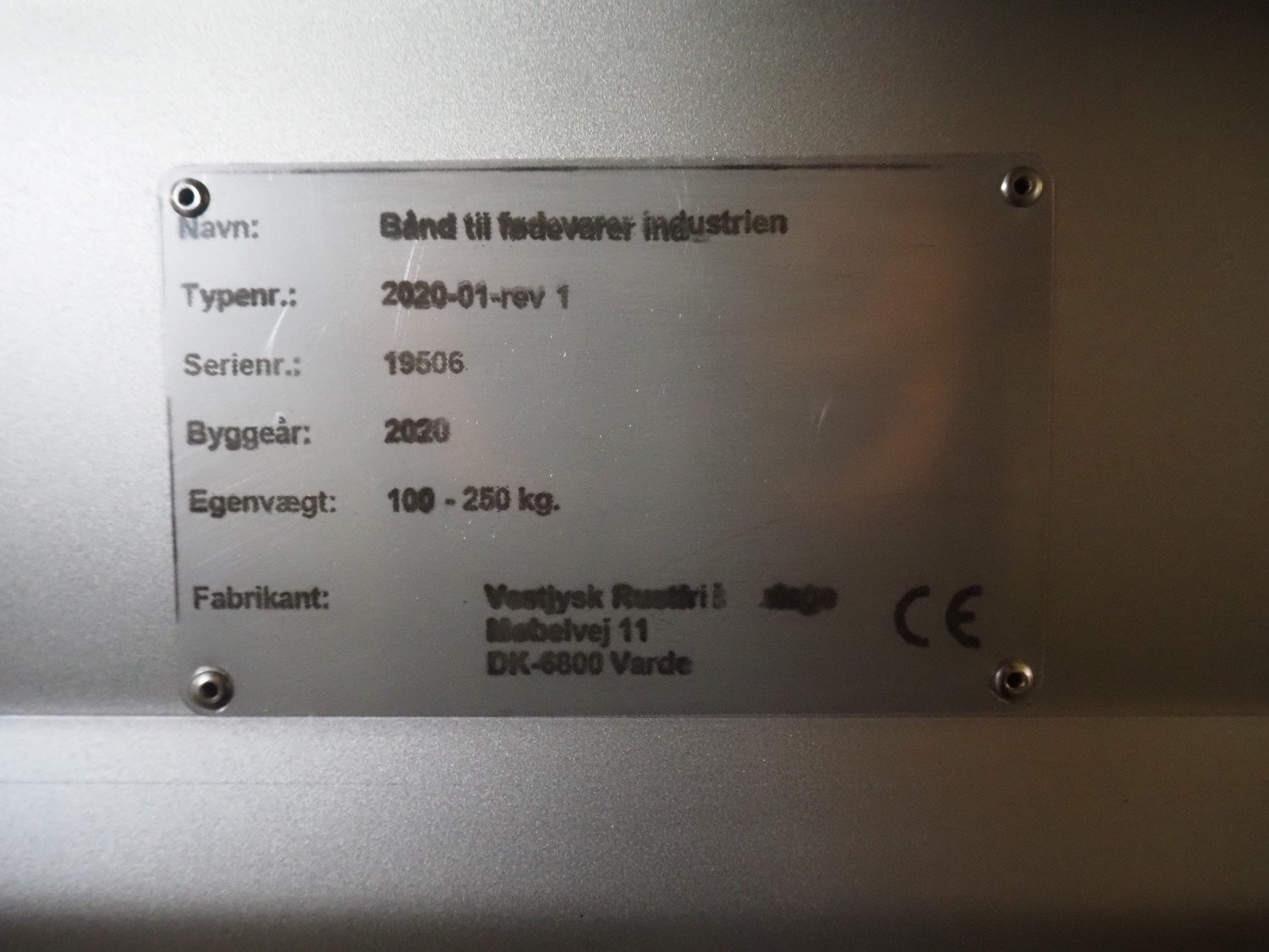 Vestjysk Rustfri Montage mobile transport belt, s/s frame, plastic belt, type number: 2020-01-rev 1, serial number: 19506, year of construction: 2020, belt width: 640 mm, total dimensions: 1900 mm x 750 mm x 1200 mmm.