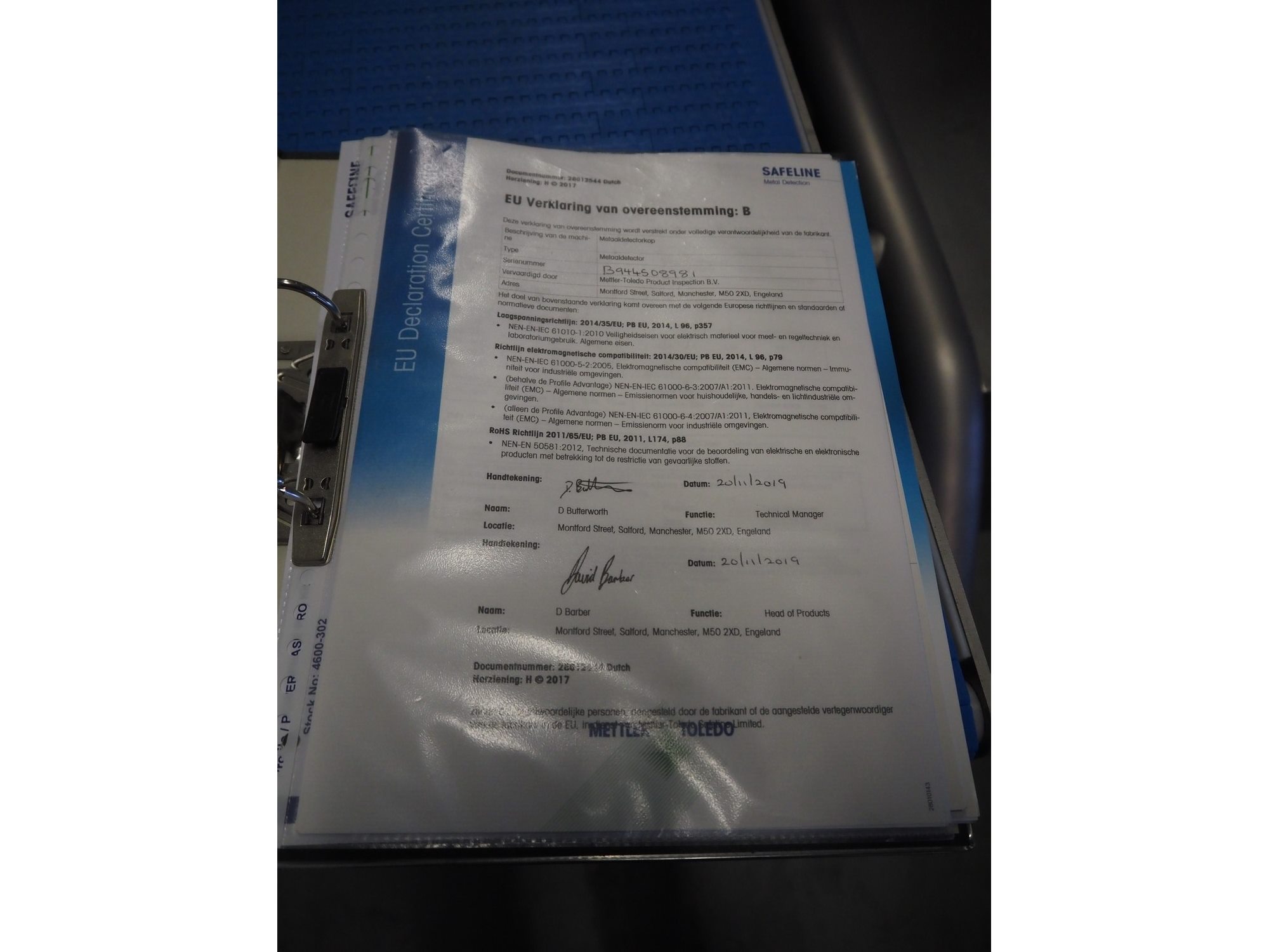 Mettler Toledo Safeline mobile metal detector, type: Profile, serial number: C024543627, year of construction: 2020, 230V, 1 Ph, 50Hz, belt width: 330 mm, clearance: 350 mm x 90 mm, total dimensions: 2850 mm x 1400 mm x 1650 mm.