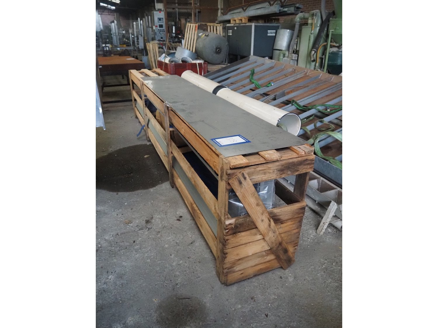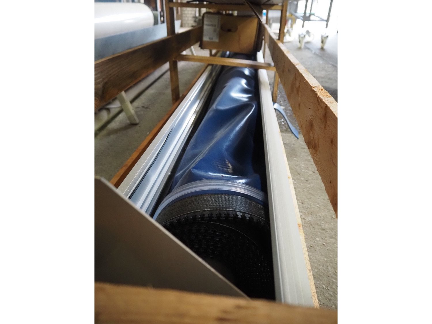 Electric shutter door in wooden crate, door width: 3500 mm, dimensions wooden box: 4060 mm x 550 mm x 860 mm.