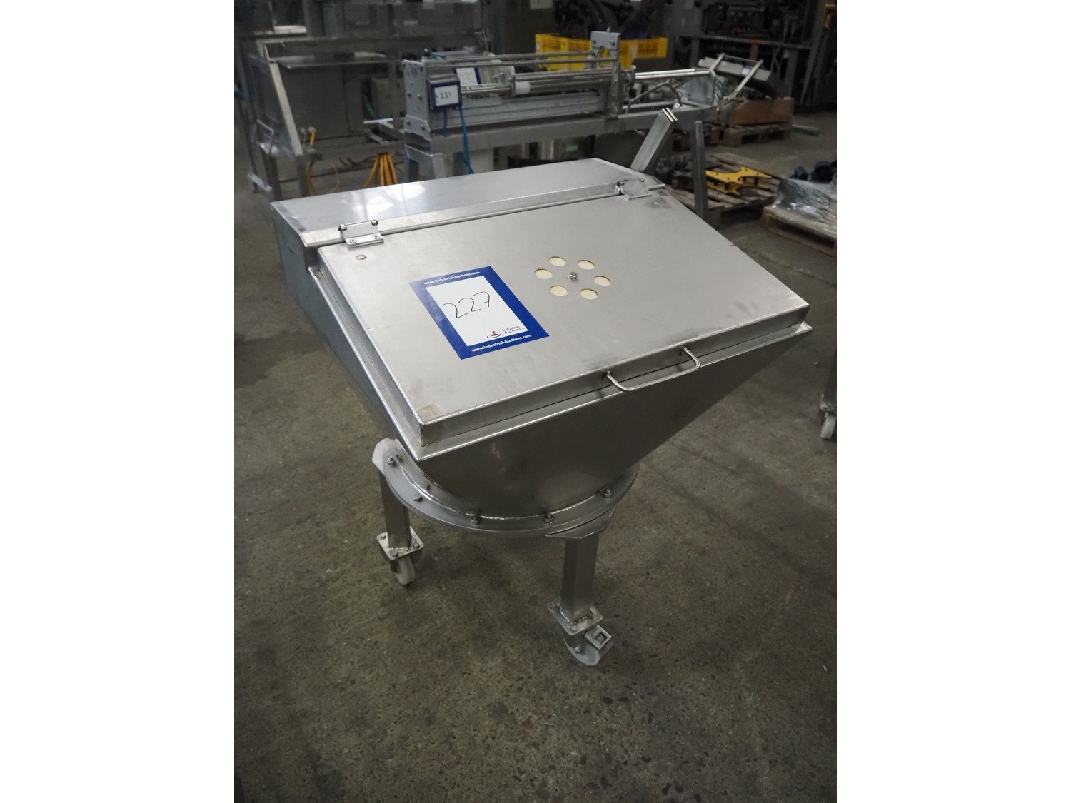 S/s mobile tub, inside dimensions: 650 mm x 700 mm x 600 mm, total dimensions: 1050 mm x 800 mm x 1130 mm.